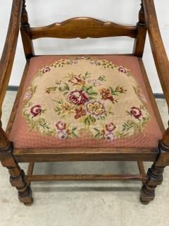 Ilusa tikitud istumisosaga käetugedega tool. Raam tugev ja stabiilne, istumisosa polsterdus ja tikand korralikud. Istumisosa kõrgus 49 cm.