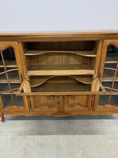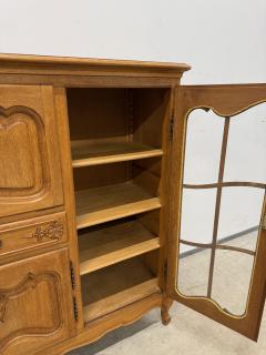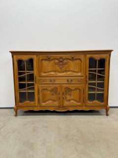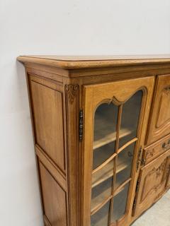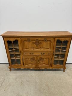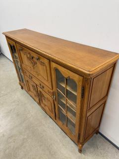 Heledast tammest tõeliselt kaunis ja pilkupüüdev vitriinkapp. Uhked nikerdused ustel ja raamil. Sees reguleeritavate vahedega puidust riiulid. Lukud töökorras, võtmed olemas. Leidub väiksemaid kulumis- ja kasutusjälgi, kuid üldmulje väga hea. Transport ühes osas.