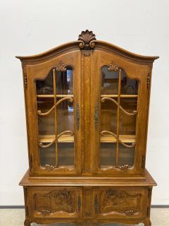 Uhkete nikerdustega tammest raamiga vitriinkapp. Sees reguleeritavate vahedega puidust riiulid. Leidub väiksemaid kulumis- ja kasutusjälgi, kuid üldmulje väga hea. Lukud töökorras, võtmed olemas. Transport kahes osas.