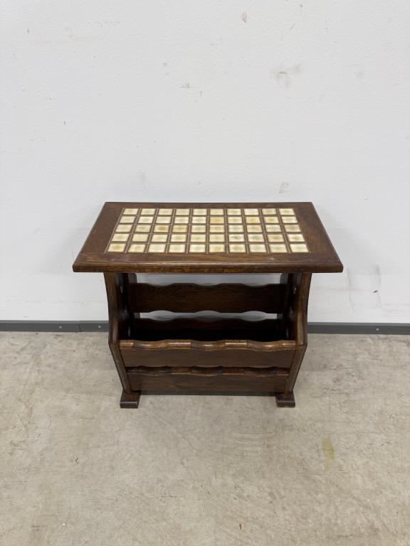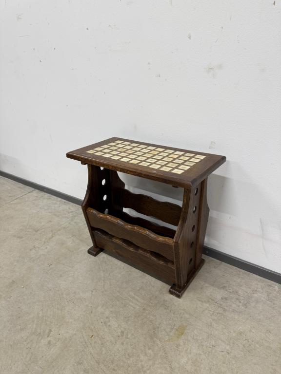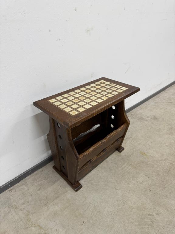 Keraamilise plaadiga tammest ajalehelaud.