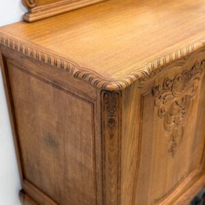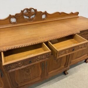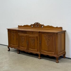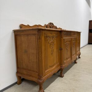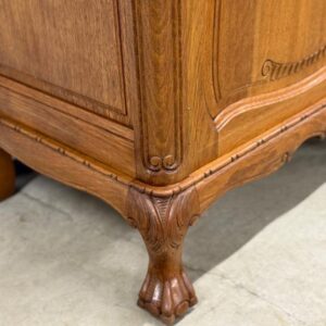 Suursugune ja mahukas Chippendale stiilis kummut/kapp. Kapp on tammest, uhked nikerdused ustel ja raamil. Kummuti kõrgus 95 cm, iluliist 25 cm. NB! Seda kappi on võimalik tranpordiks osadeks võtta! Olemas ka sama elutoakomplekti vitriinkapp ning pikendatav söögilaud kuue tooliga.