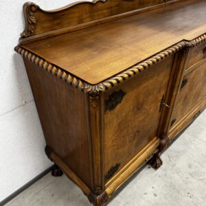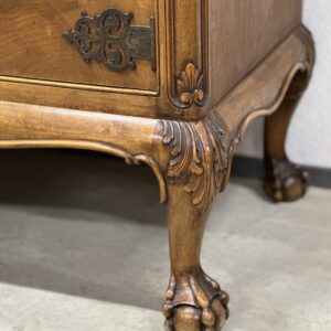 Uhkete nikerdustega kaunis Chippendale kummut/kapp. Raam tammest, uksed pähklispooniga. Kummuti kõrgus 98 cm, iluliist 16 cm. Lukud töökorras, võtmed olemas. Leidub väiksemaid kulumis- ja kasutusjälgi, kuid üldmulje väga hea. NB! Vasakul küljel väike spoonidefekt – vt pilt. Transport ühes osas.