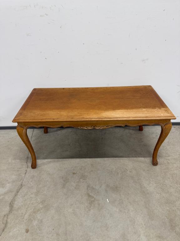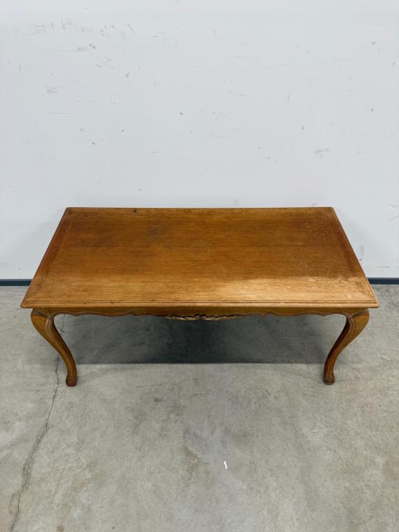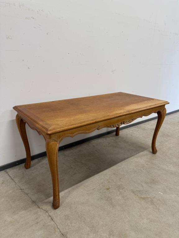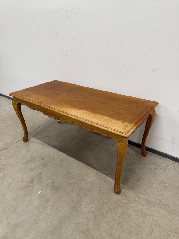 Tammest raamiga diivanilaud. Hea suurusega, kuid plaadil niiskuskahjustus.