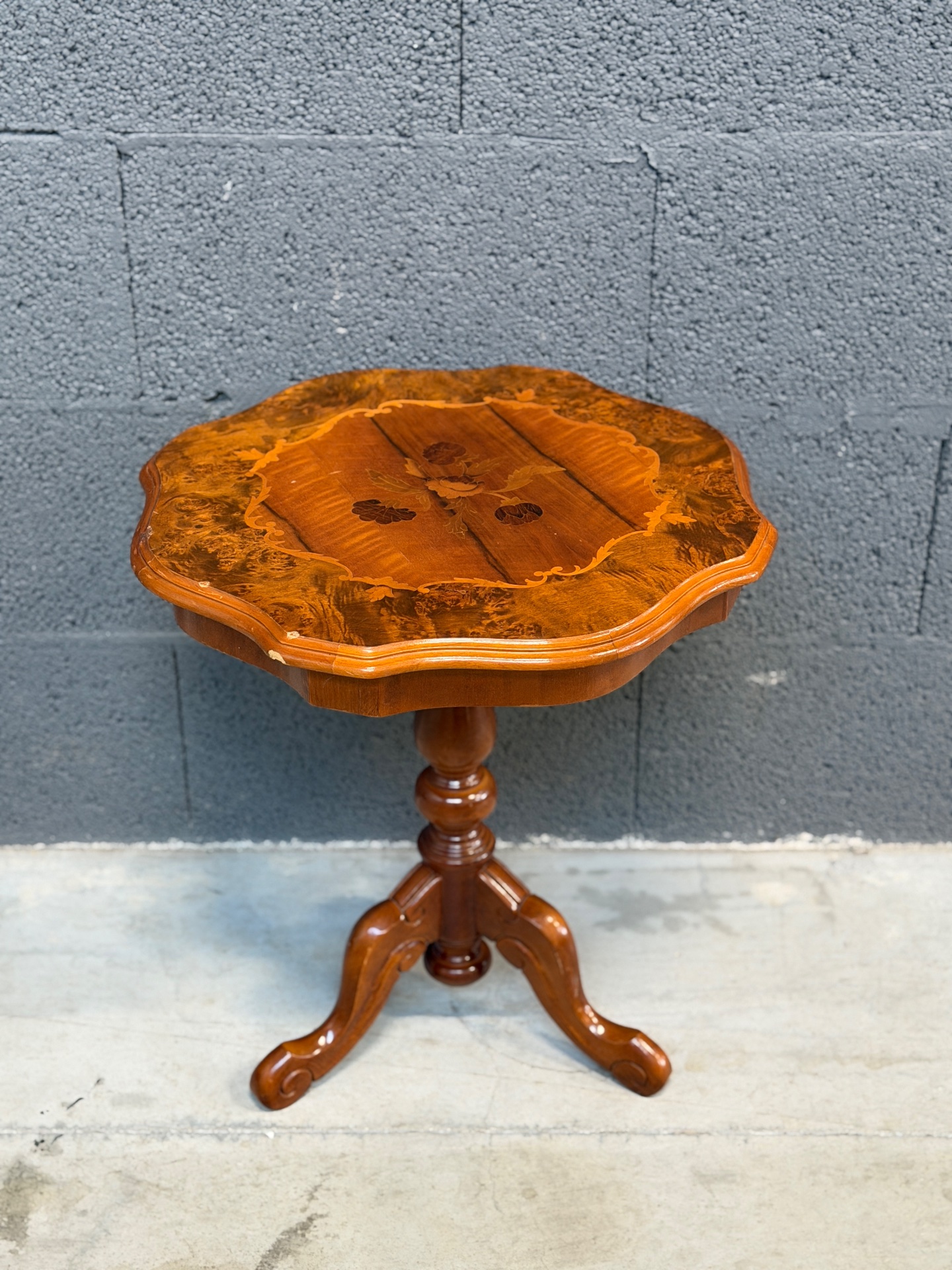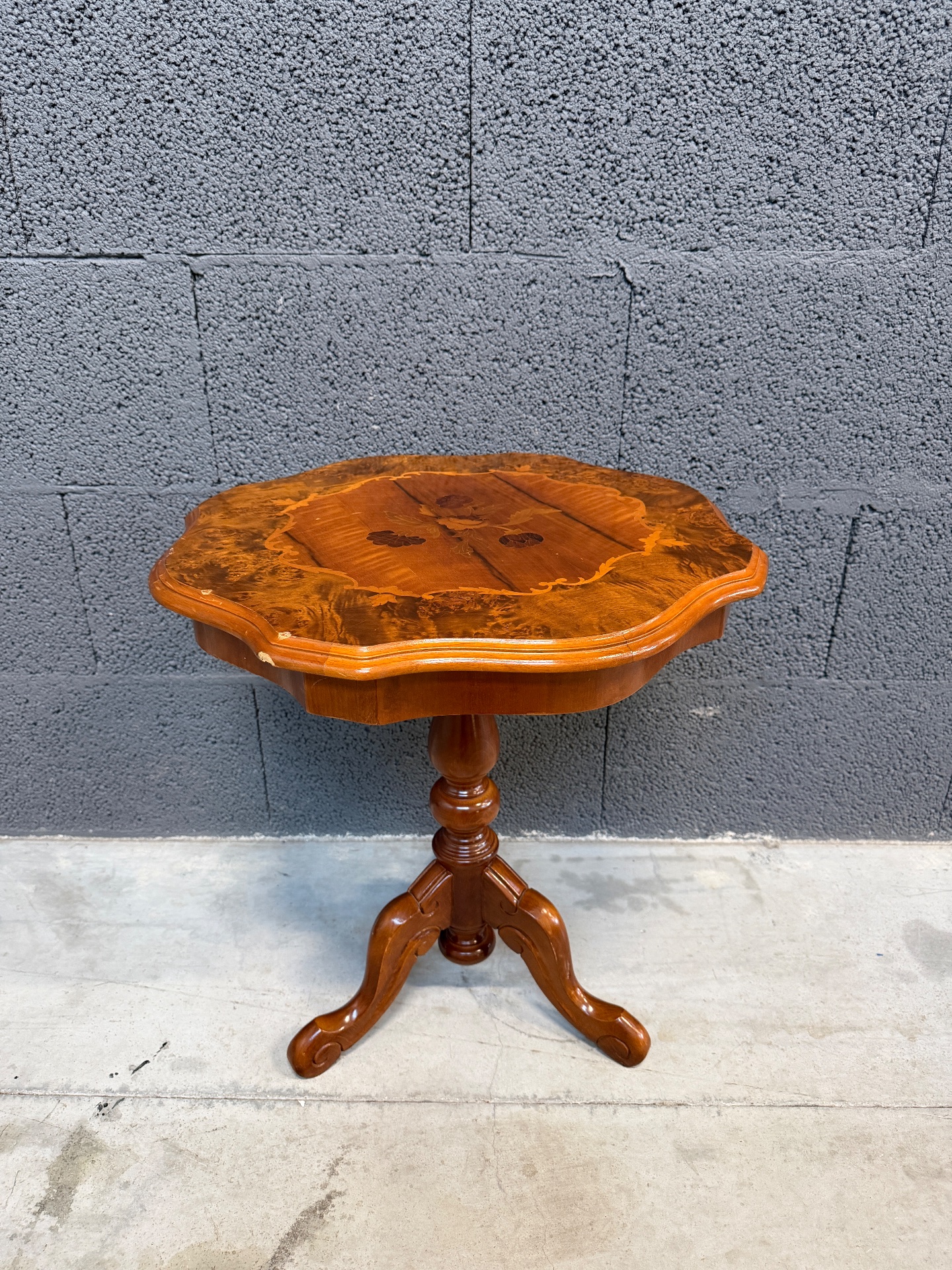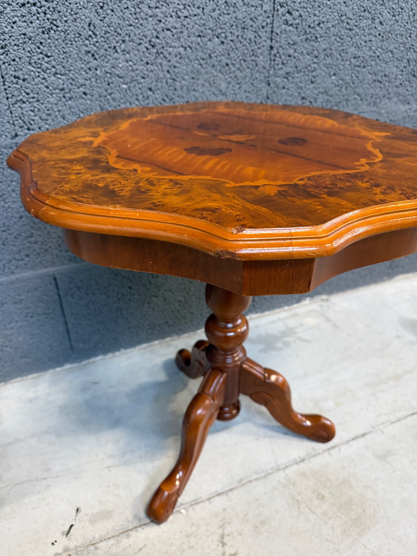 Kena vormiga pähklipuust lauake. Leidub kulumis- ja kasutusjälgi.