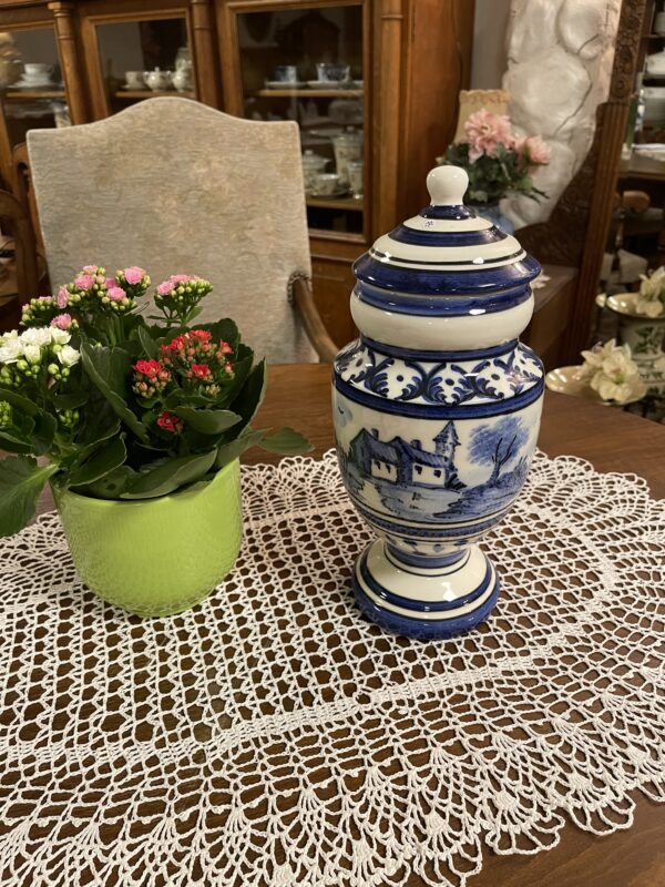 Sinise dekooriga kaanega vaas.