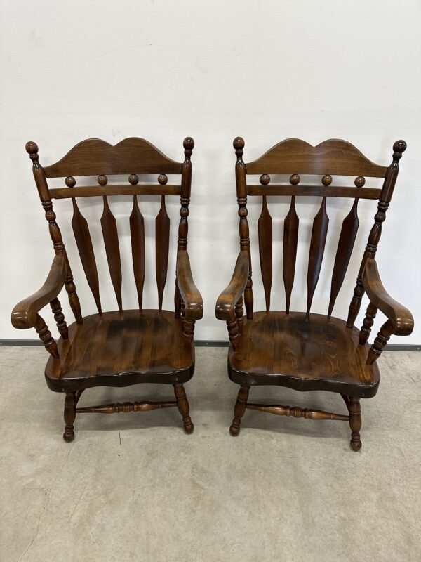 Tugeva raamiga üleni puidust käetugedega tool. Istumisosa kõrgus 38 cm.