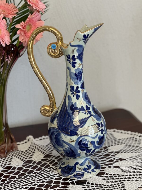 Kaunis linnudekooriga kuldse sangaga kann. Efektne ja kaunis. Veidi esineb kullatise kulumist.