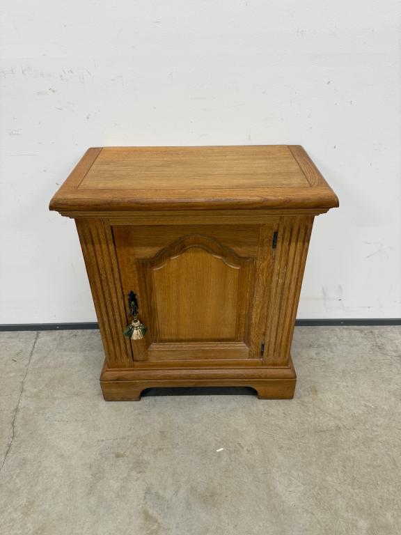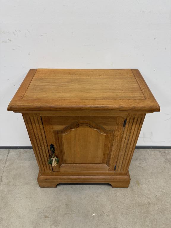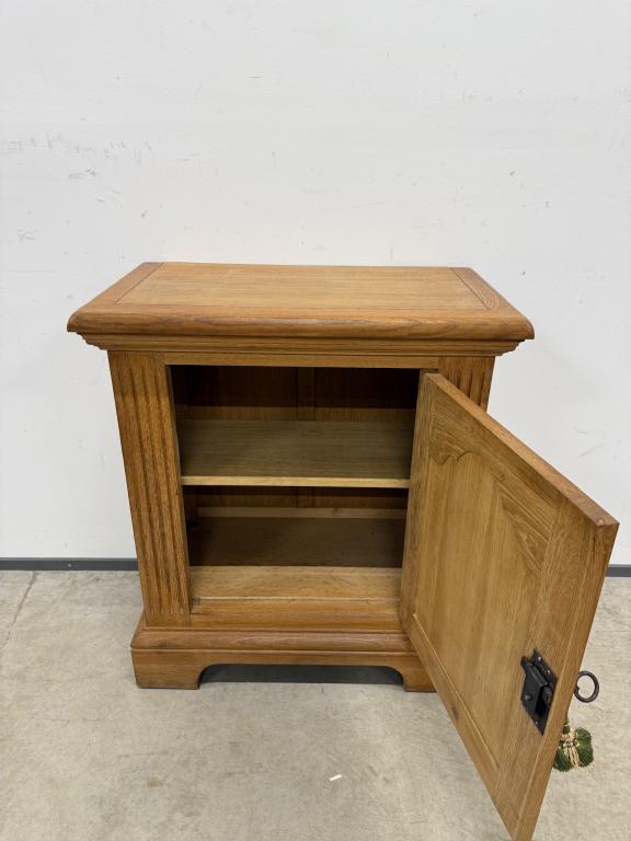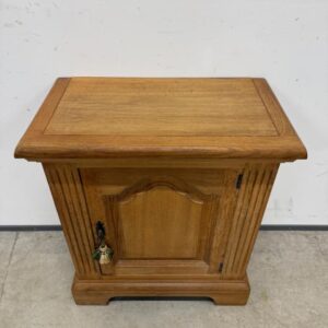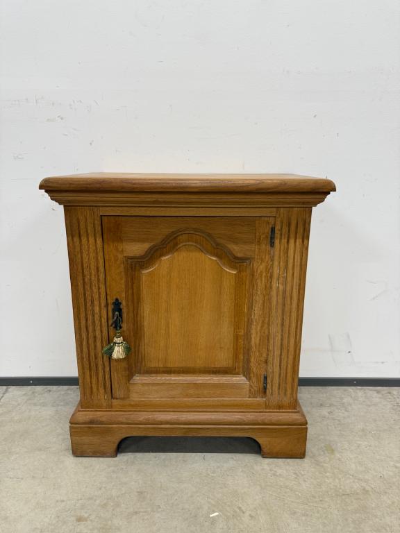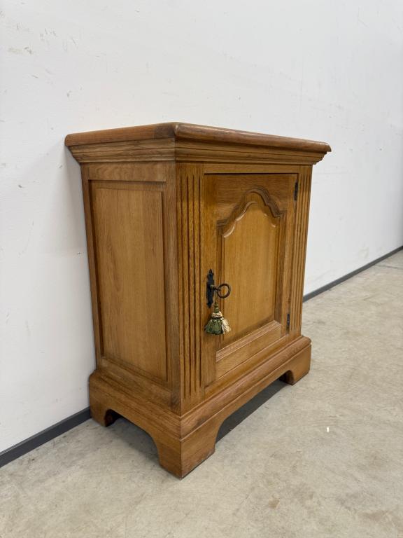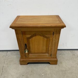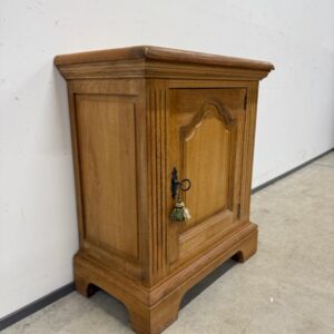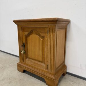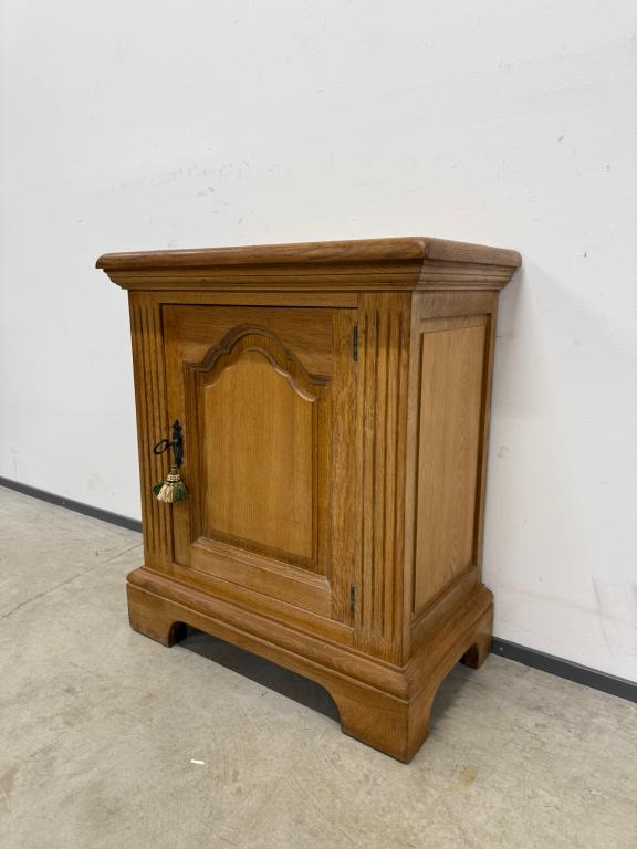 Heledast tammest soliidne kapp. Pealmisel plaadil mõned kulumis- ja kasutusjäljed. Lukk töökorras, võti olemas. Transport ühes osas.