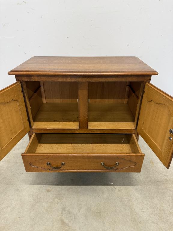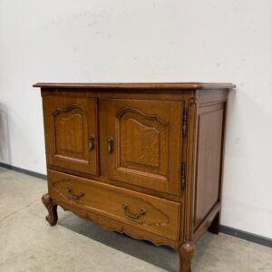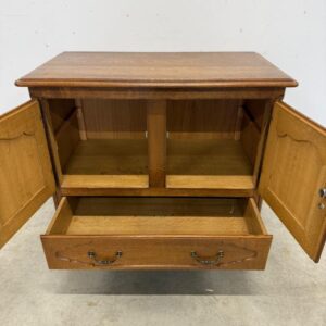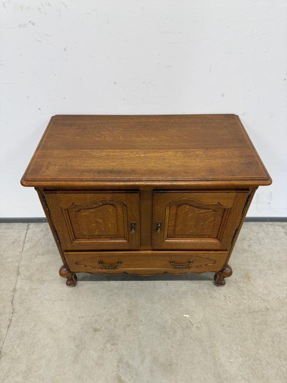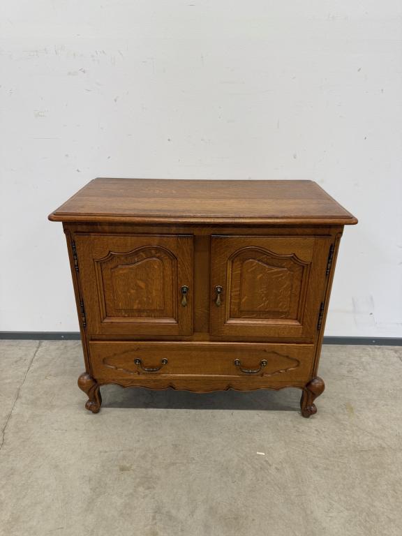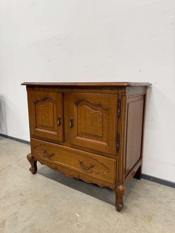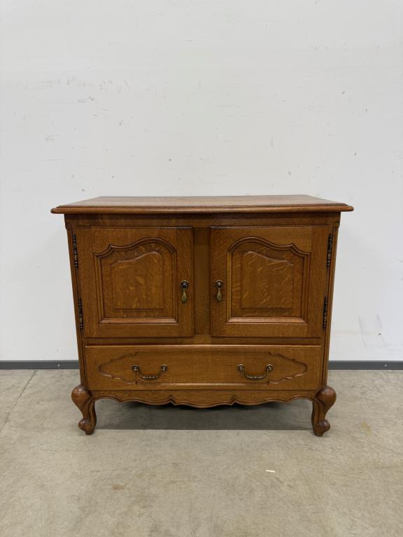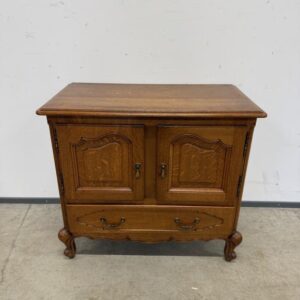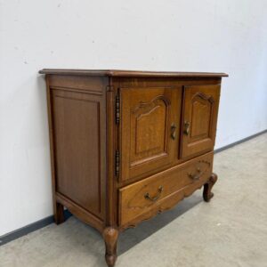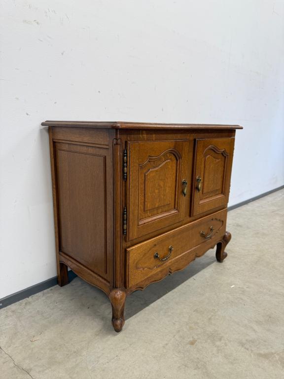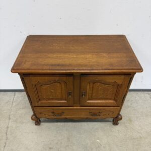 Kahe ukse ning sahtliga tammest raamiga kapp. Kena vormiga ning üsna mahukas. Leidub väiksemaid kulumis- ja kasutusjälgi, kuid üldmulje väga hea.