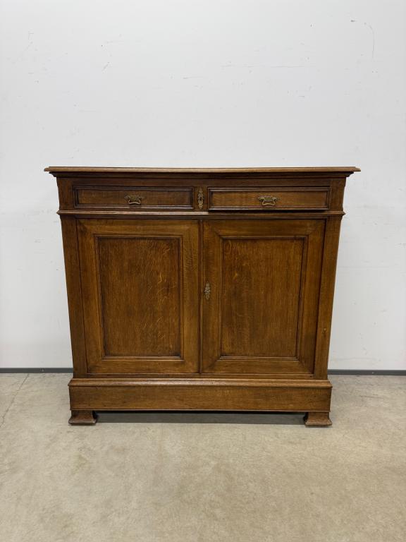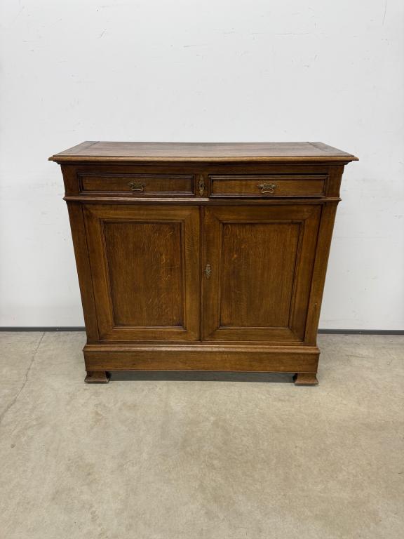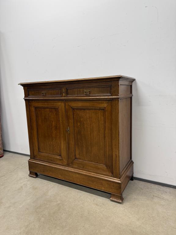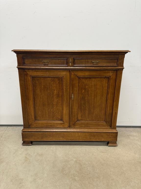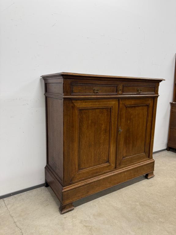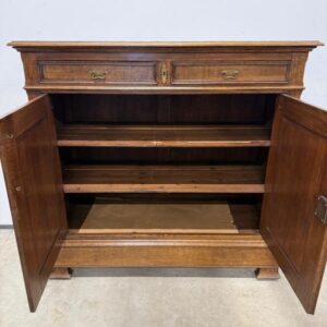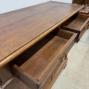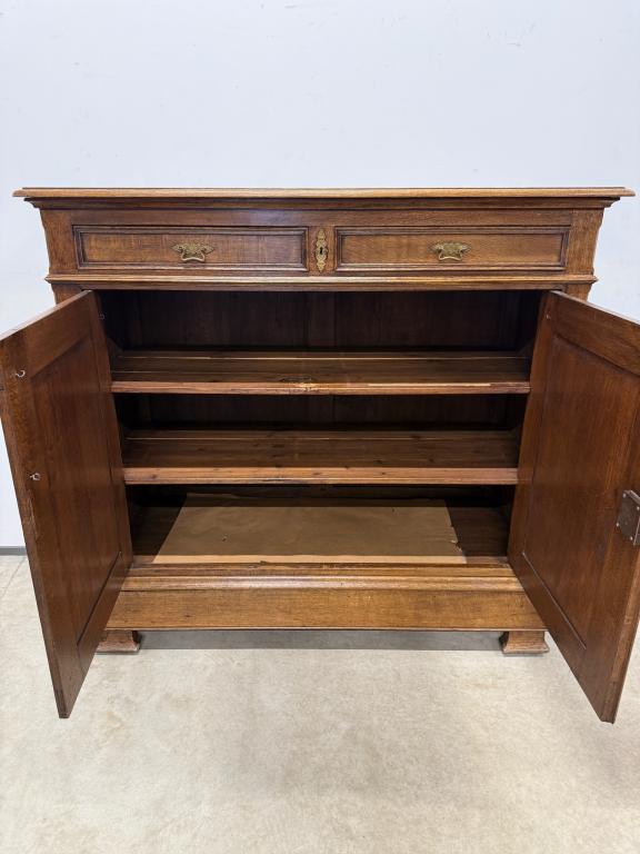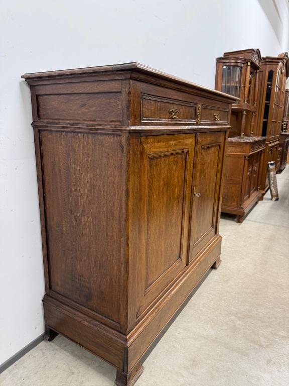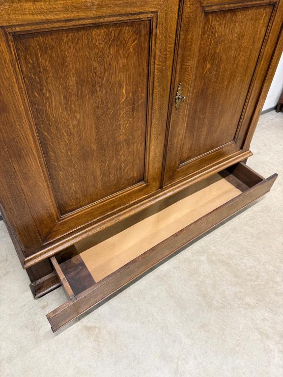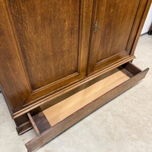 äärmiselt mahukas sajandivanune tammest kapp. All suur sahtel, üleval kaks väiksemat. Sees riiulid. Lukk töökorras, võti olemas. Leidub kulumis- ja kasutusjälgi, kuid üldmulje korralik. Transport ühes osas.