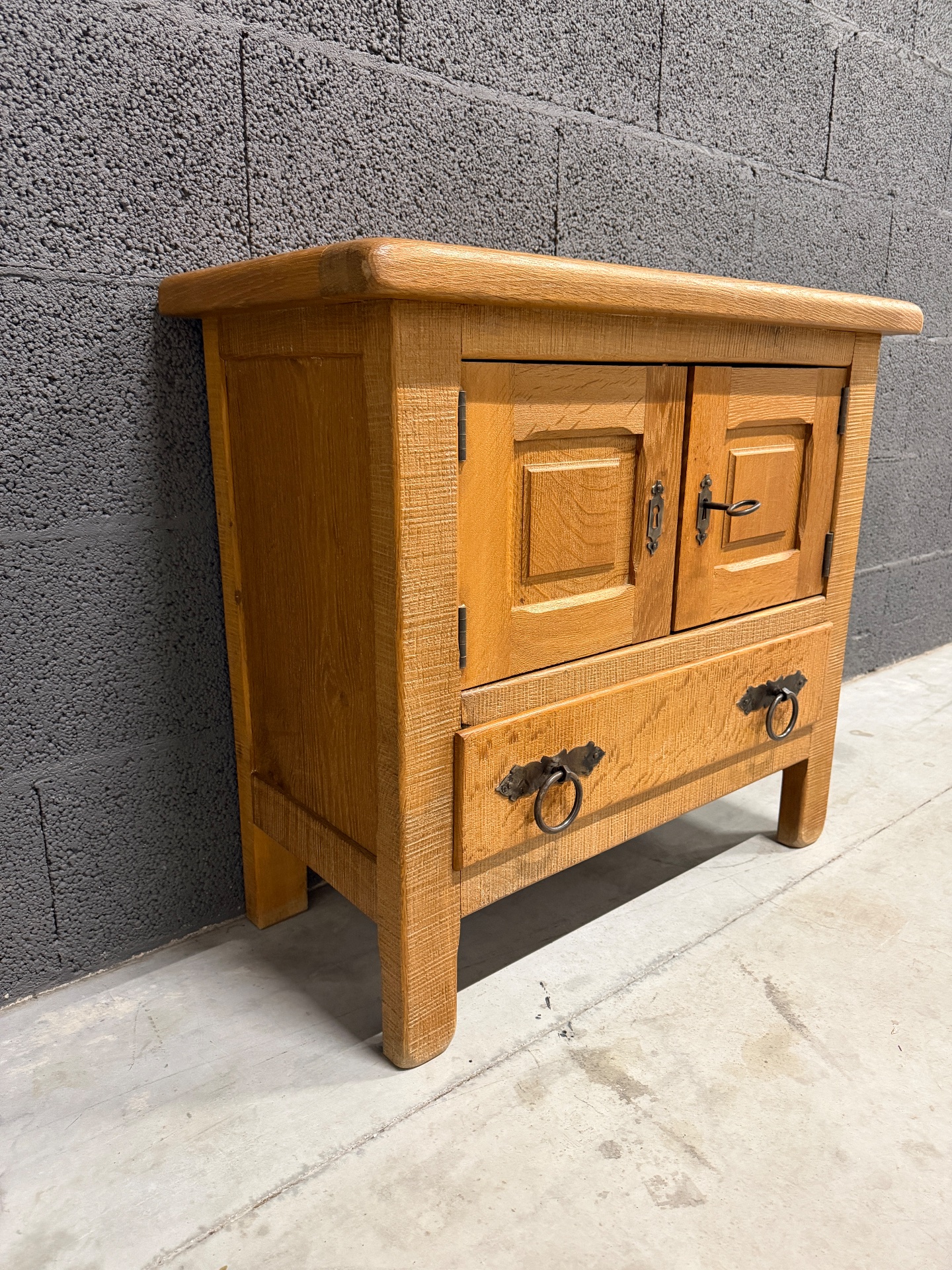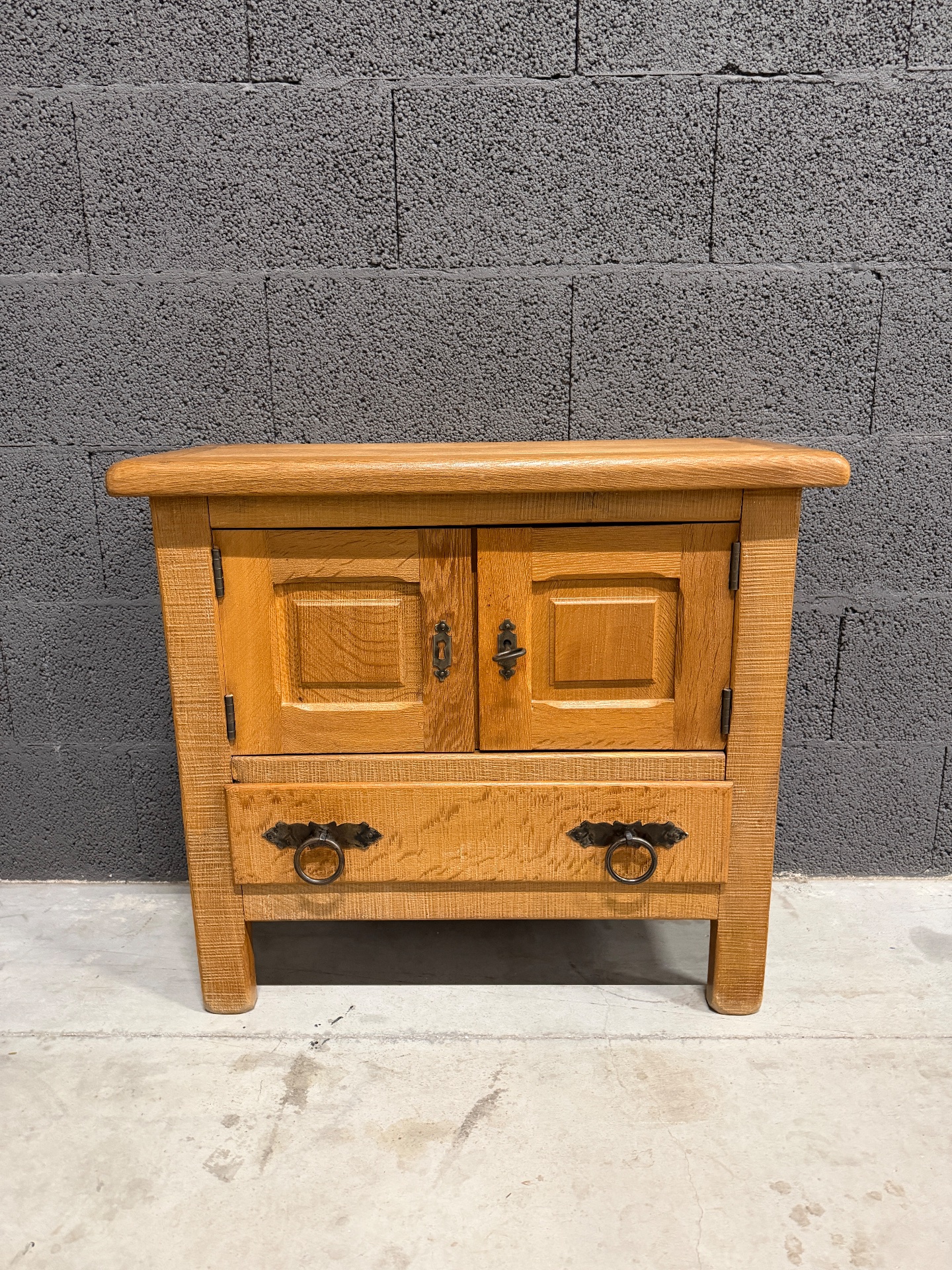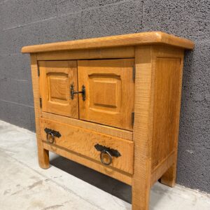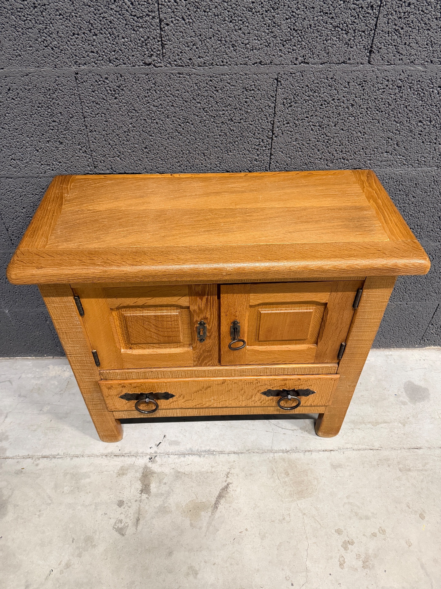 Rustikaases stiilis tammest kapp. Kena ja heas seisukorras. Lukk töökorras, võti olemas.