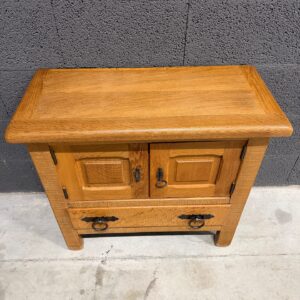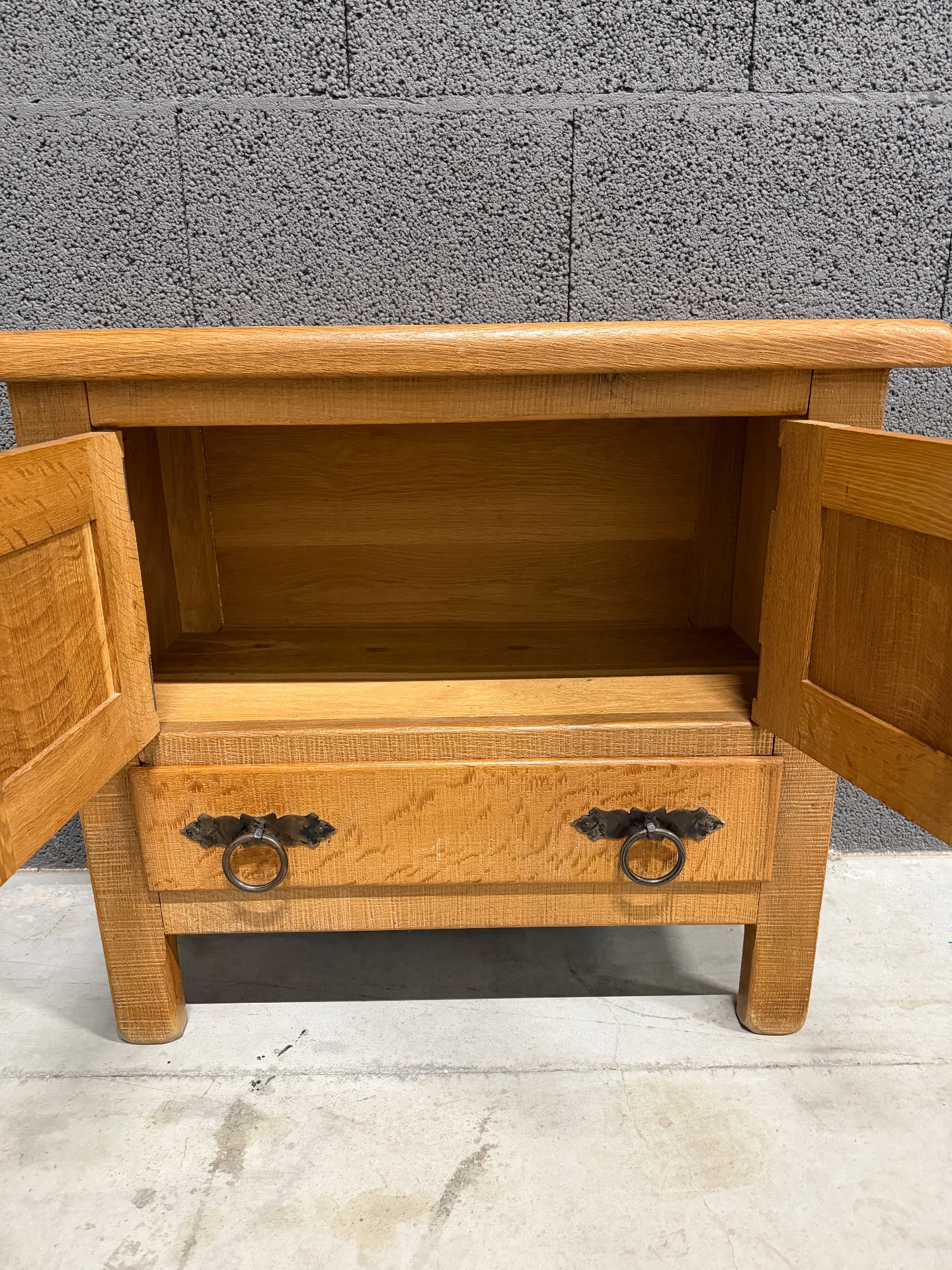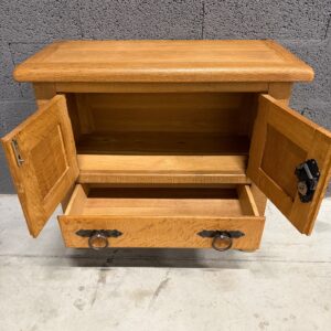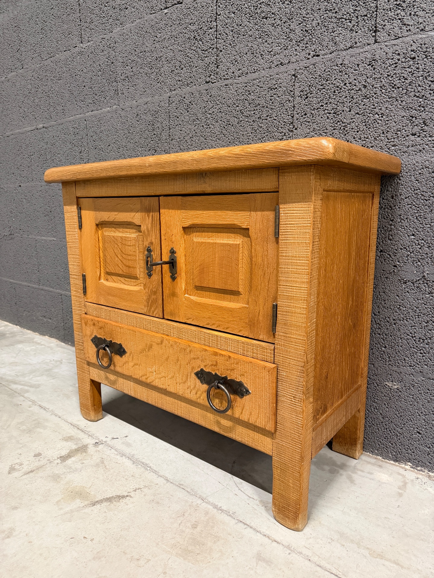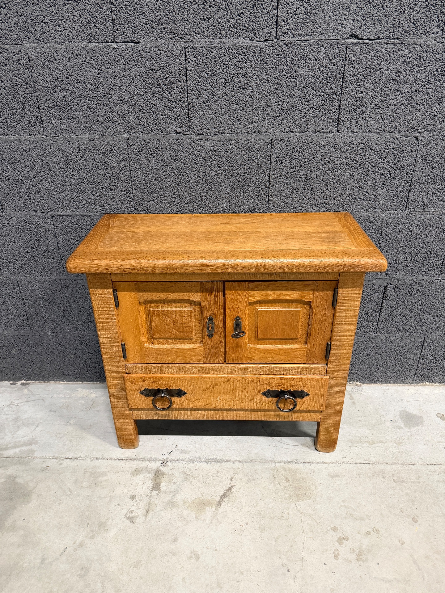 Rustikaases stiilis tammest kapp. Kena ja heas seisukorras. Lukk töökorras, võti olemas.