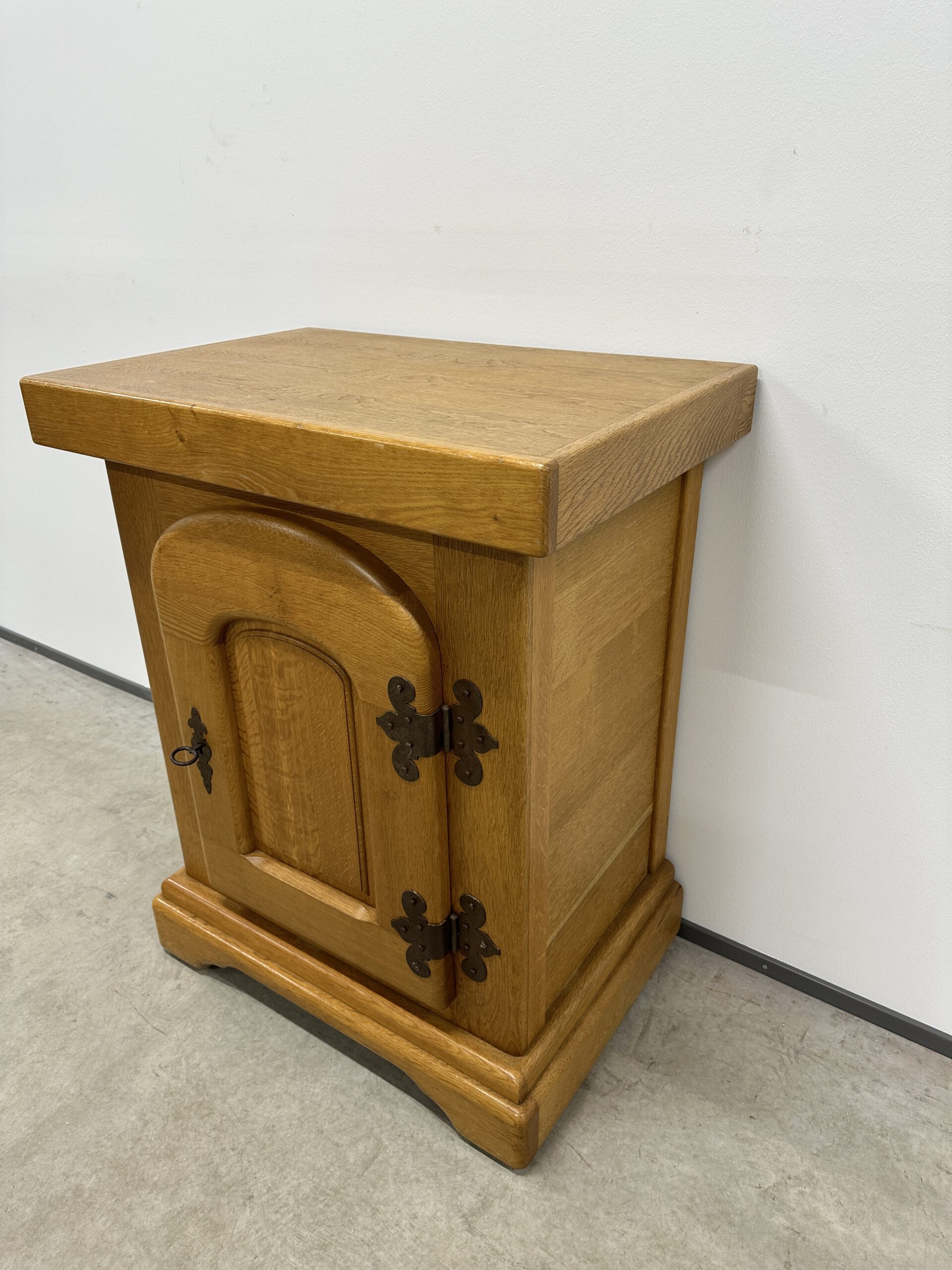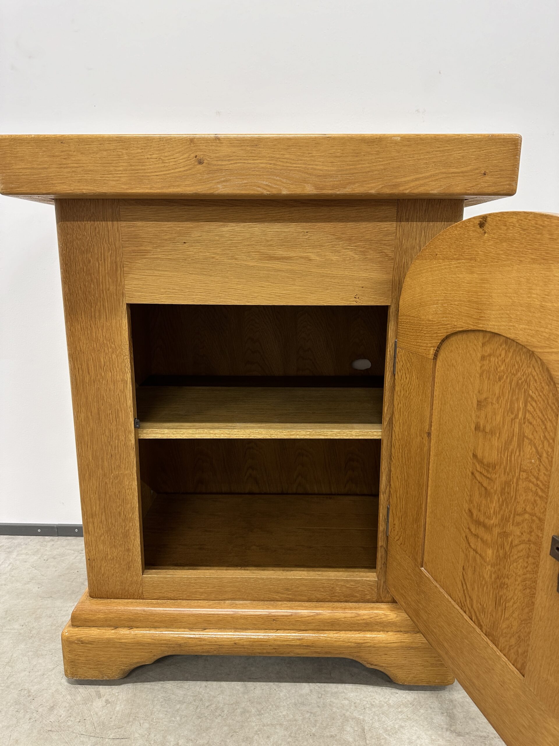 Heledast tammest rustikaalses stiilis kapp. Lukk töökorras, võti olemas.
