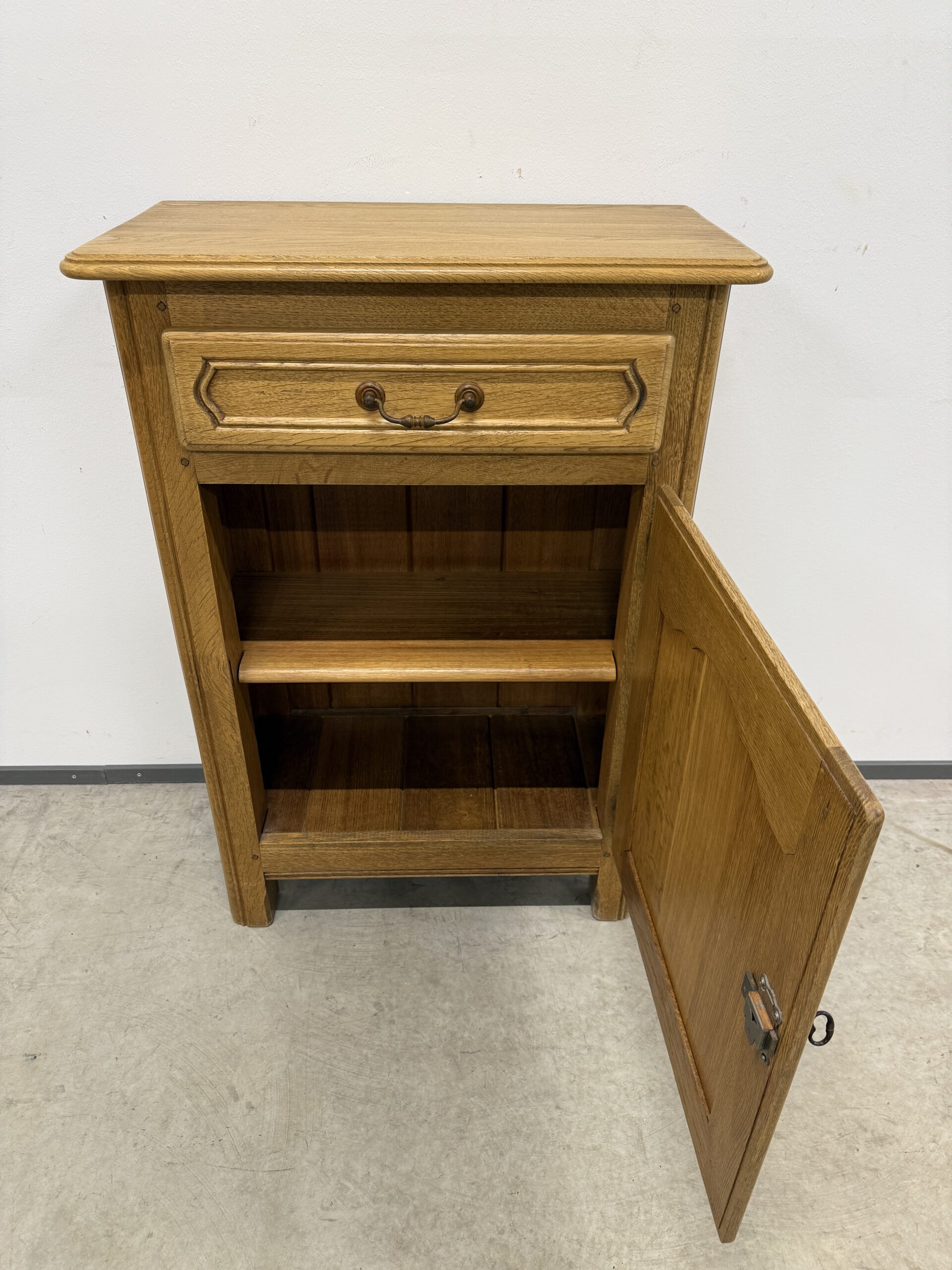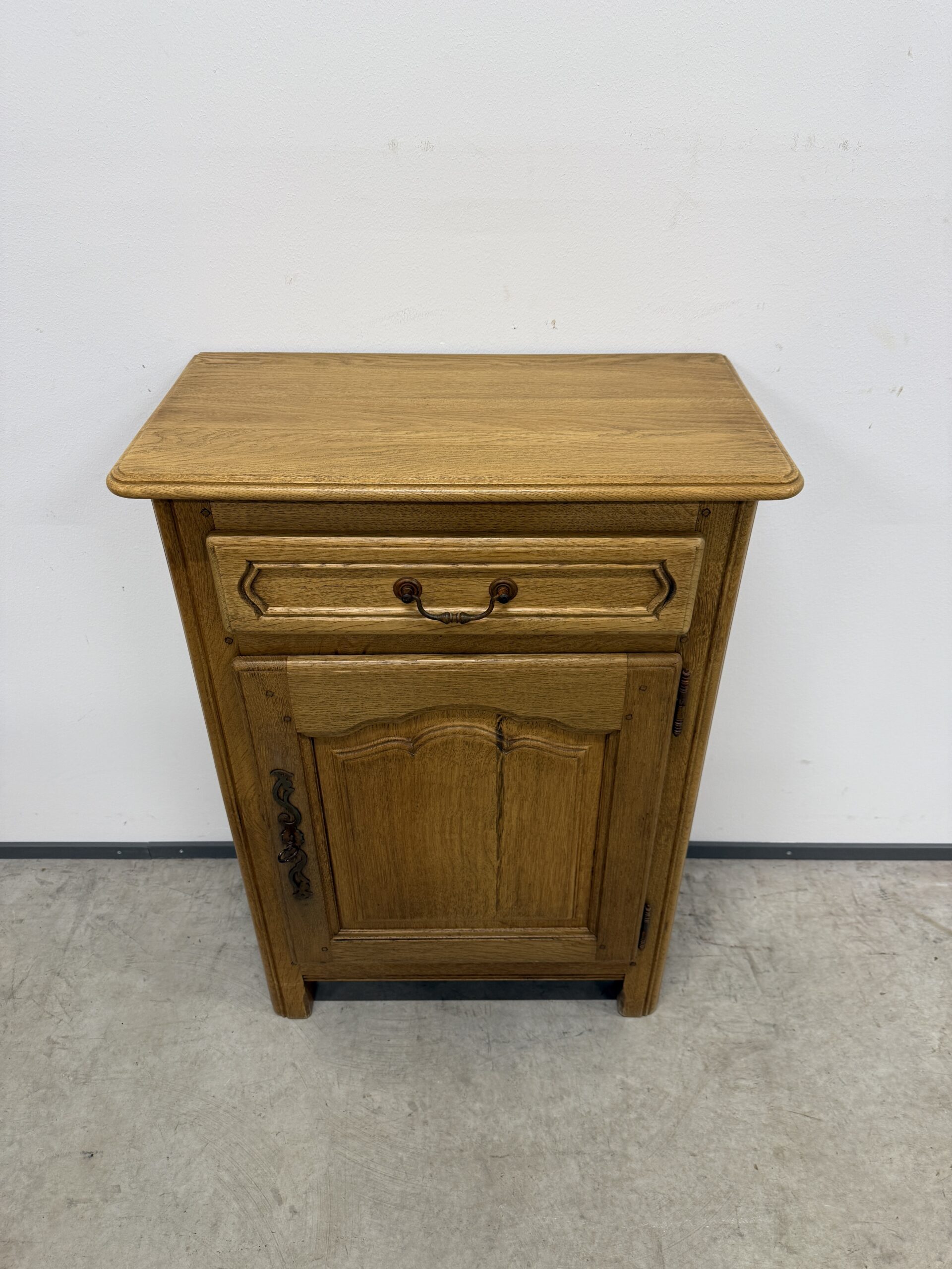 Heledast tammest kompaktse suurusega kapp. Lukk töökorras, võti olemas. Seisukord väga hea. Transport ühes osas.