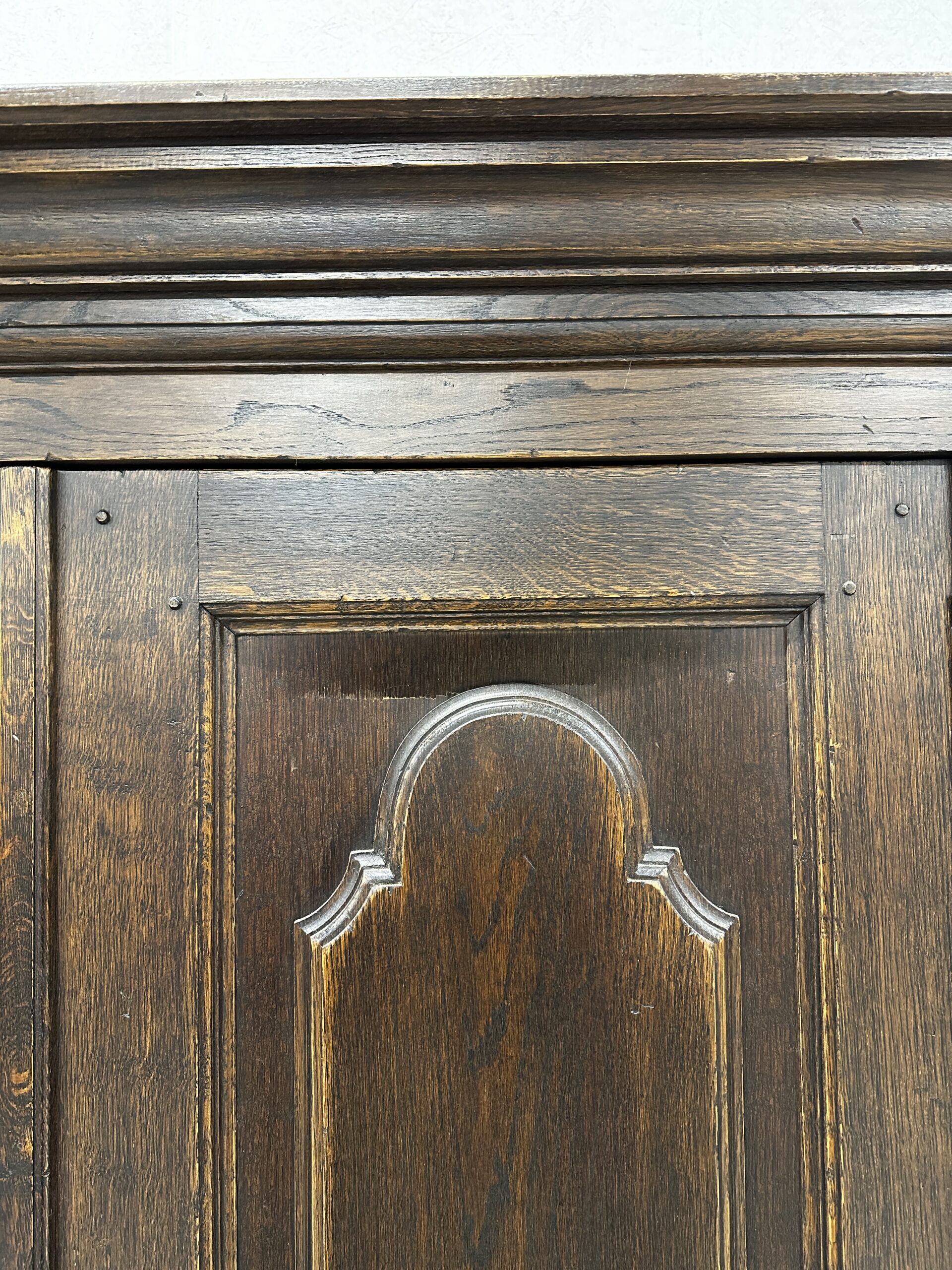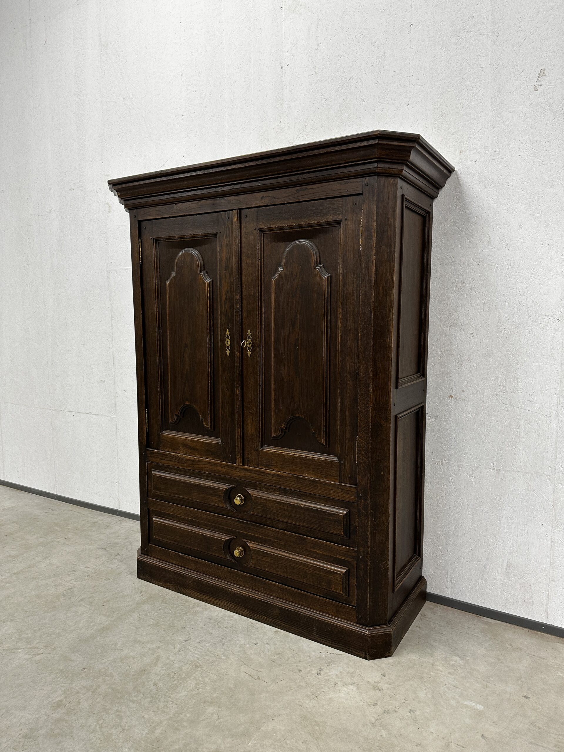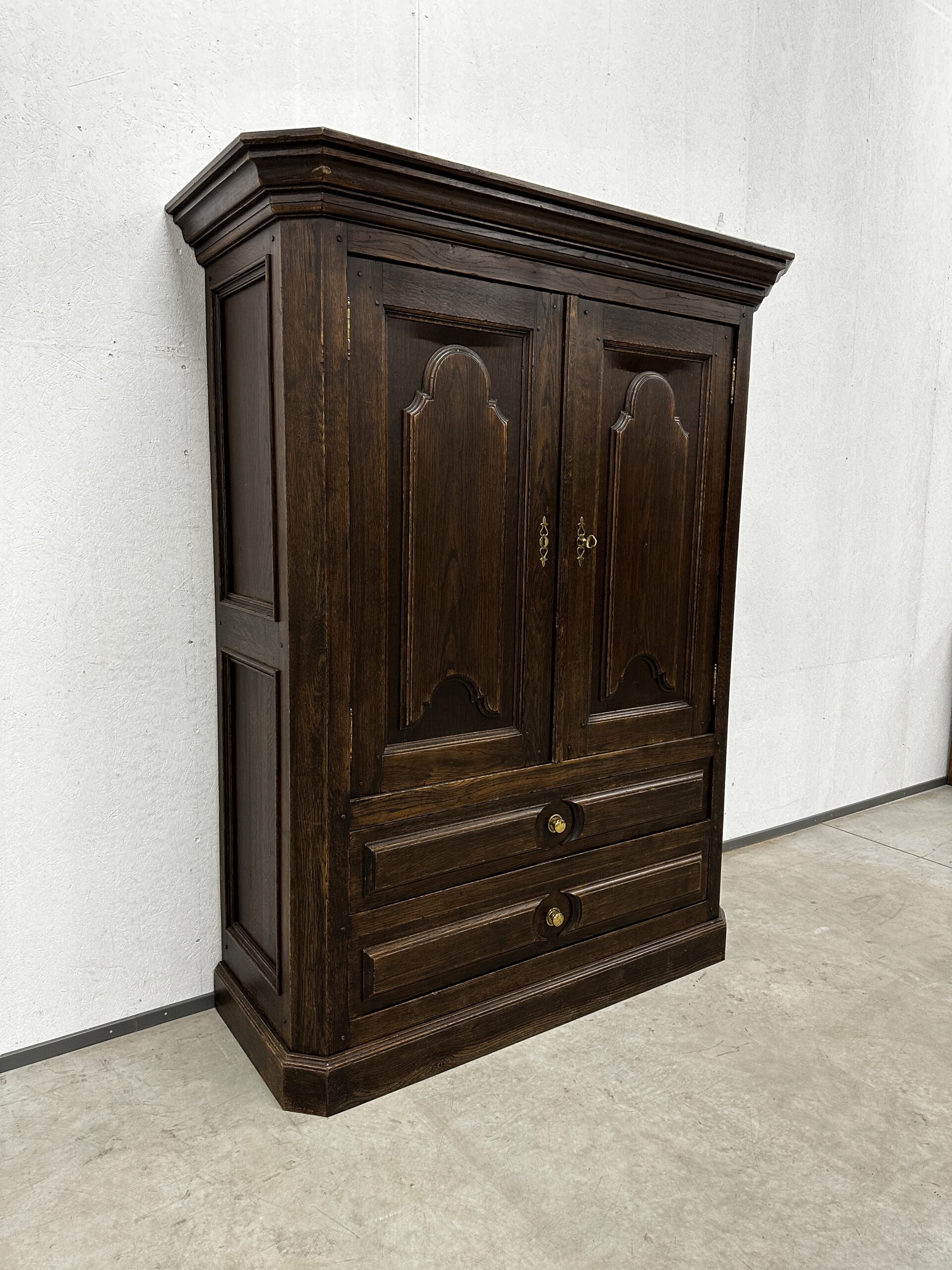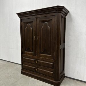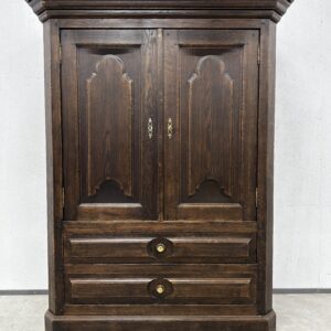 Massiivsest tammest suur ja mahukas kapp. Kapi kõik detailid tammest, lukk töökorras, võti olemas. Nb! Kapi ustel transpordi käigus tekkinud defekt – väljast ei paista eriti silma, kuid näha siseküljelt – vt pilte. Transport ühes osas.