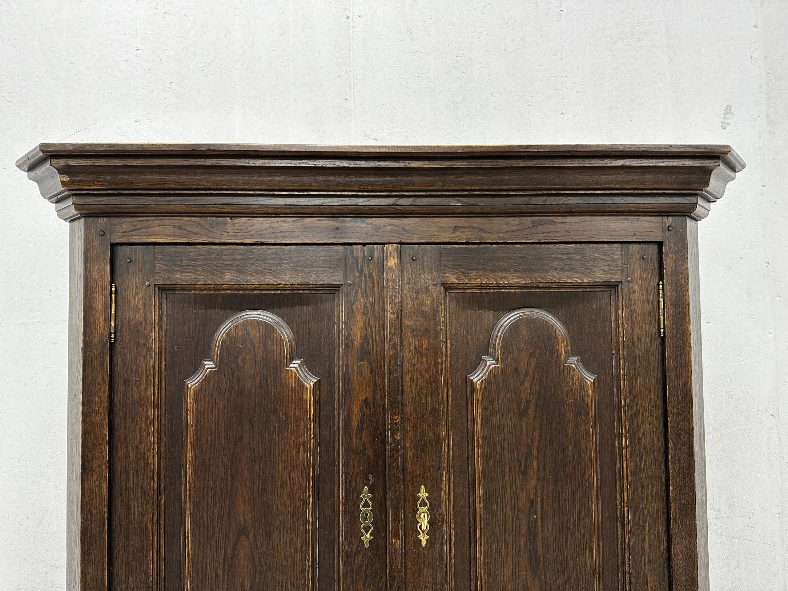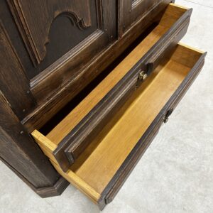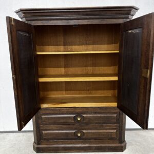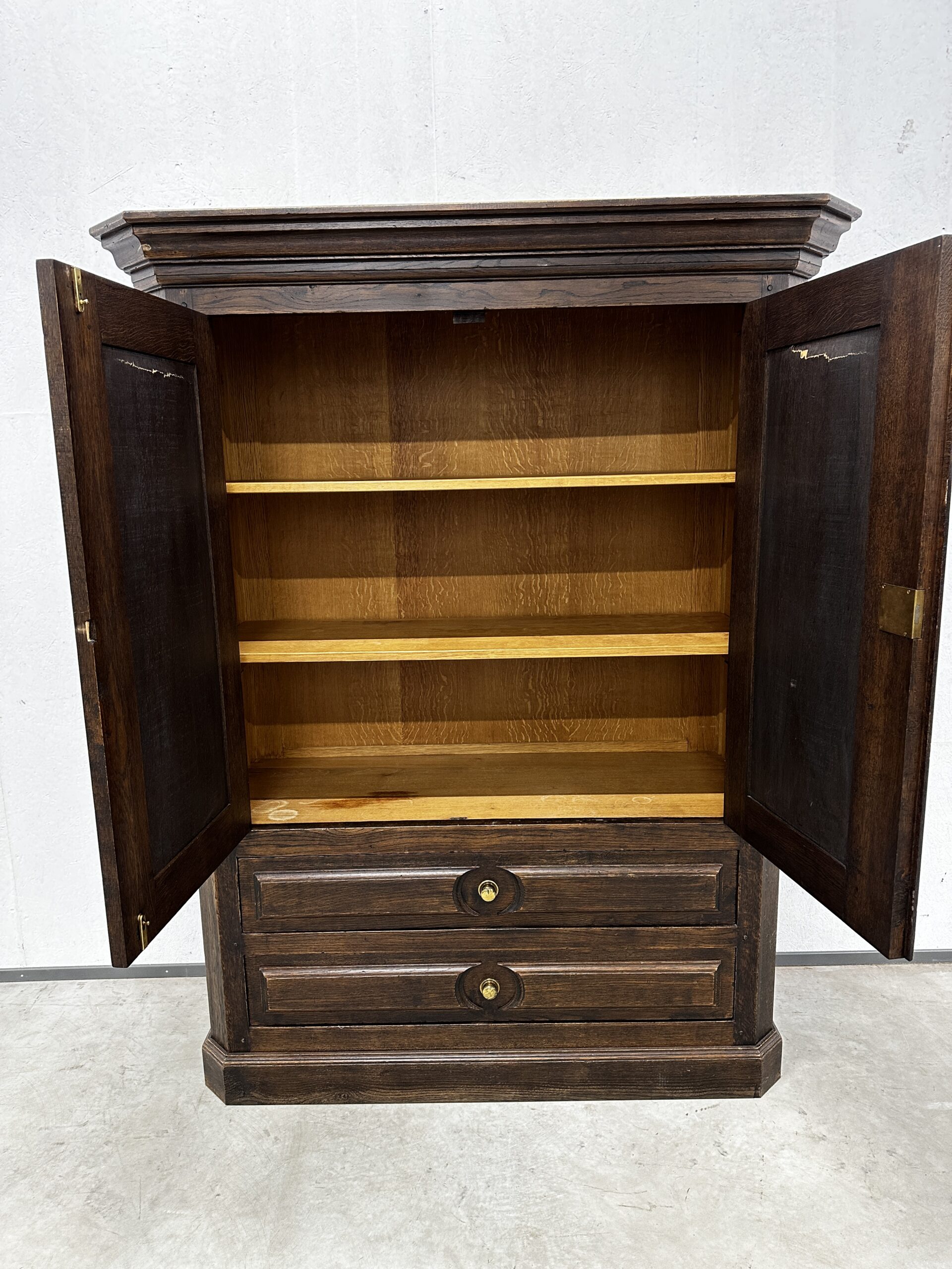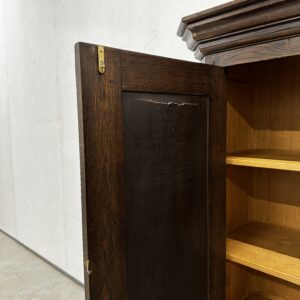 Massiivsest tammest suur ja mahukas kapp. Kapi kõik detailid tammest, lukk töökorras, võti olemas. Nb! Kapi ustel transpordi käigus tekkinud defekt – väljast ei paista eriti silma, kuid näha siseküljelt – vt pilte. Transport ühes osas.