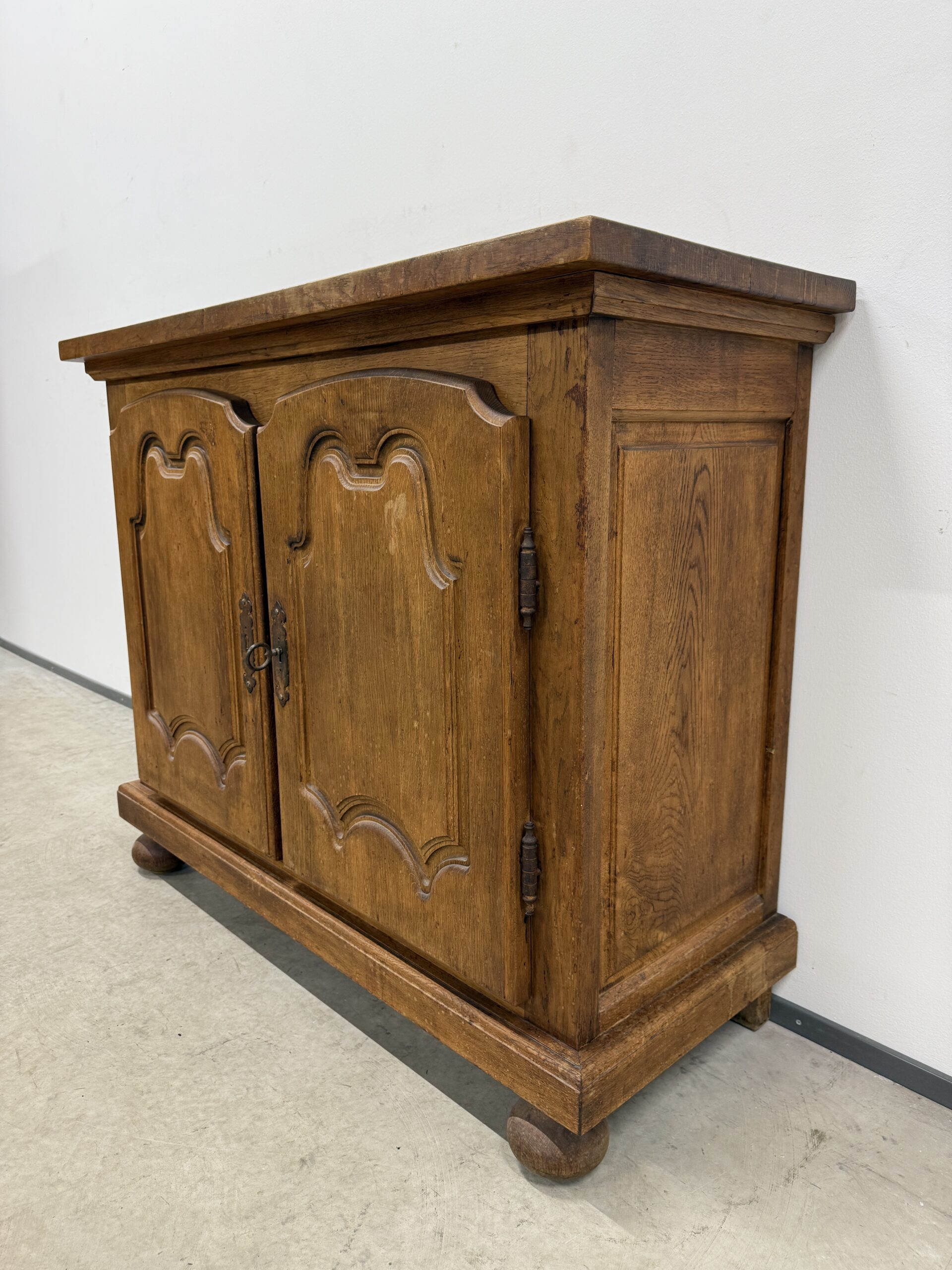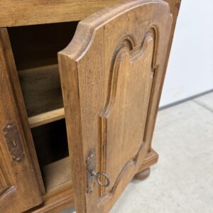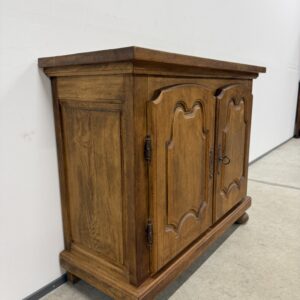 Üleni massiivest tammest kahe uksega kapp. Konstruktsioon tugev ja stabiilne, lukk töökorras, võti olemas. Leidub kulumis- ja kasutusjälgi, nendega hinnas arvestatud! Transport ühes osas.