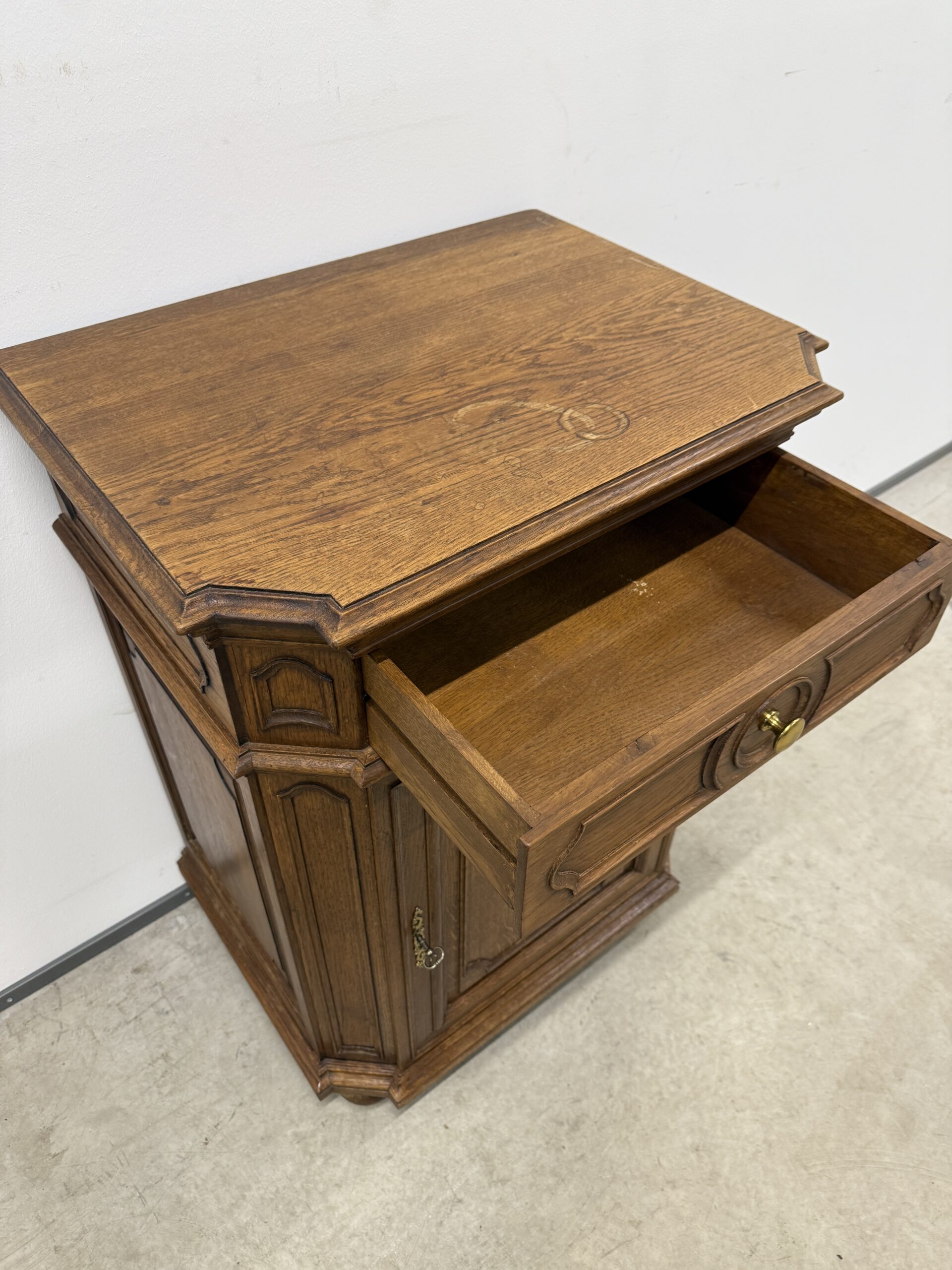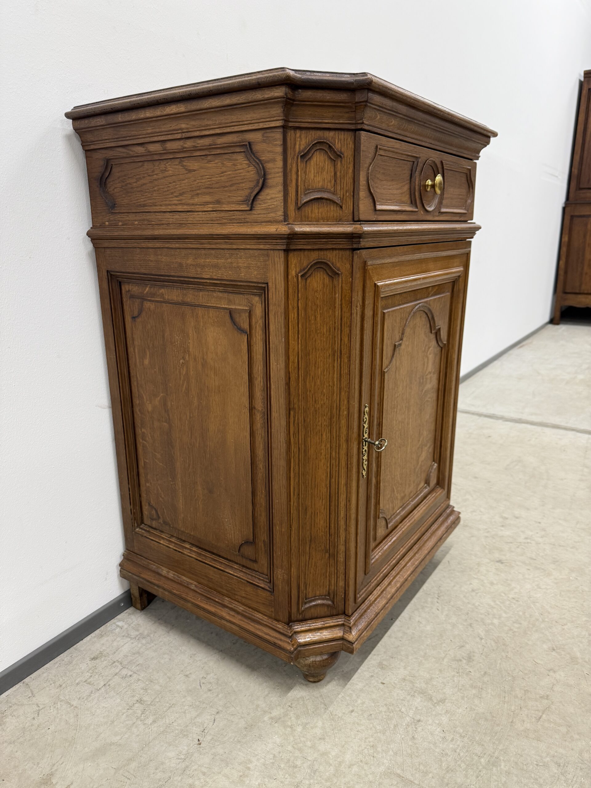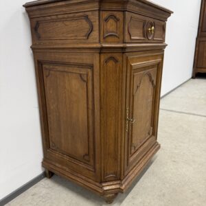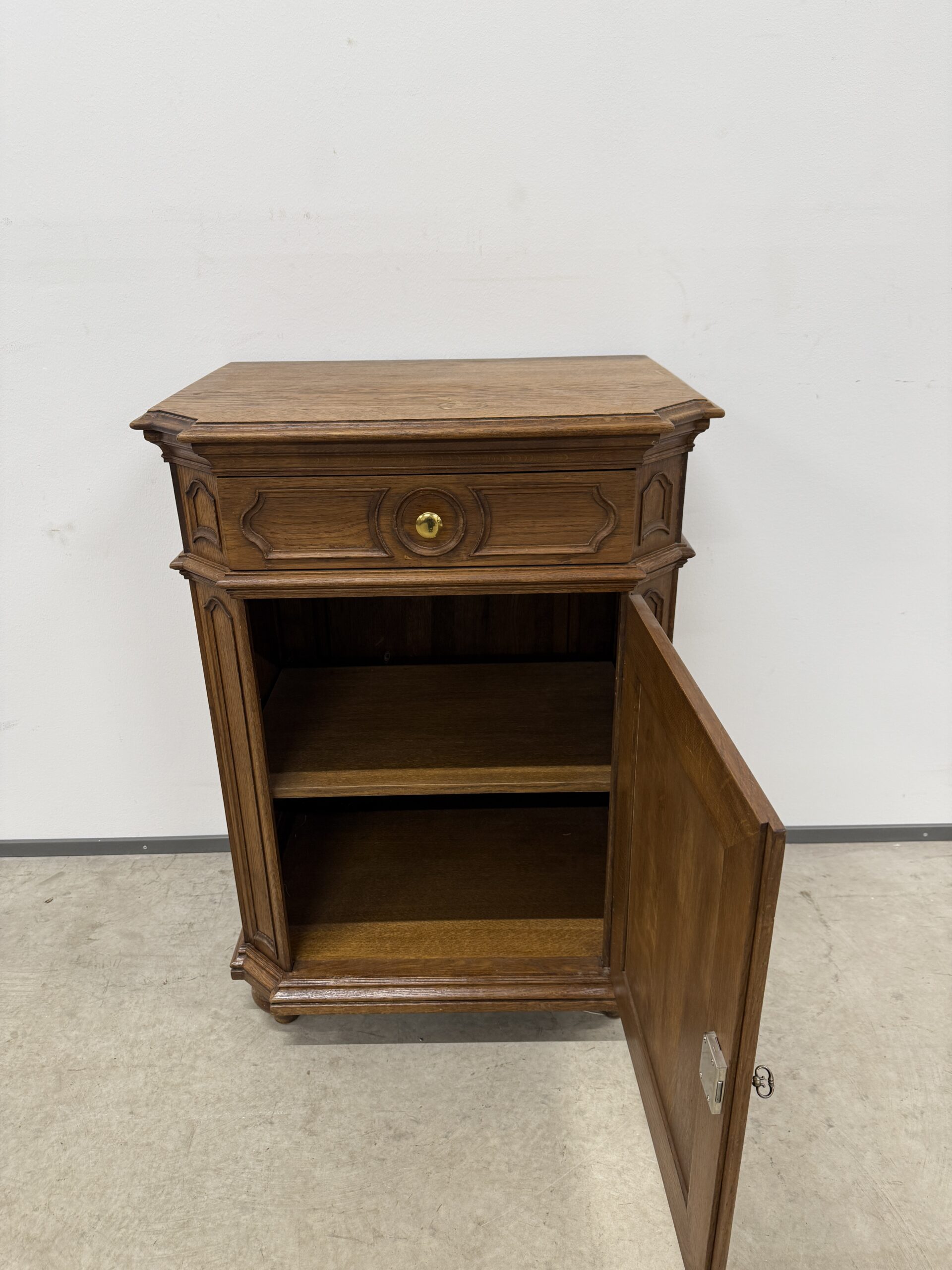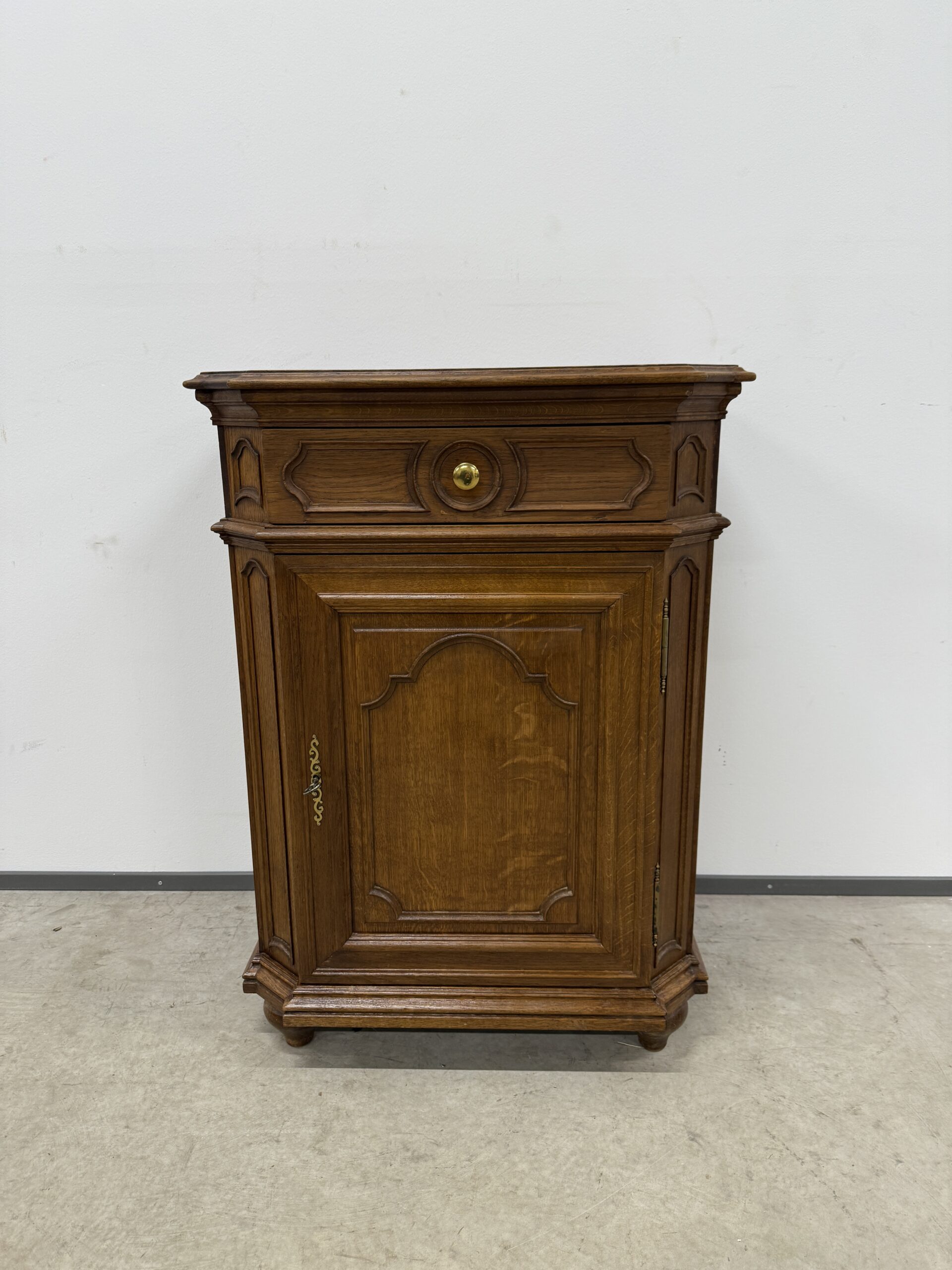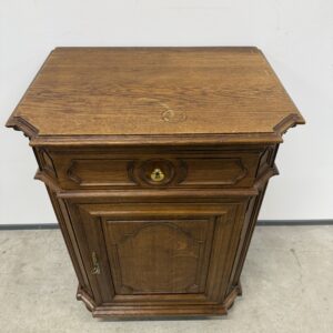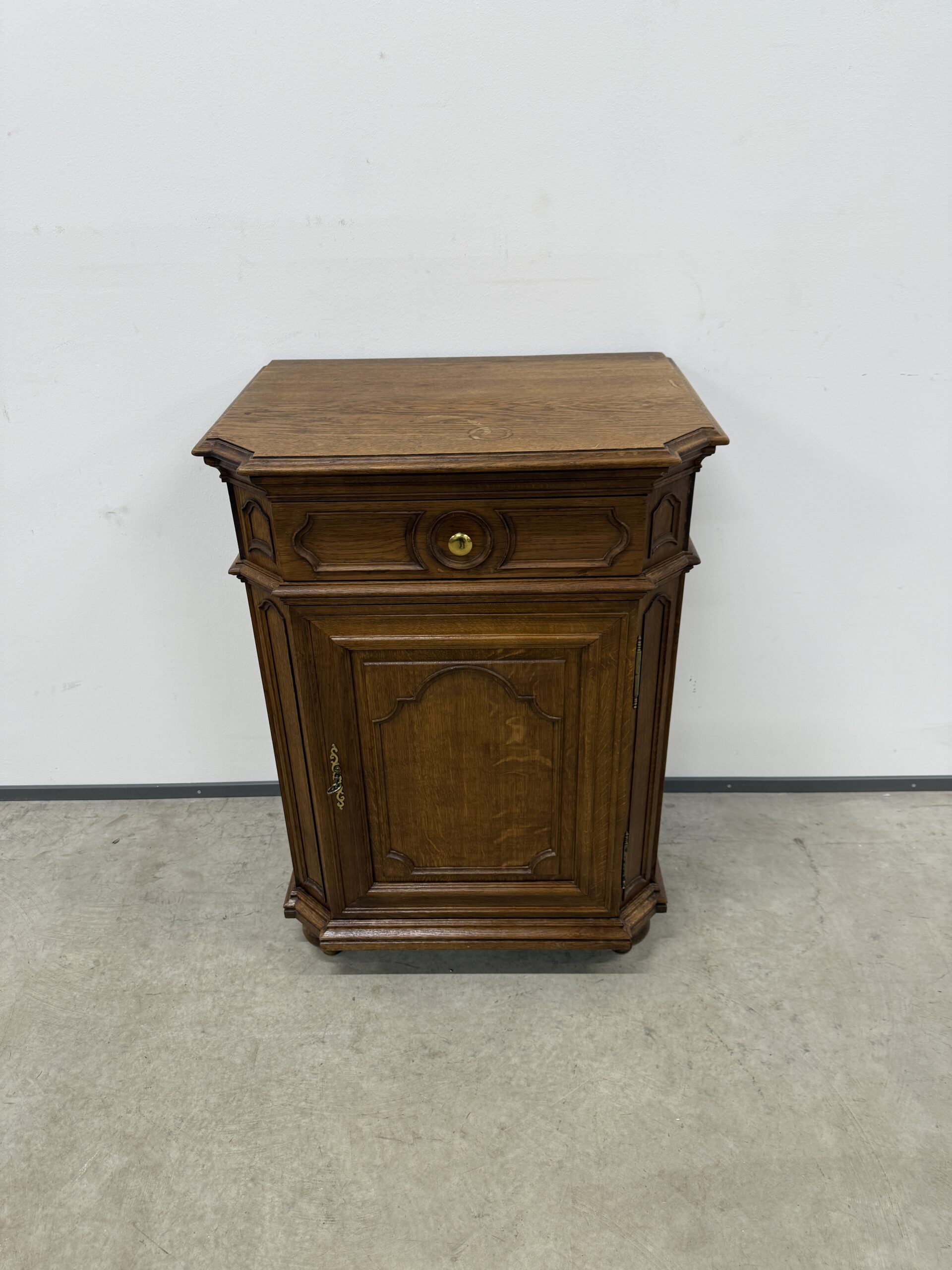 Üleni tammest elegantse joonega kapp. Kitsas, kuid üsna sügav, mahutab palju. Lukk töökorras, võti olemas. Leidub kulumis- ja kasutusjälgi.