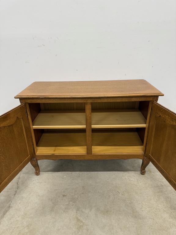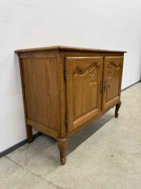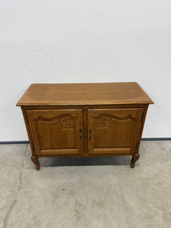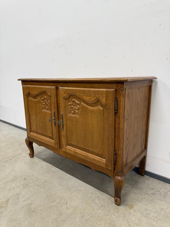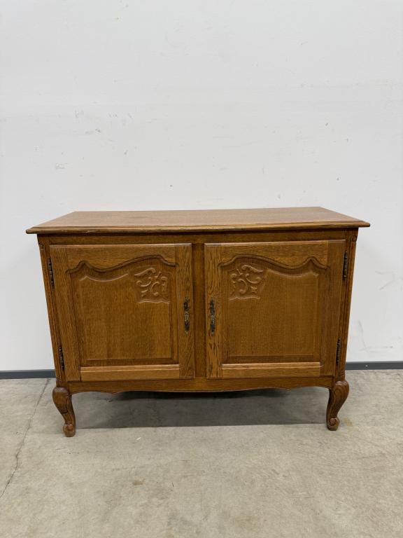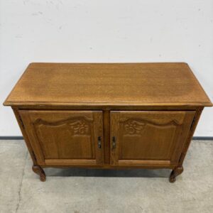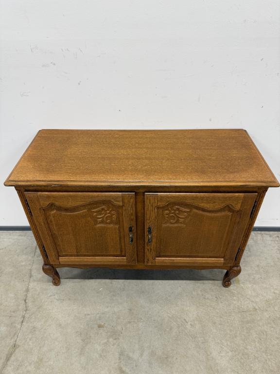 Kahe uksega tammest raamiga kapp. Lukk töökorras, võti olemas.