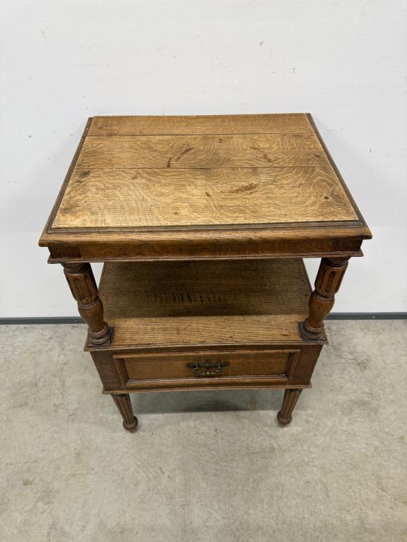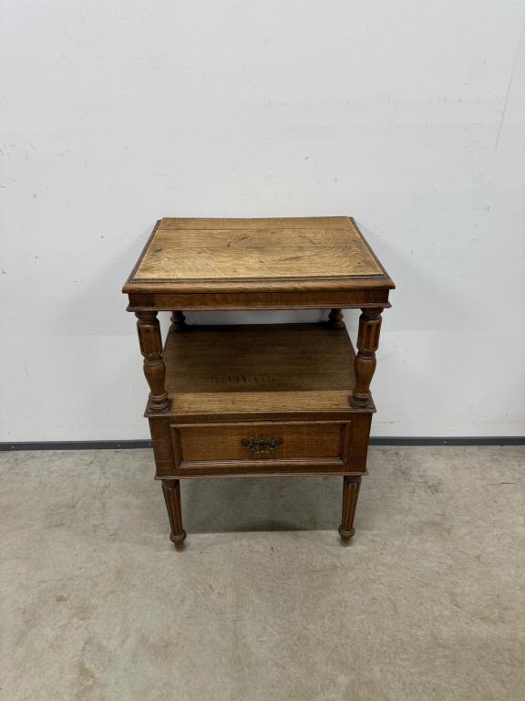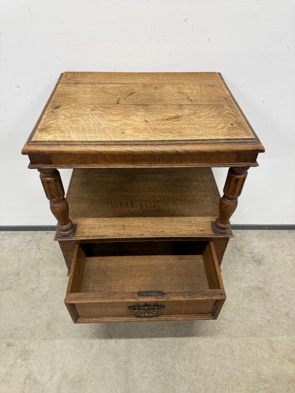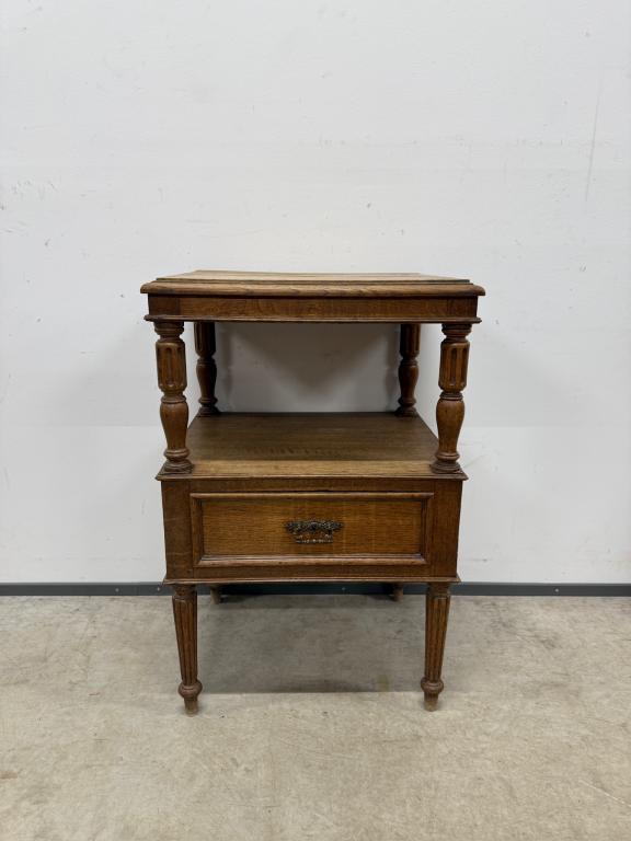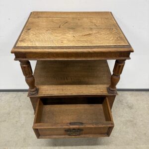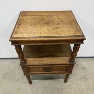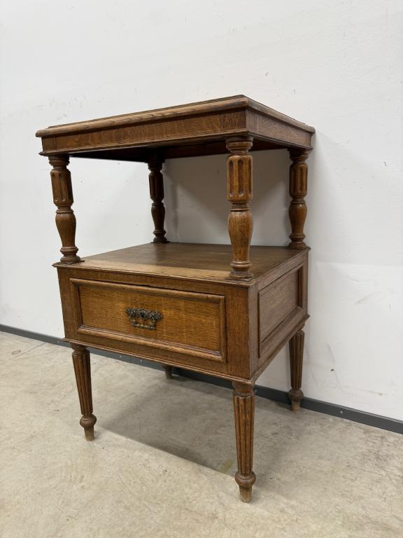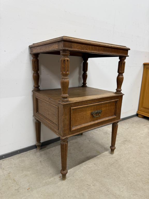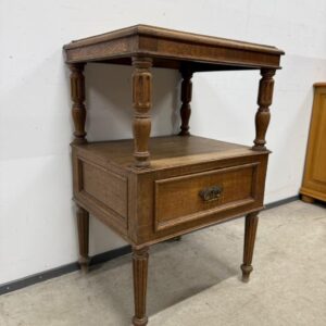 Sajandivanune tammest kapp. Kenad nikerdused raamil, mahukas sahtel. Viimistlus kulunud, ideaalis vajaks värskendamist.