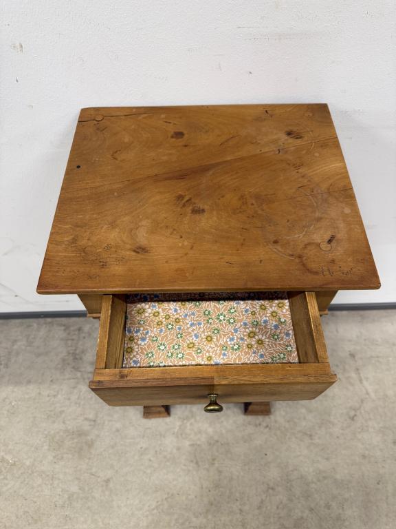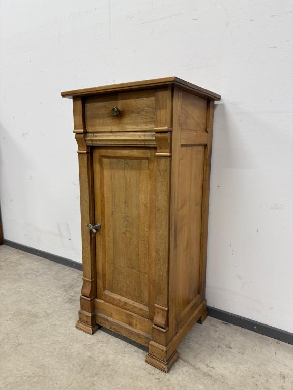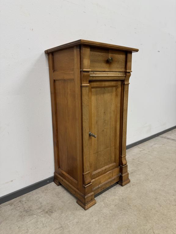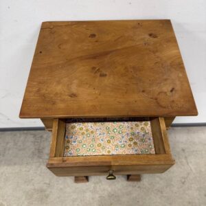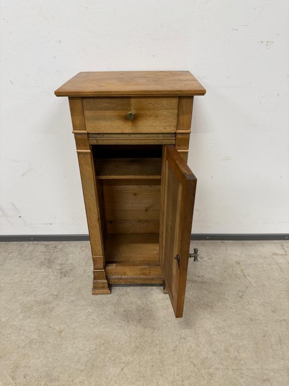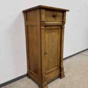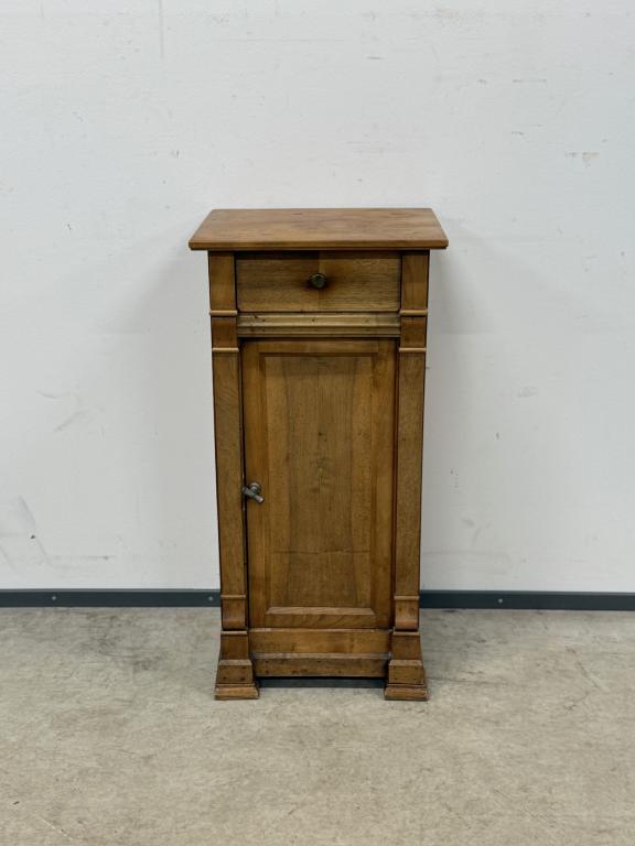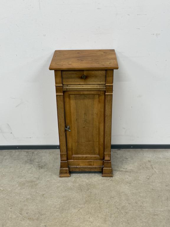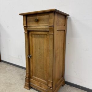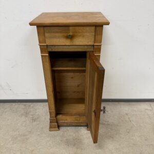 Kitsas, kuid üsna kõrge sajandivanune puidust öökapp. Olemas väike sahtel ning ukse taga riiul. Pealmisel plaadil vasakus tagumises nurgas kuivamispragu. Leidub kulumis- ja kasutusjälgi.