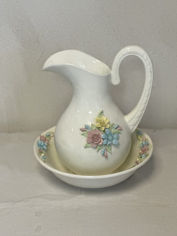 Kena portselanist lilledega pesukomplekt. NB! Lillel paar õielehte murdunud.