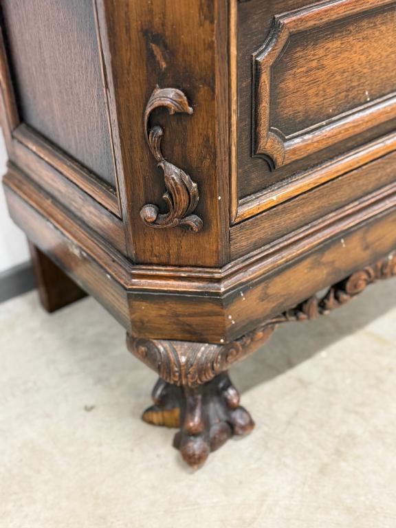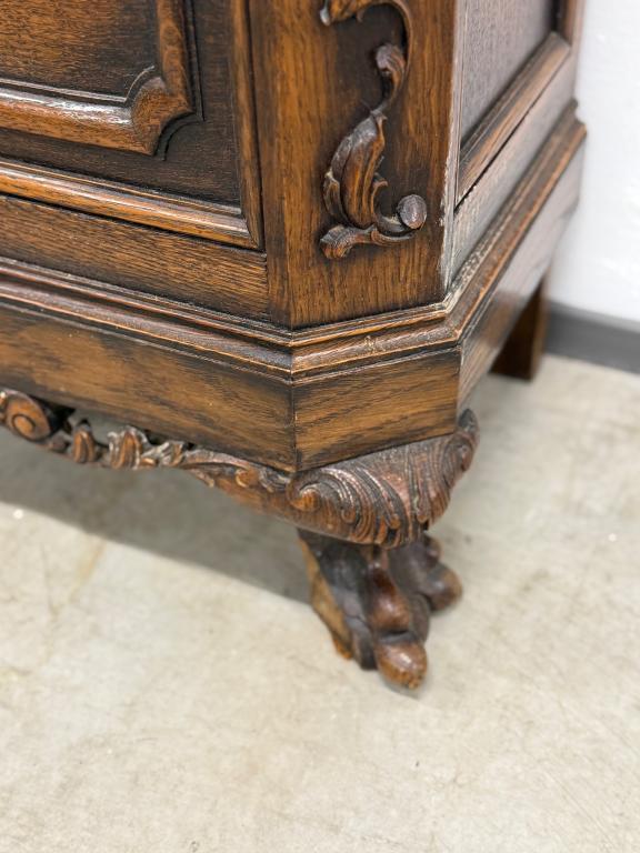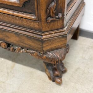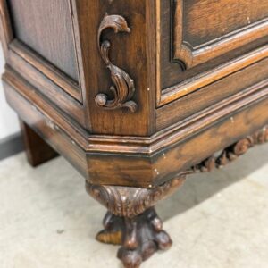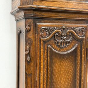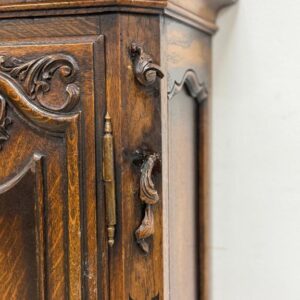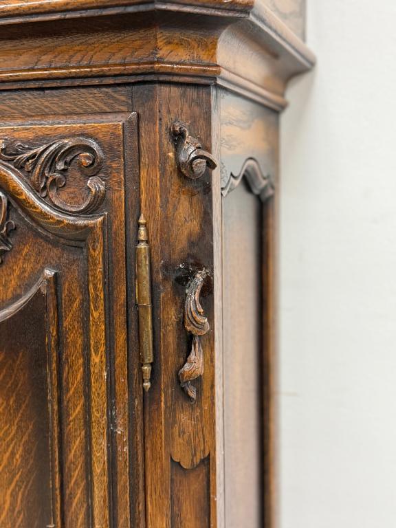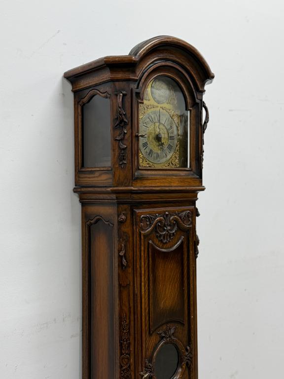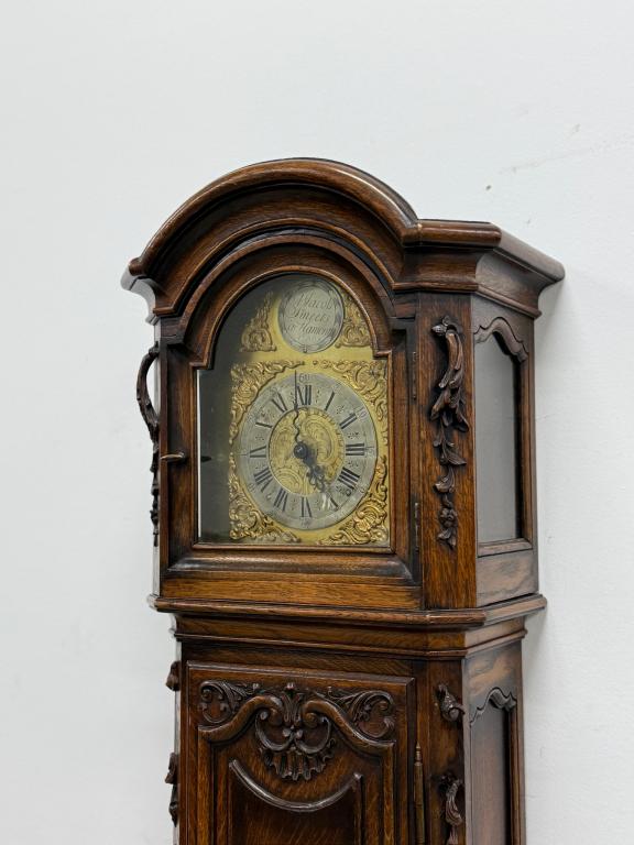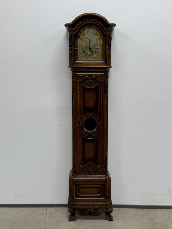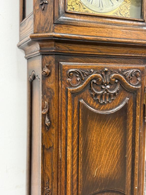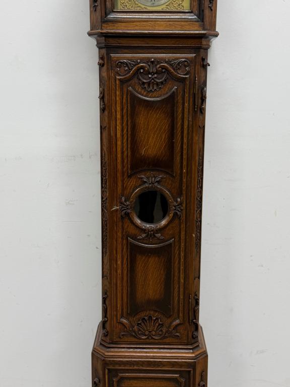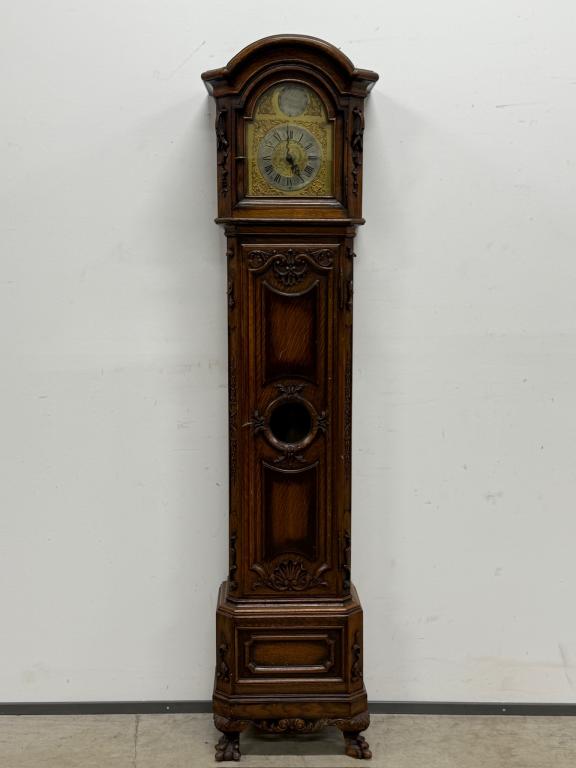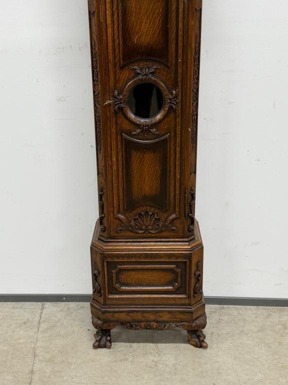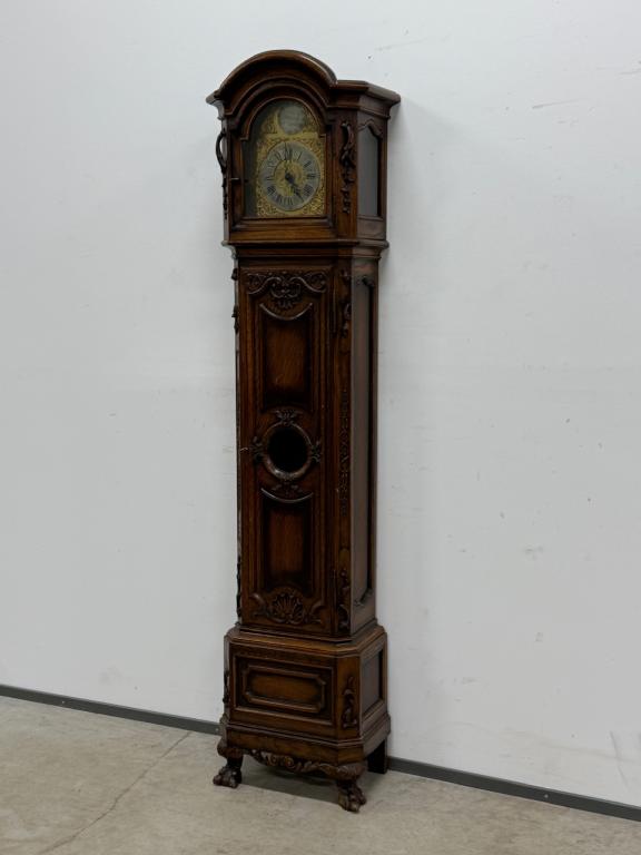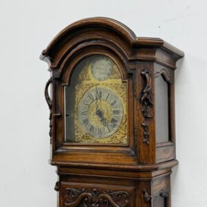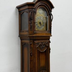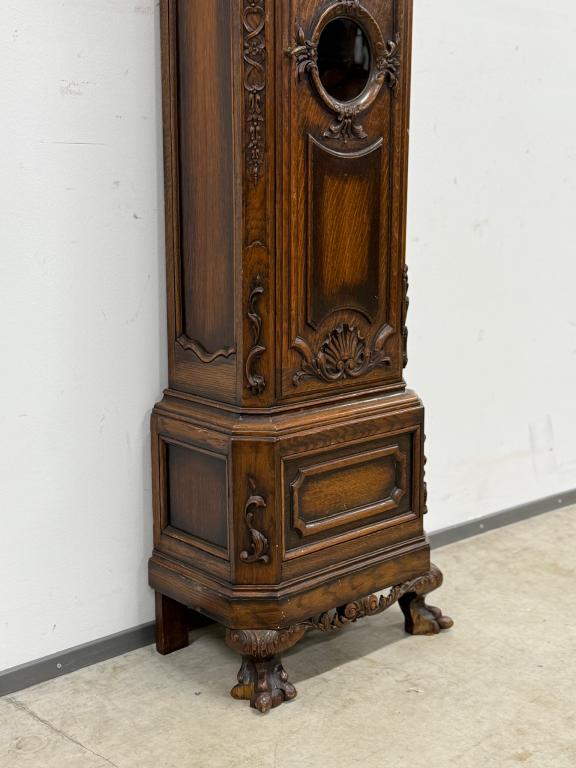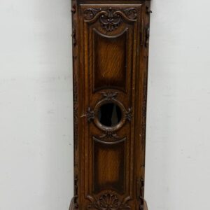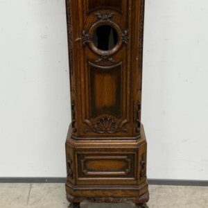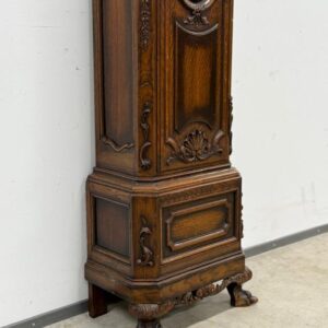Kauni nikerdatud raamiga kellakapp. Mehhanism töökorras. Puudu mõned puidust nikerdused raamilt ning ka mõlemalt esimeselt jalalt tükk ära – vt pilte. Transport kahes osas.