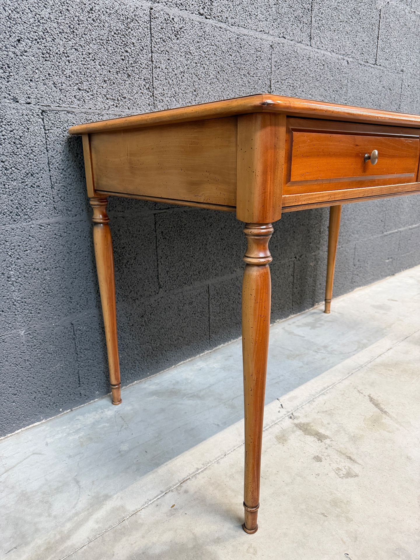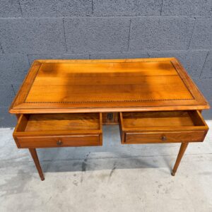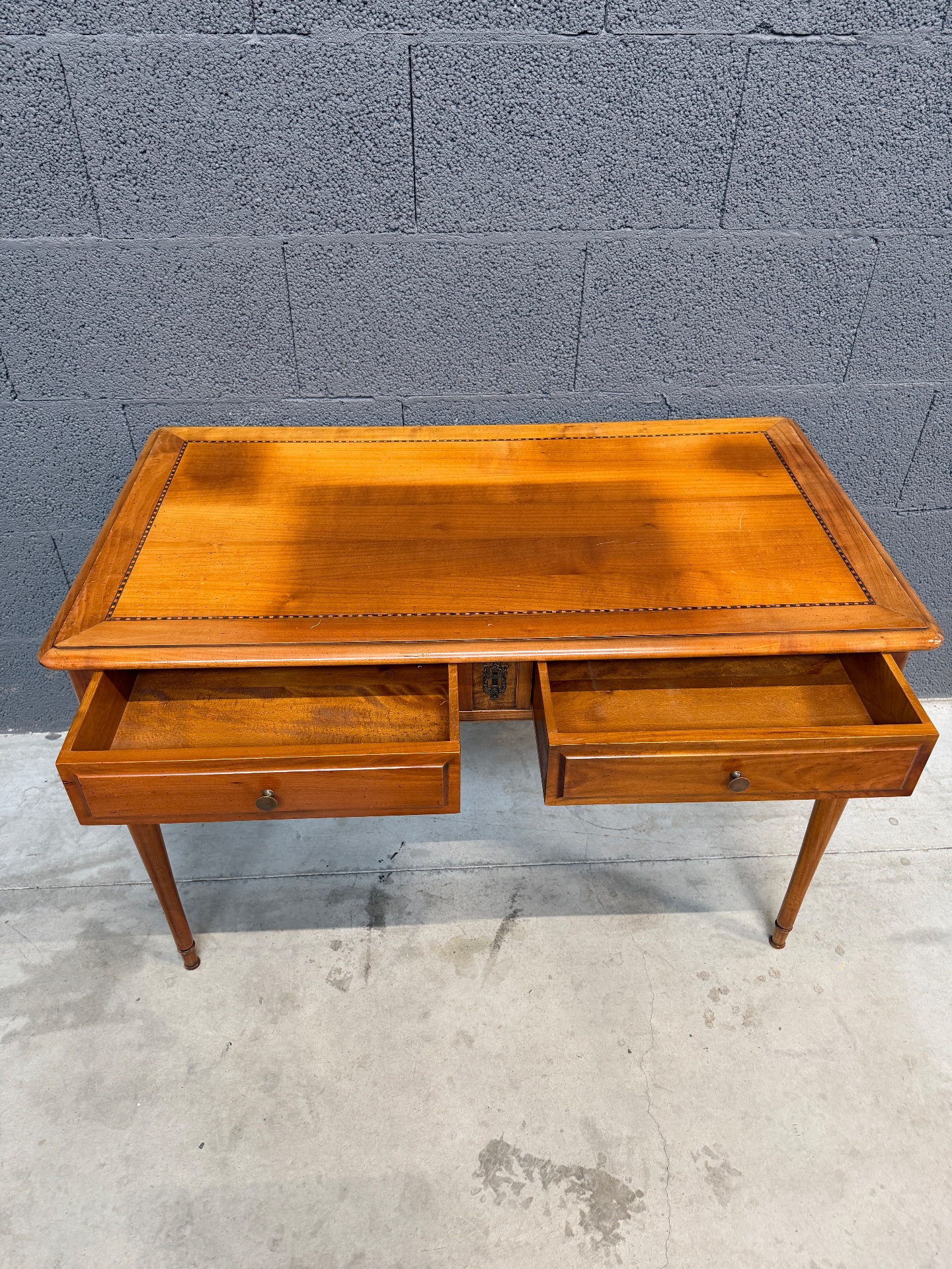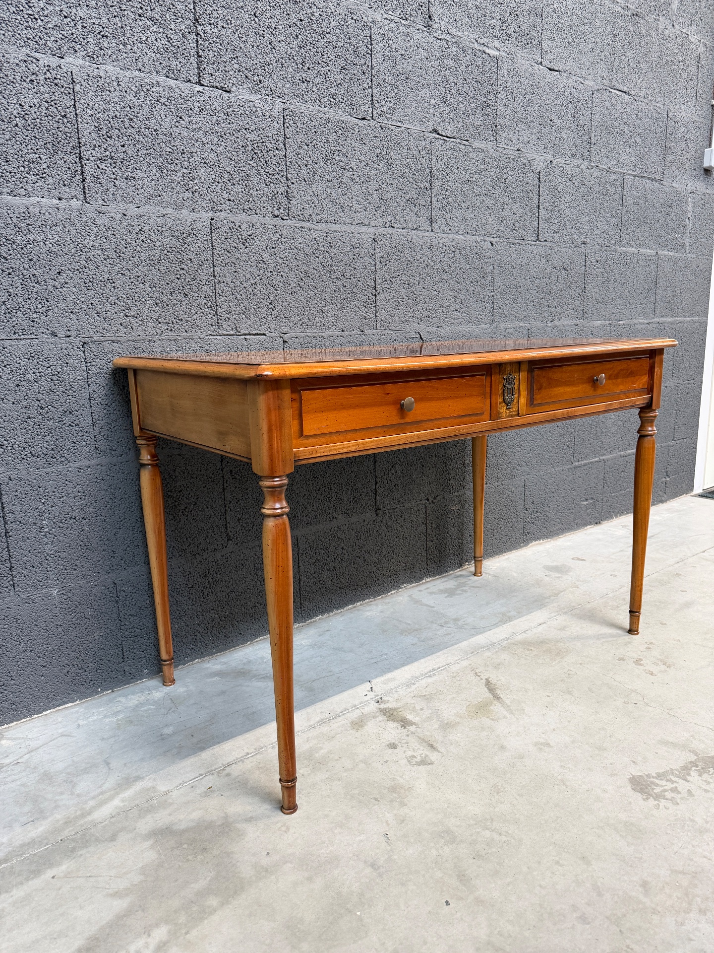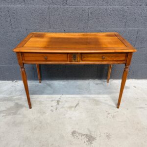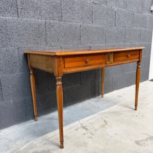 Hea suurusega kahe sahtliga kirjutuslaud. Pleekimisjäljed vasakul küljel ning pealmisel plaadil. Ilus ja vaadeldav ka tagant.