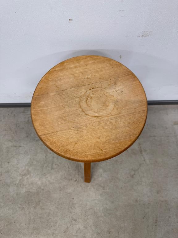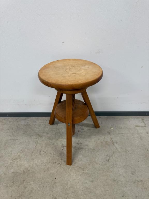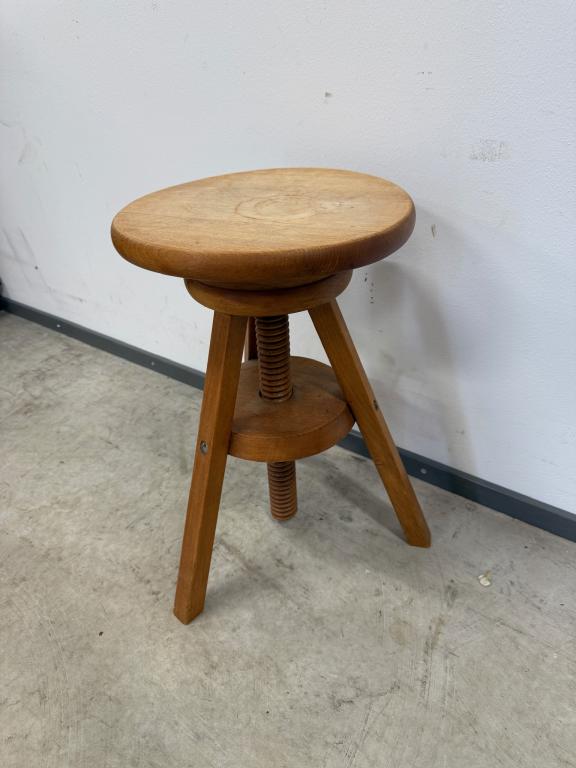 Reguleeritava kõrgusega puidust tool. Plaadil kasutusjäljed, kuid konstruktsioon tugev ja stabiilne.