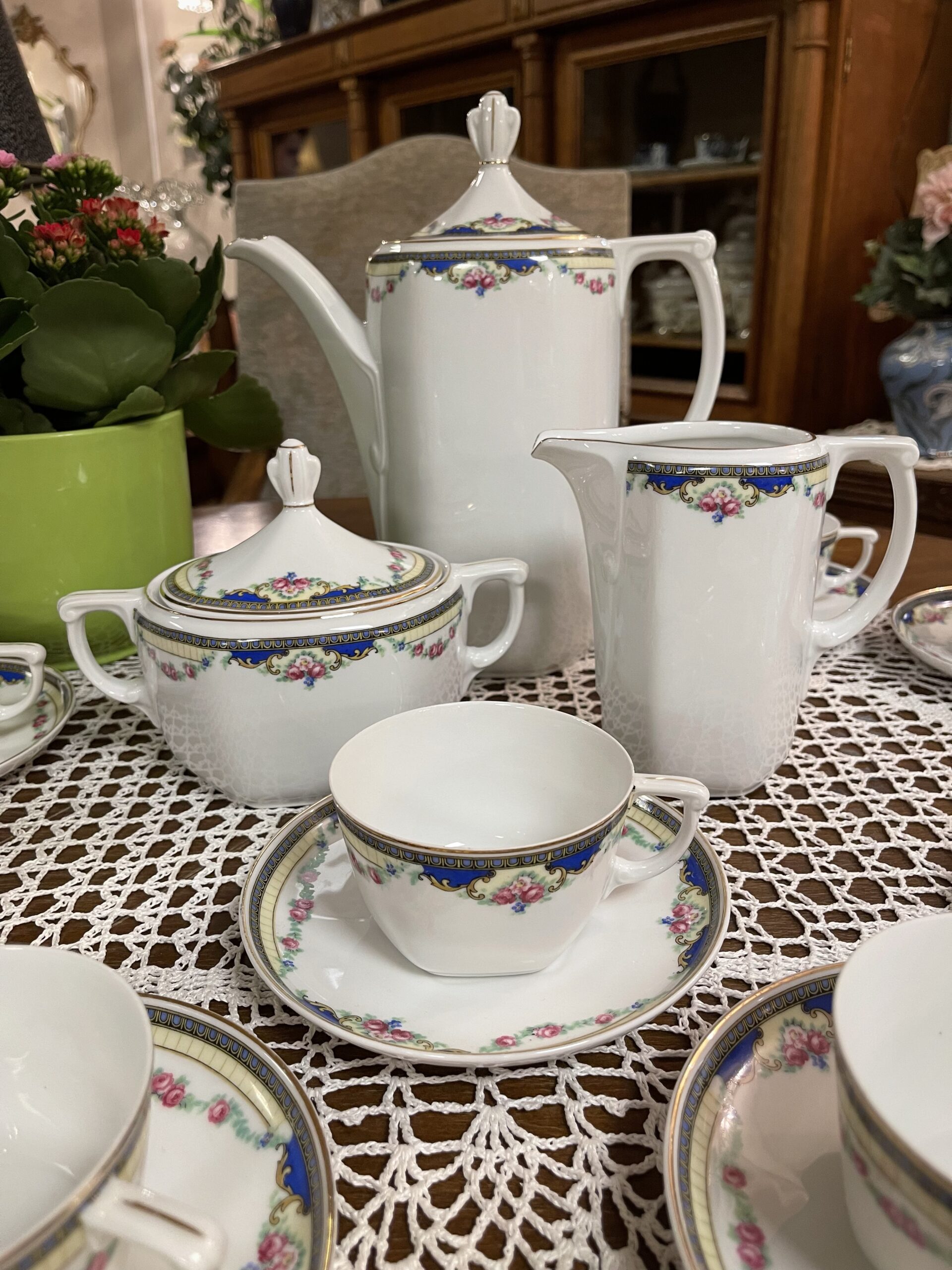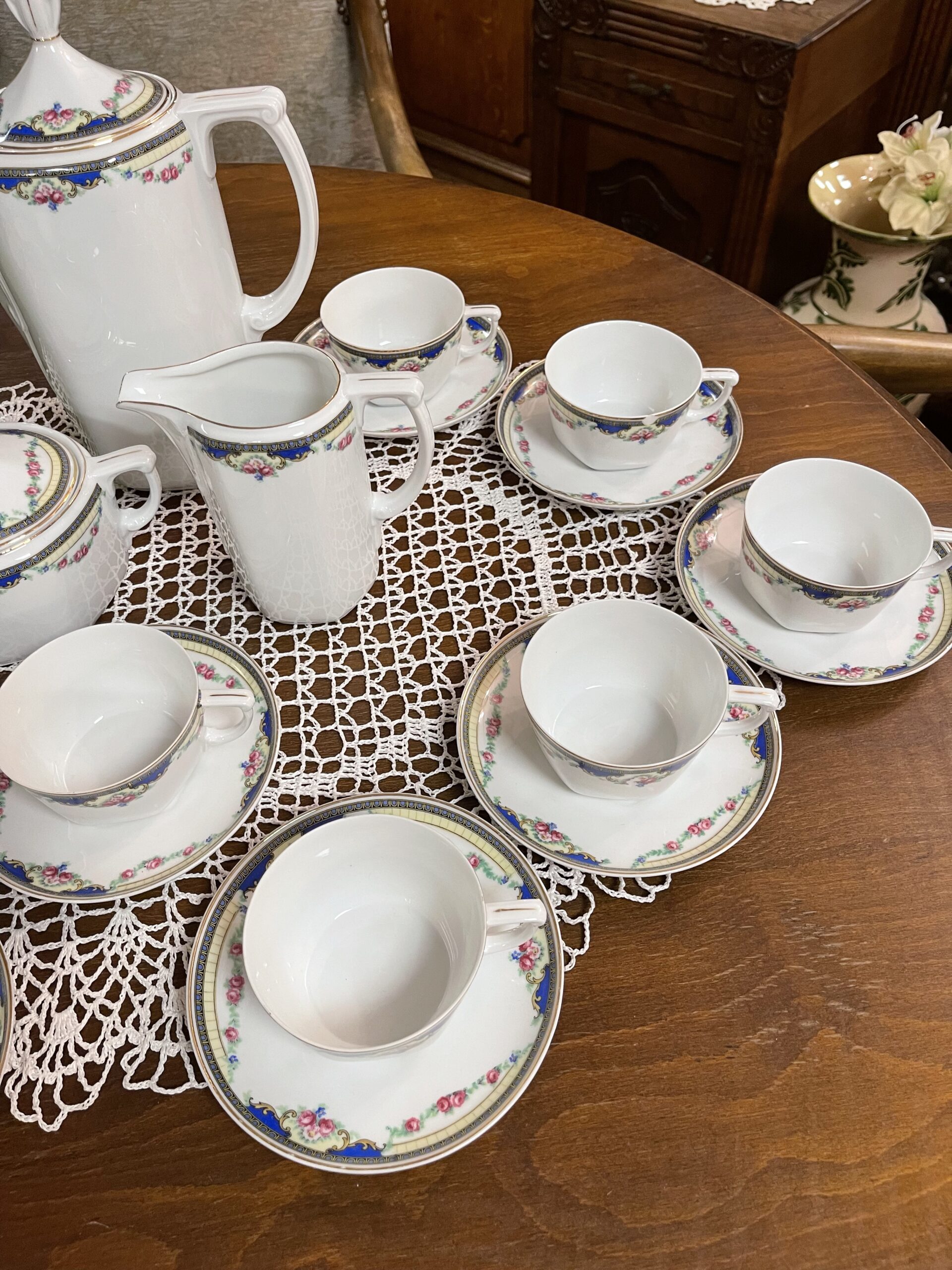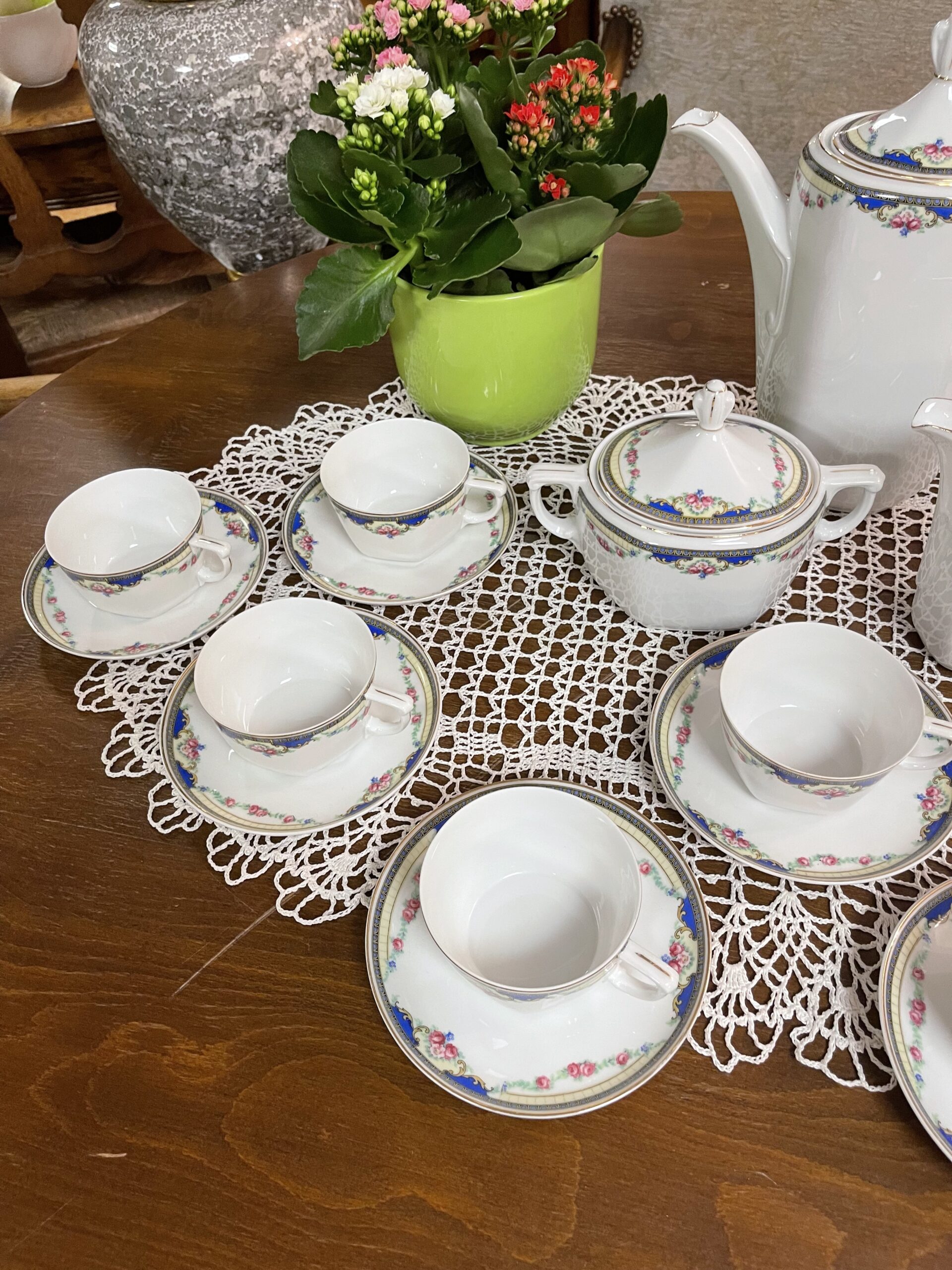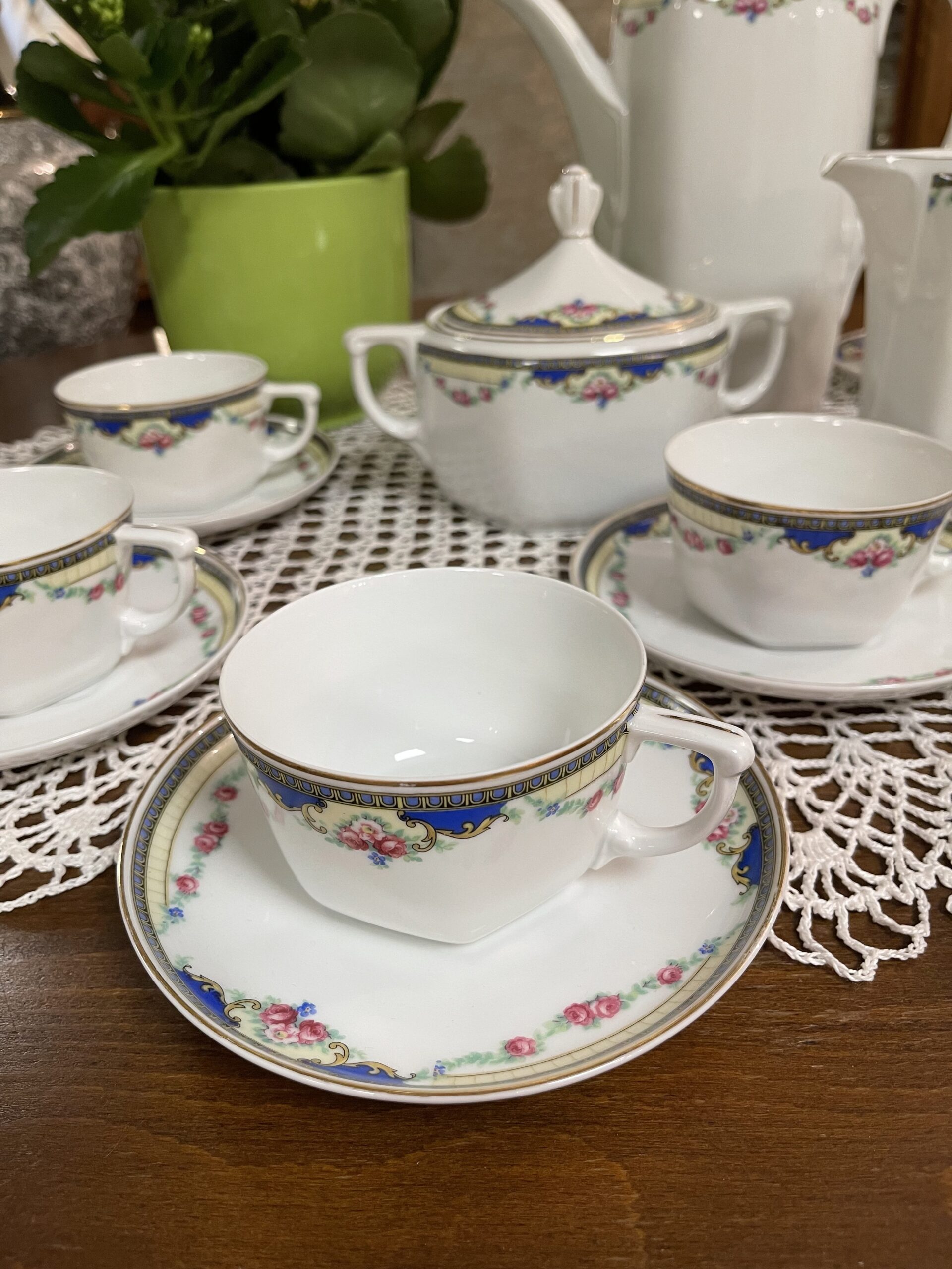 Tšehhi portselanist kohviserviis 10-le. Kahel tassil pisike killuviga.