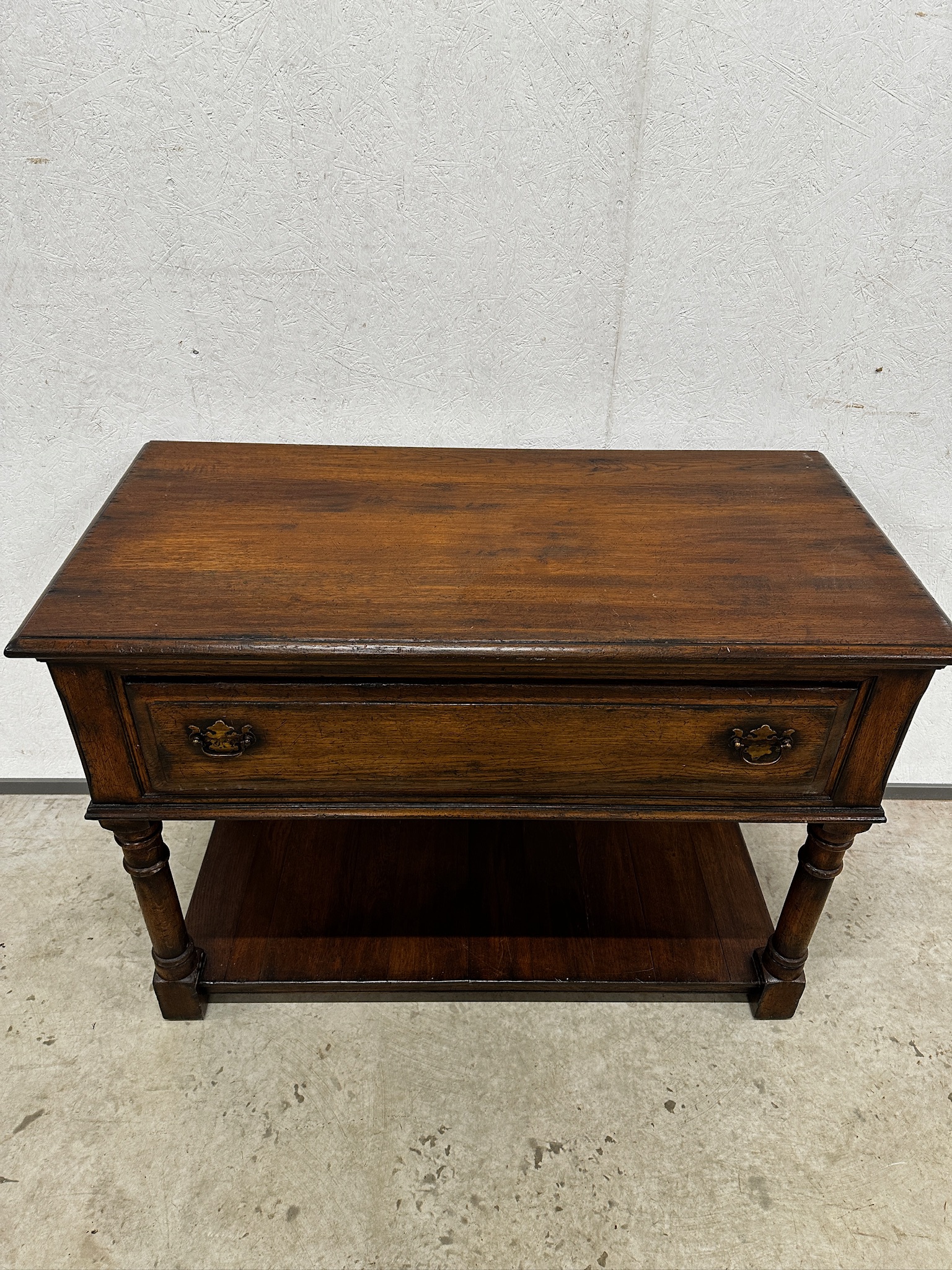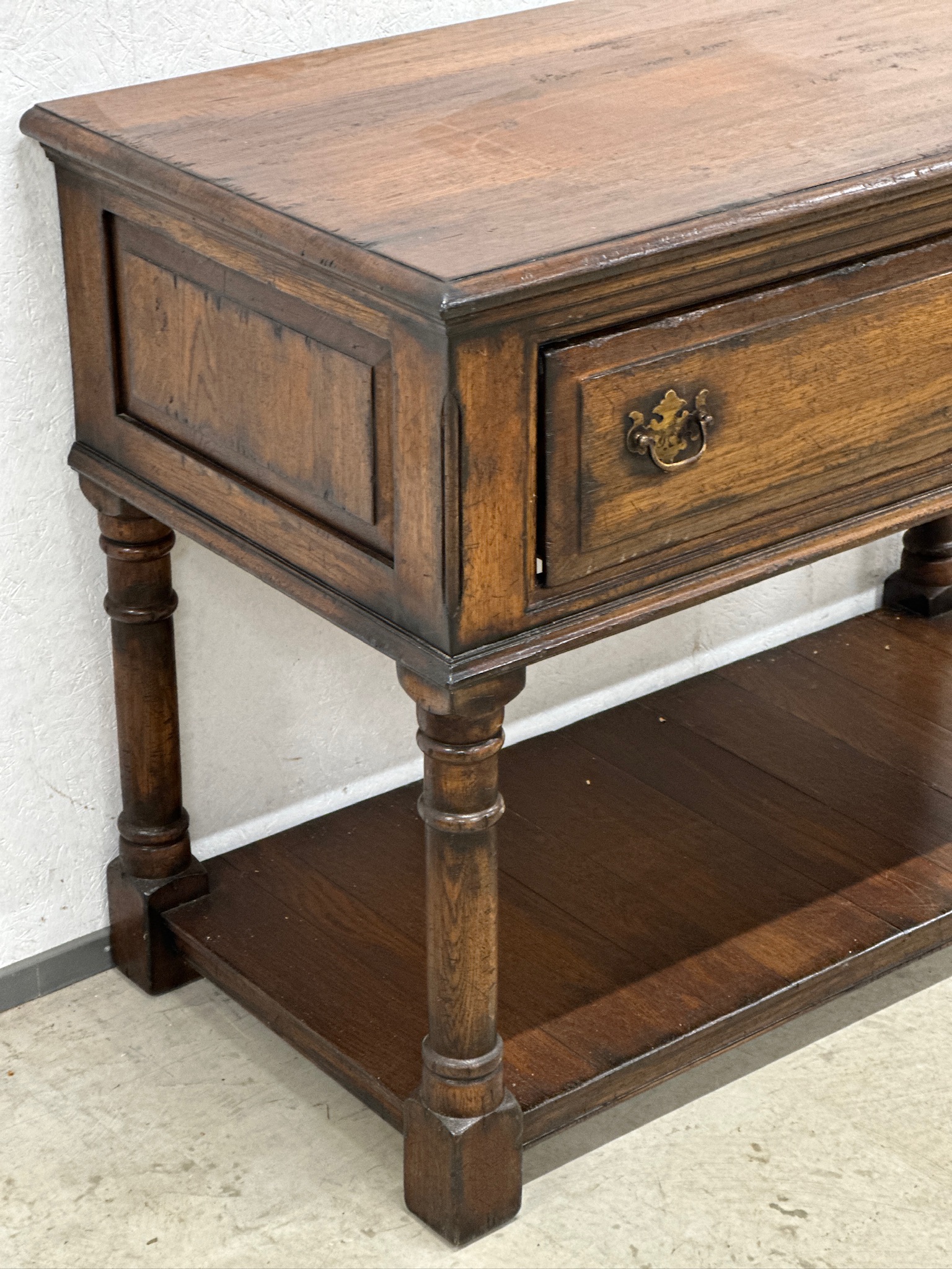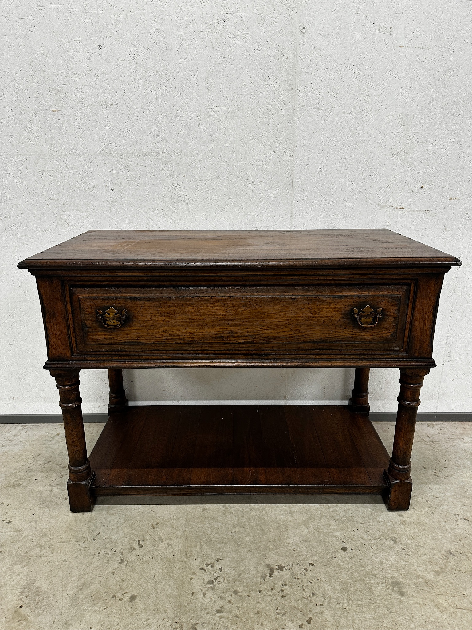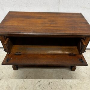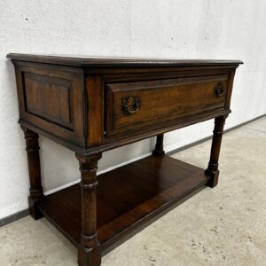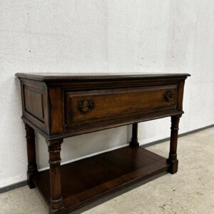 Massiivsest tammest sahtliga konsoollaud. Sahtlipaneel avaneb soovi korral ka luugina. Väga heas seisukorras.