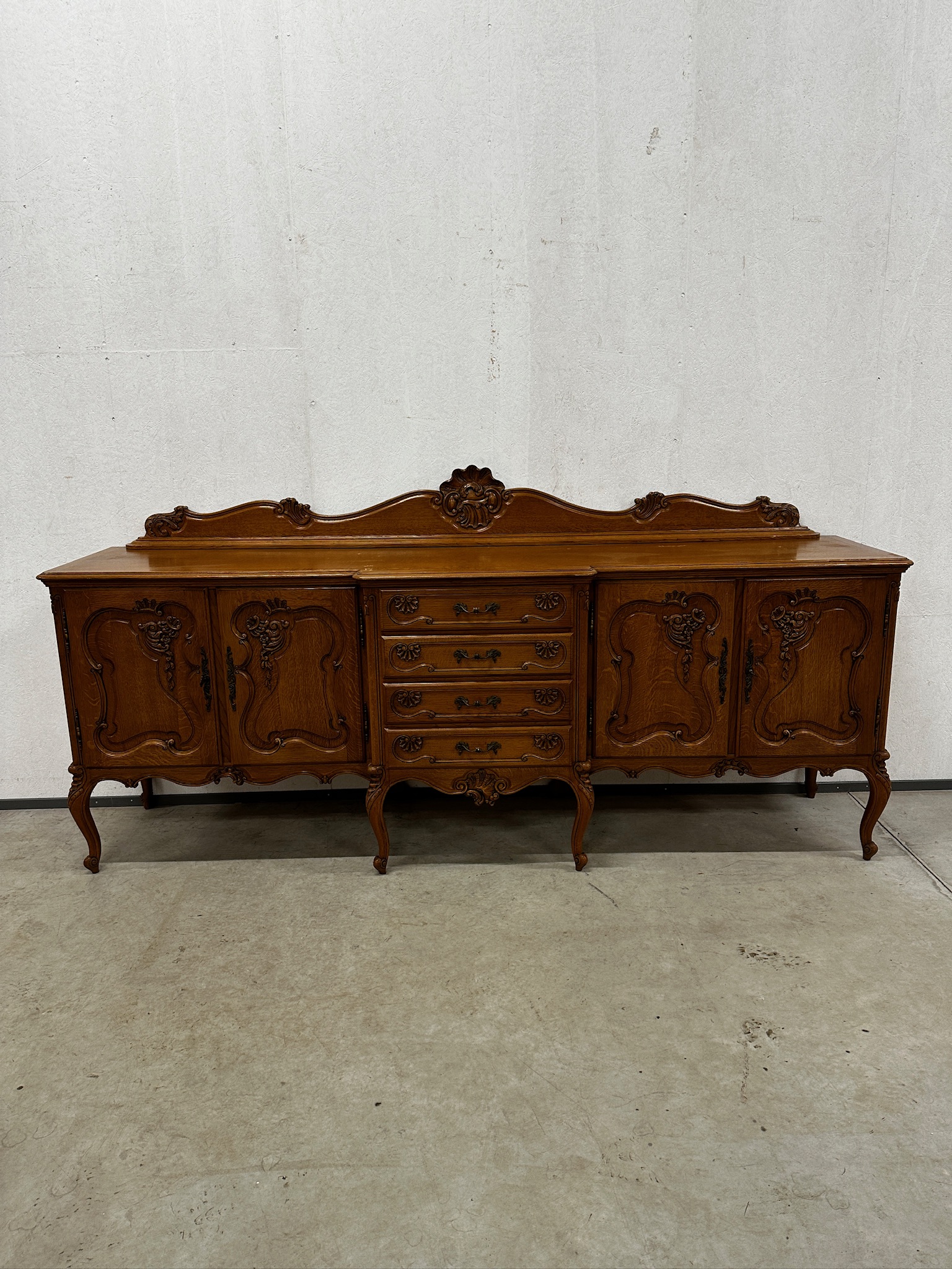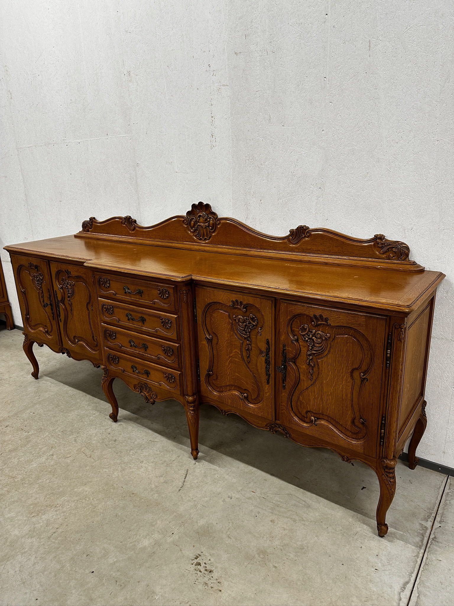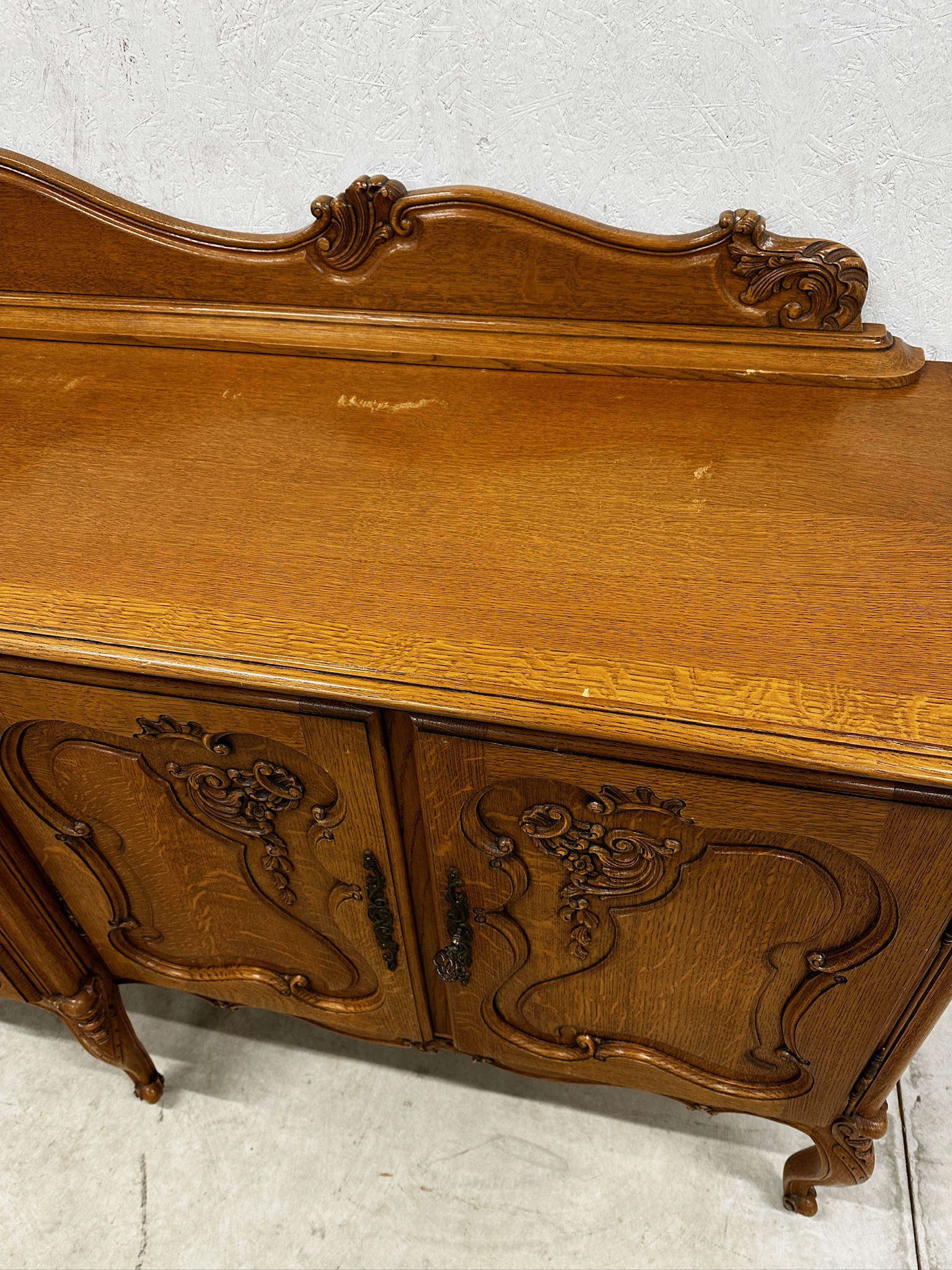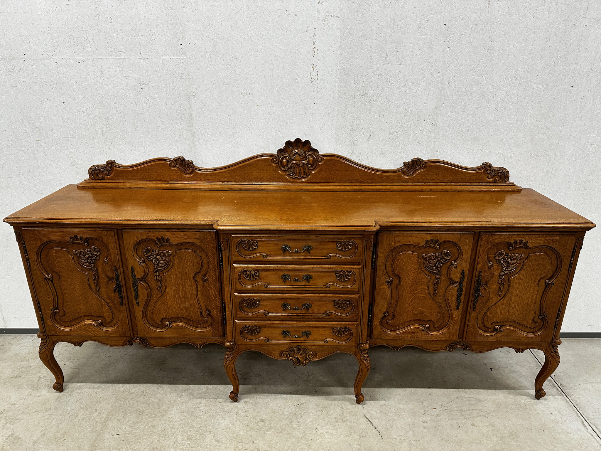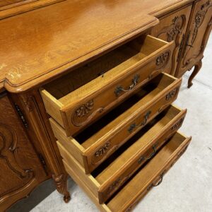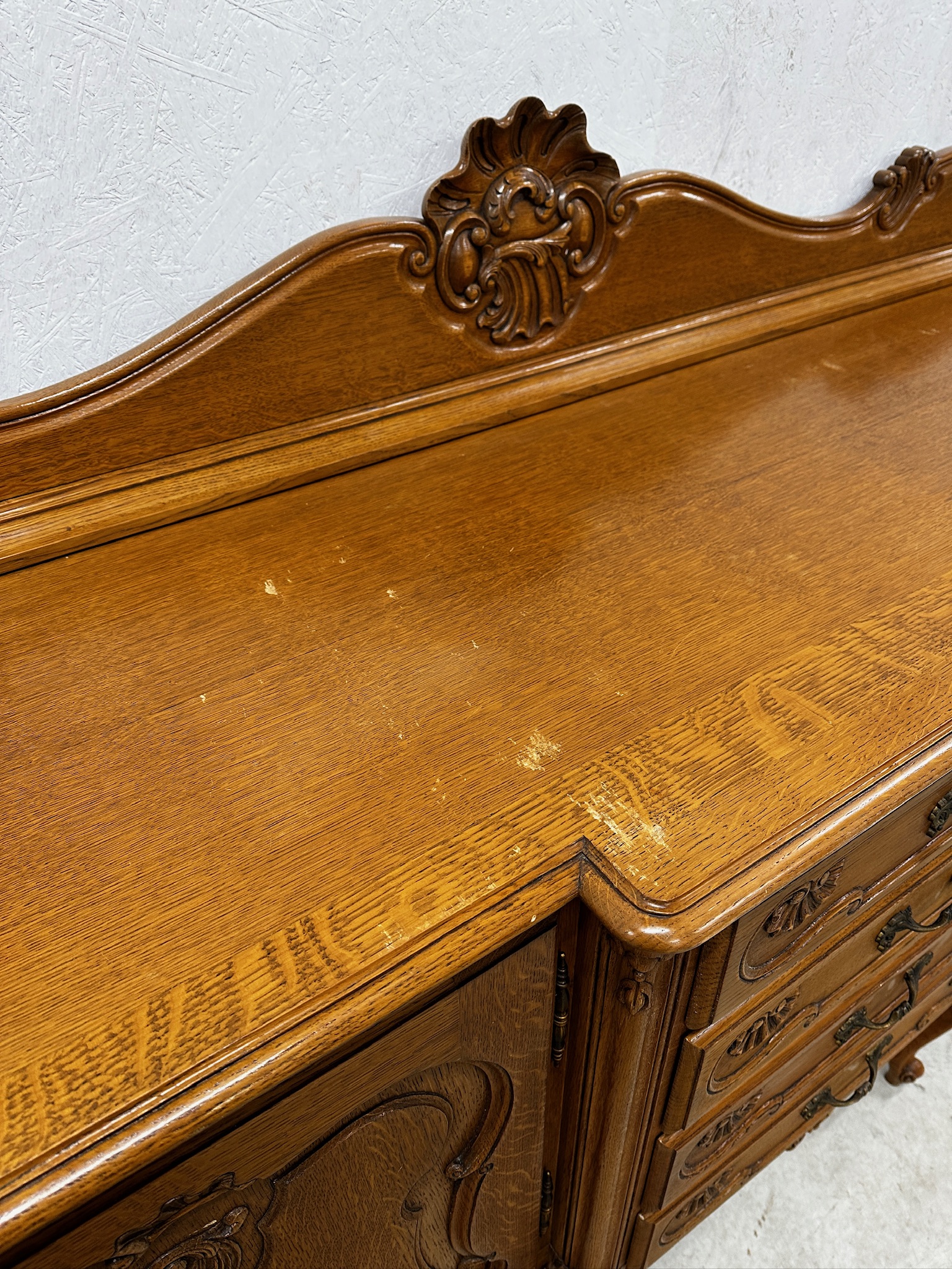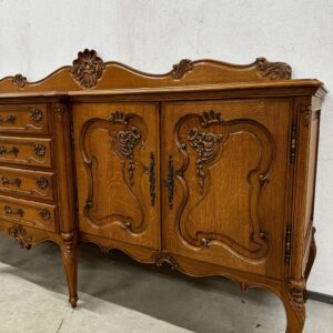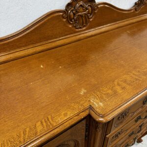 Uhkete nikerdustega suur kummut/kapp. Pealmisel plaadil transpordis tekkinud kriipsud/kraapsud. Seest puhas. NB! Seda kummutit on võimalik transportida osadena! Lukud töökorras, võtmed olemas. Kummuti kõrgus 95 cm, iluliist 27 cm.