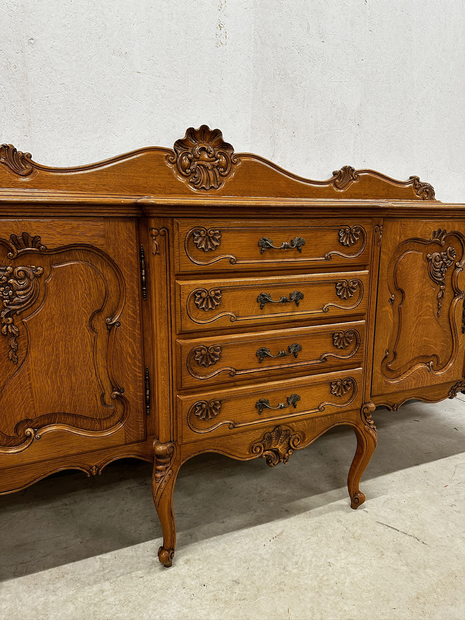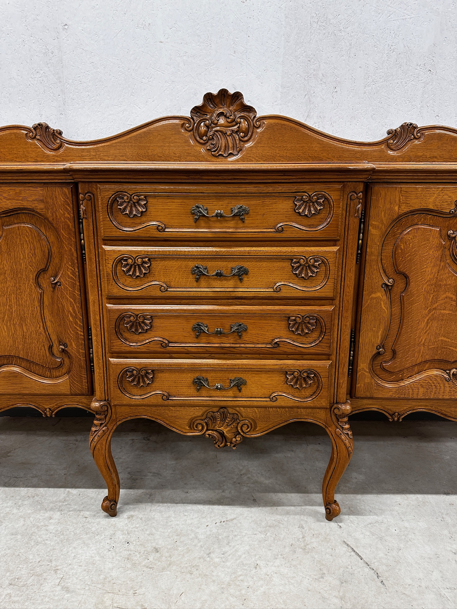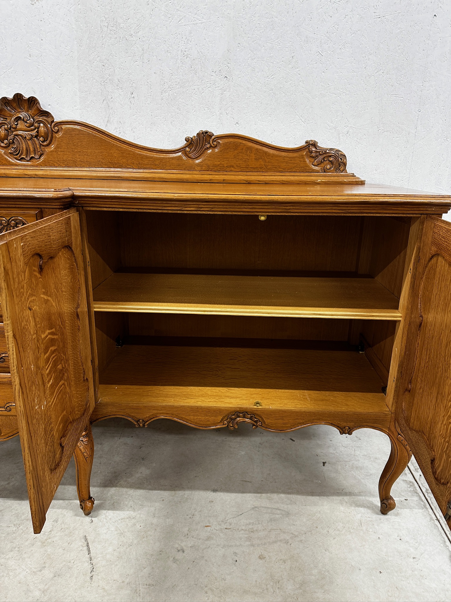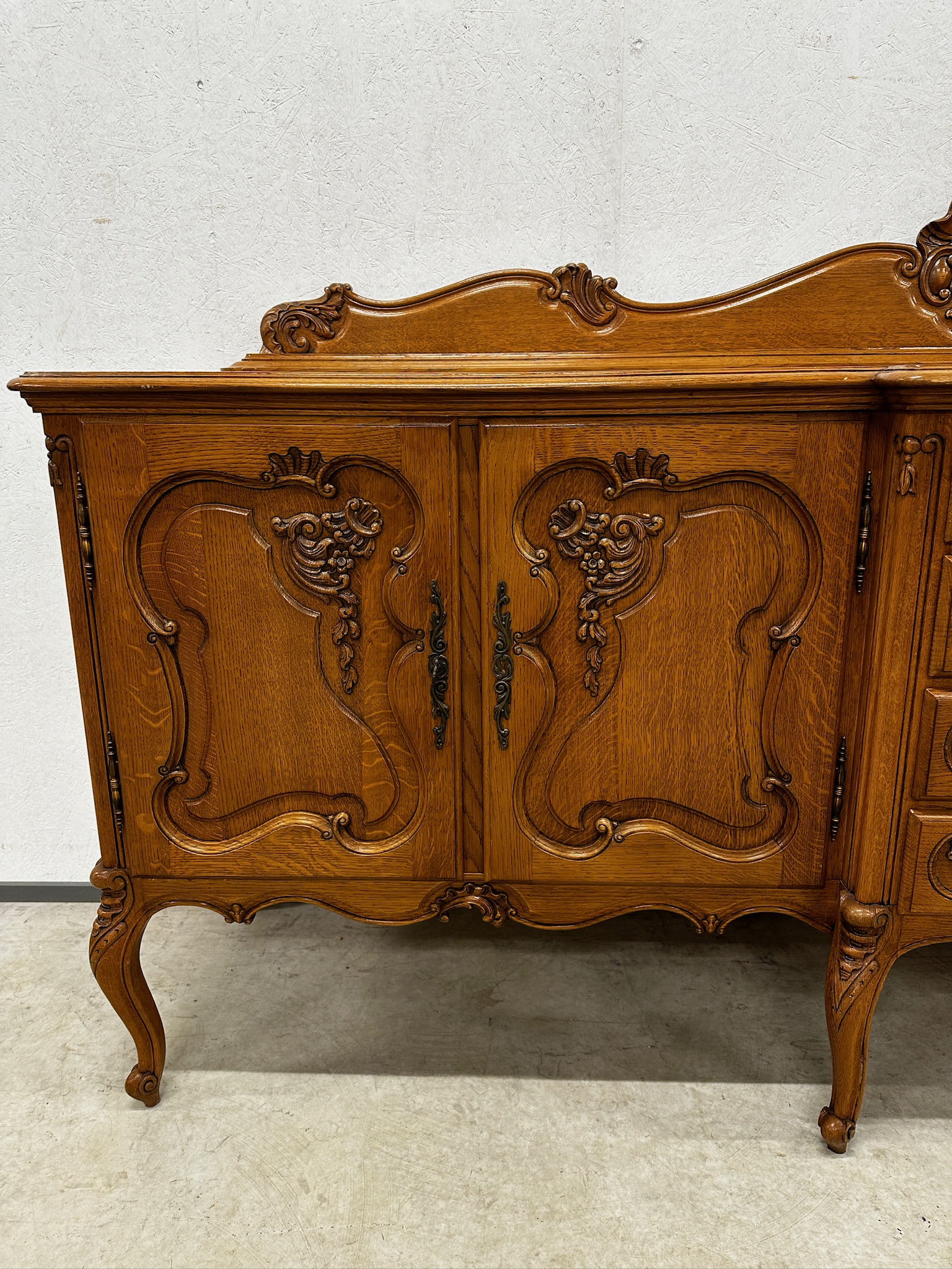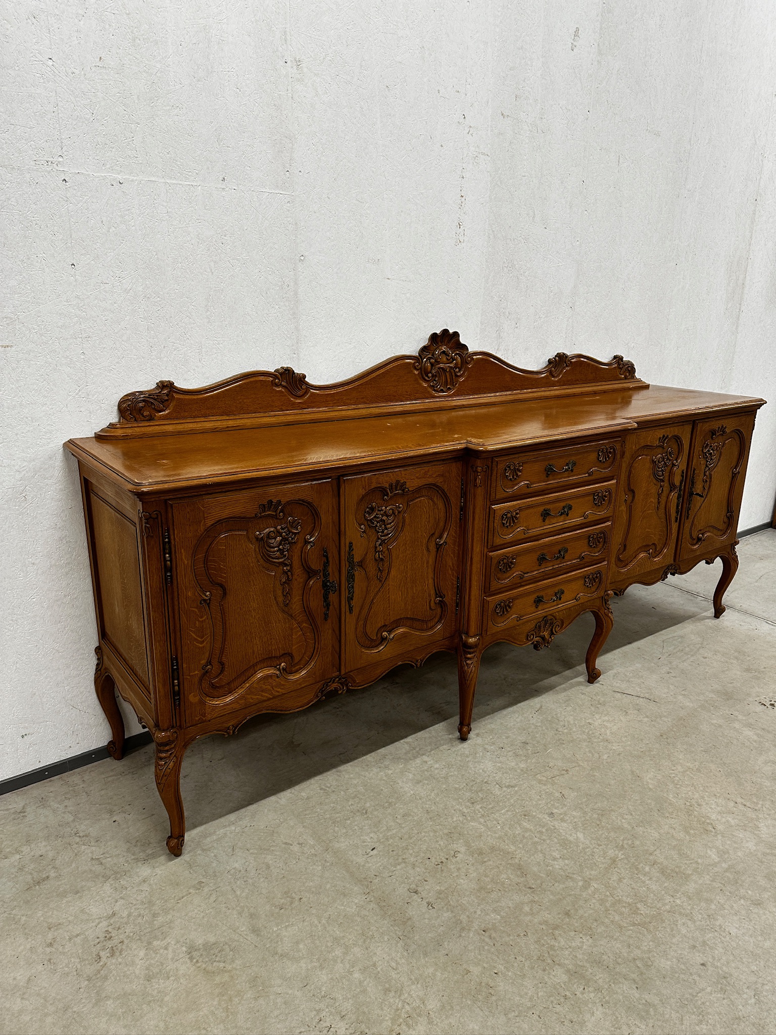 Uhkete nikerdustega suur kummut/kapp. Pealmisel plaadil transpordis tekkinud kriipsud/kraapsud. Seest puhas. NB! Seda kummutit on võimalik transportida osadena! Lukud töökorras, võtmed olemas. Kummuti kõrgus 95 cm, iluliist 27 cm.