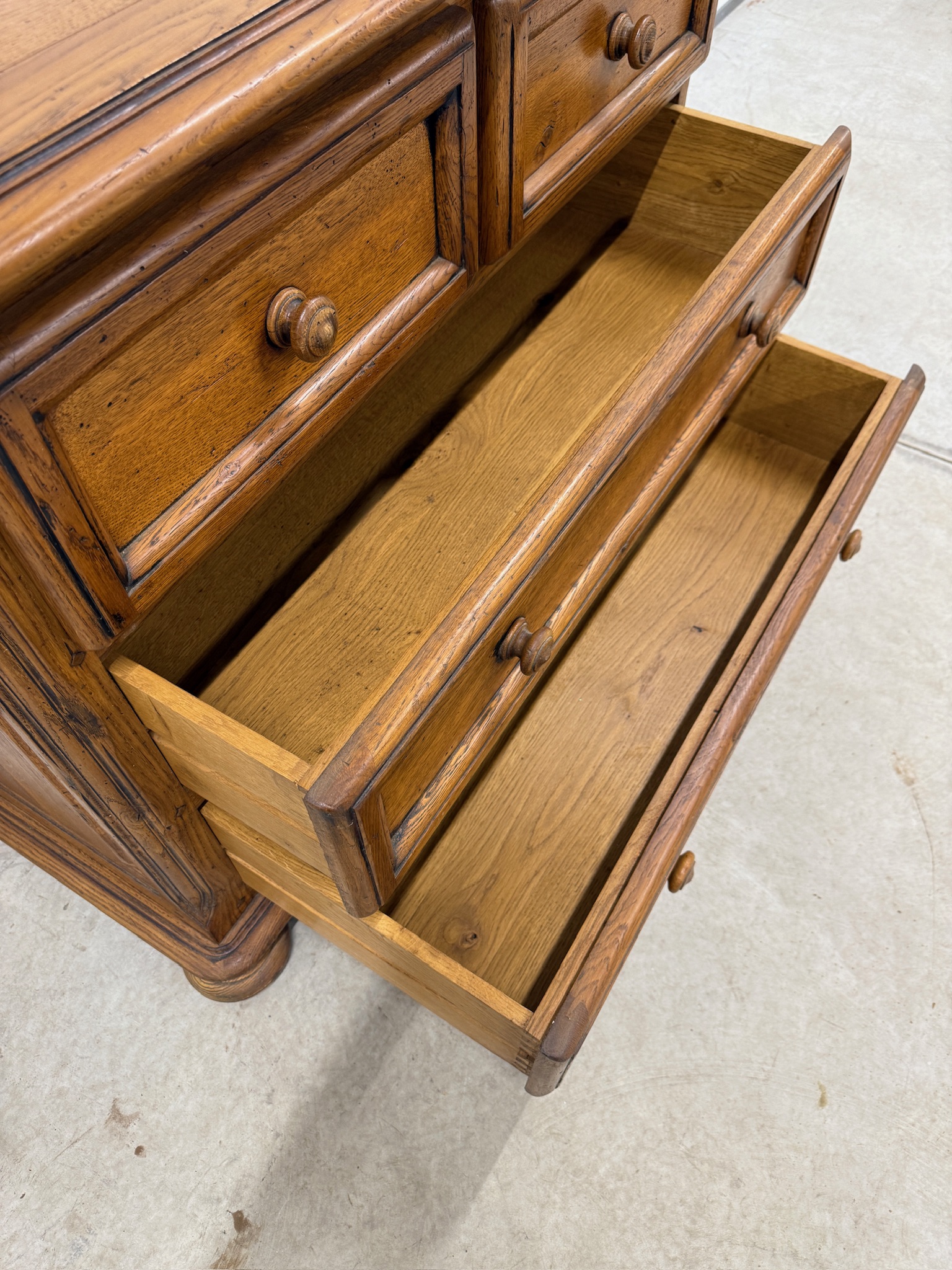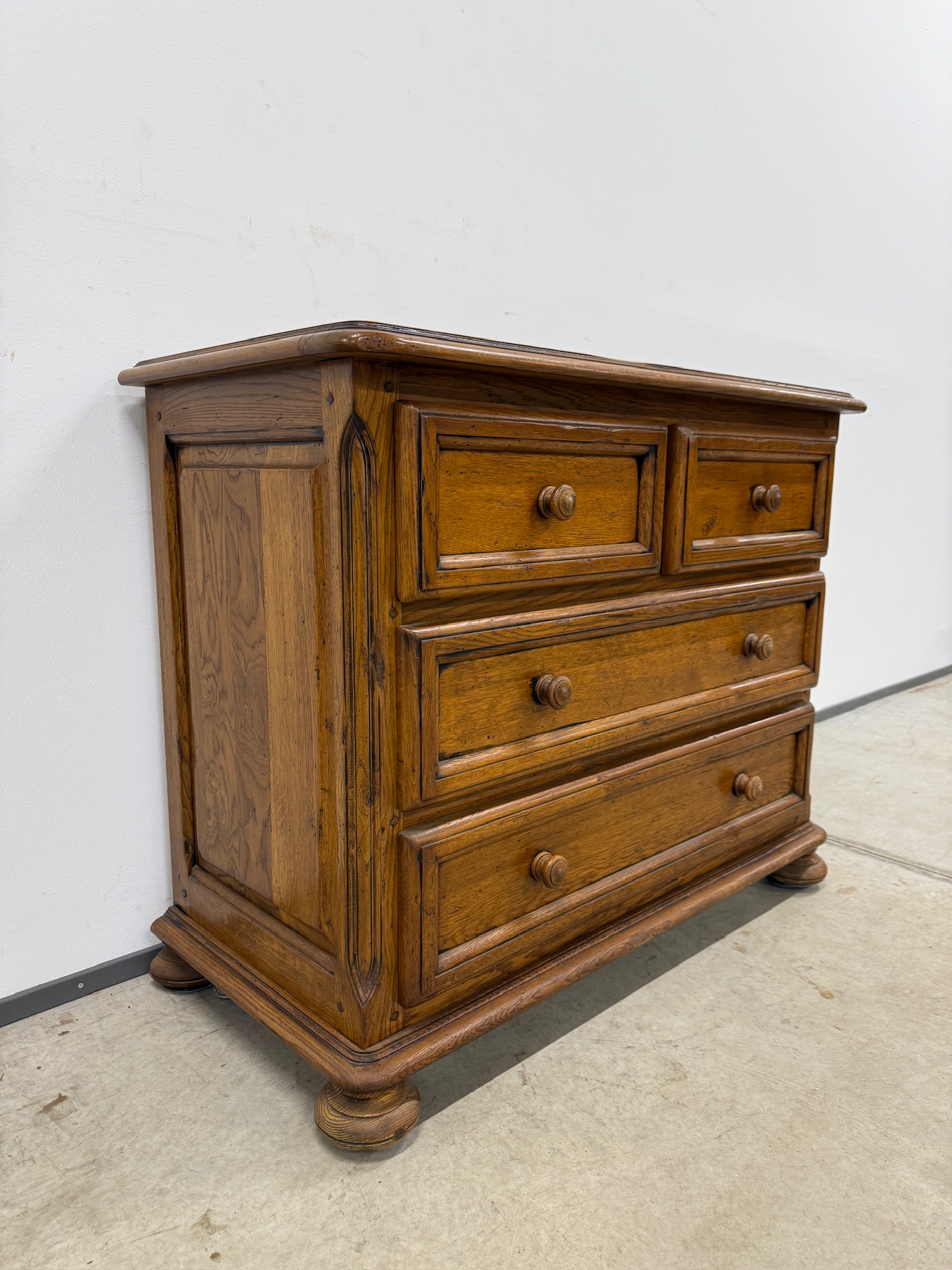 Suurepärases seisukorras üleni tammest sahtlitega kummut. Sahtid väga sügavad ja mahukad. Sahtlite kõrgus 16 cm!!!