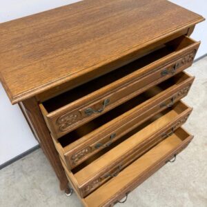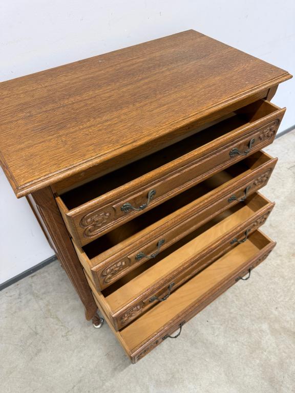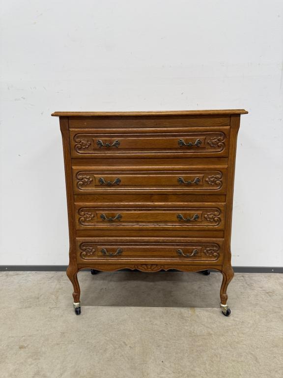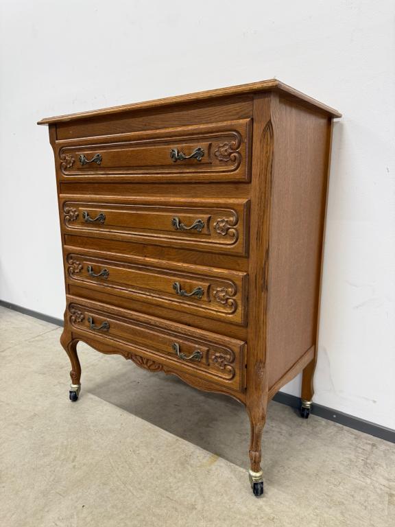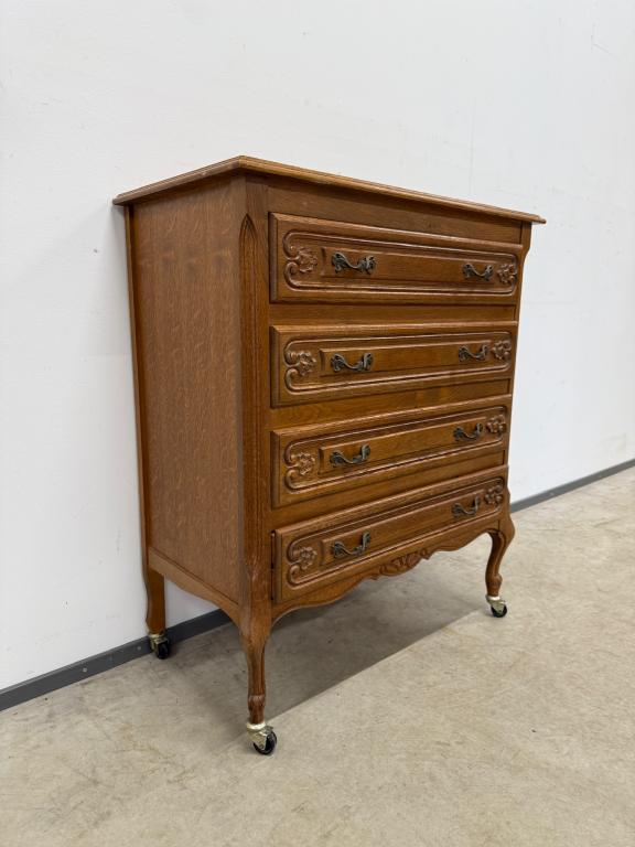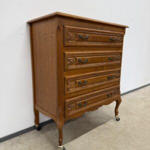 Nelja sahtliga tammest raamiga kummut. Kummut on ratastel, kerge liigutada.