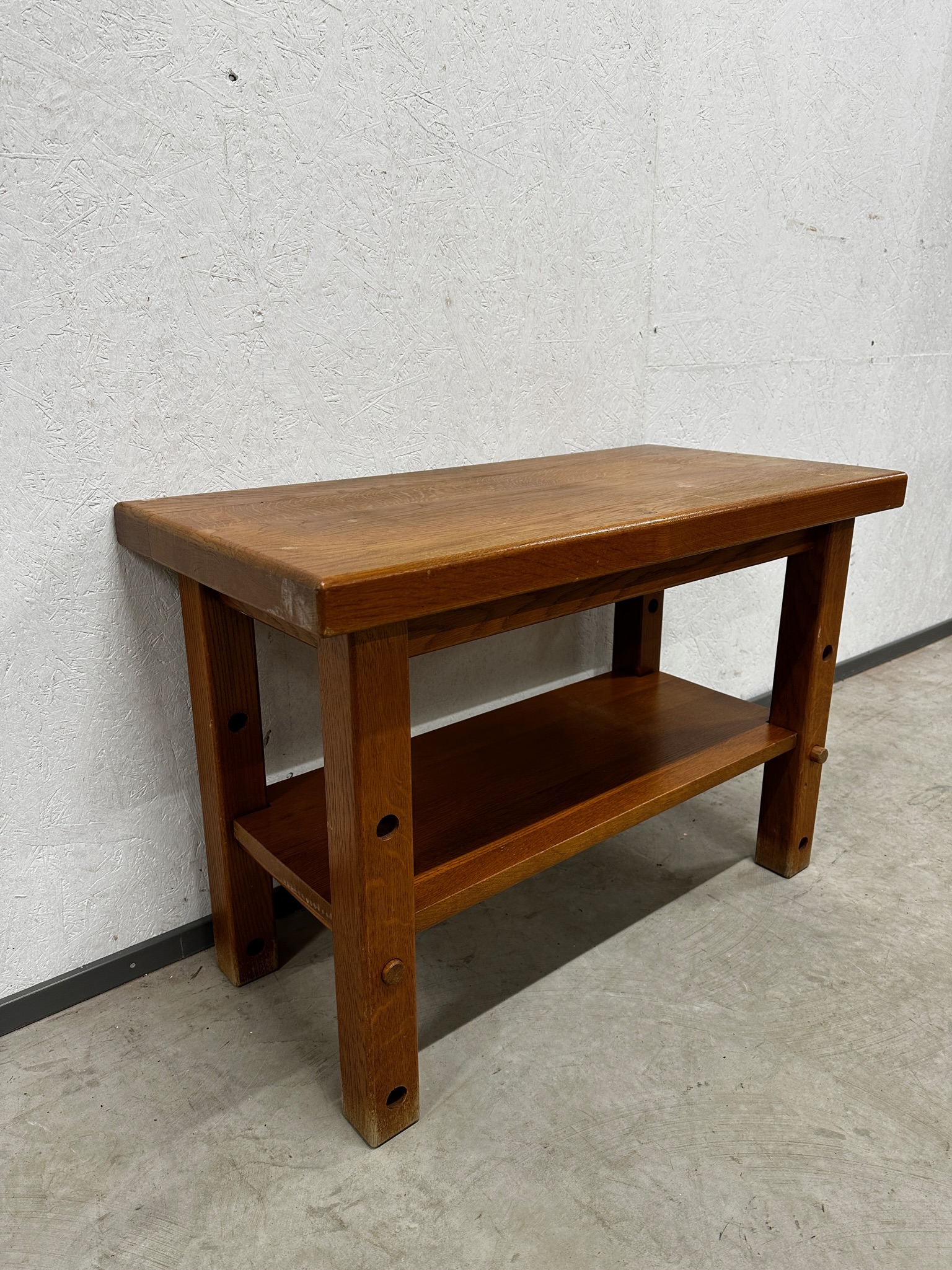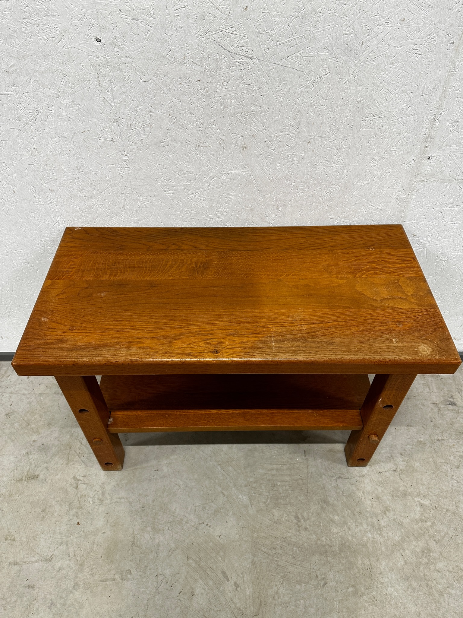 Massiivsest tammest väike laud/riiul. Alumise plaadi kõrgus reguleeritav. Leidub väiksemaid kulumis- ja kasutusjälgi, kuid üldmulje väga hea.