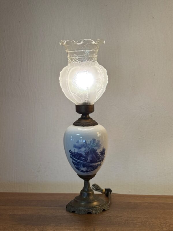 Portselanist jalaga tuuliku motiiviga laualamp. Olemas kaks ühesugust.