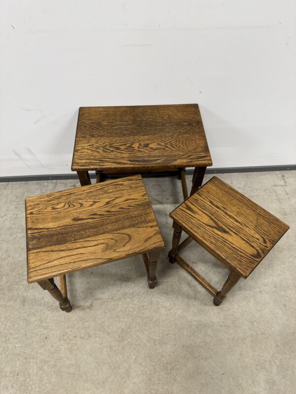 Kolm väikest tammest lauda. Soliidne ning heas seisukorras komplekt.