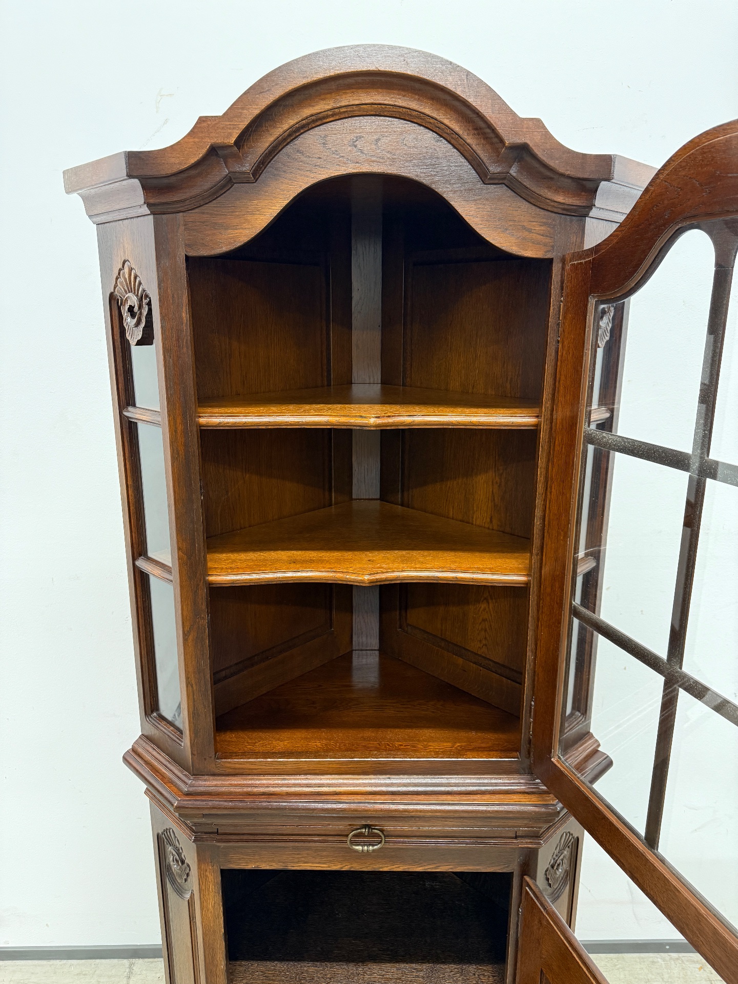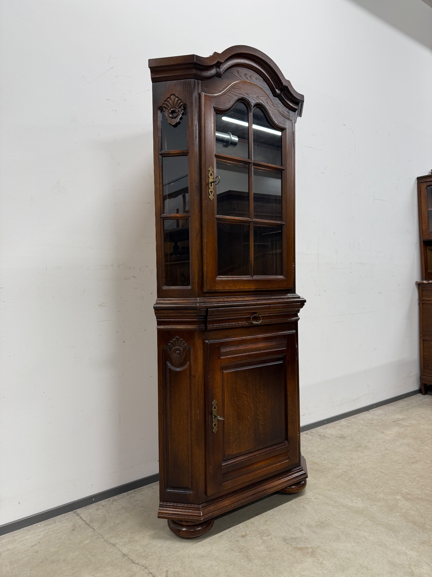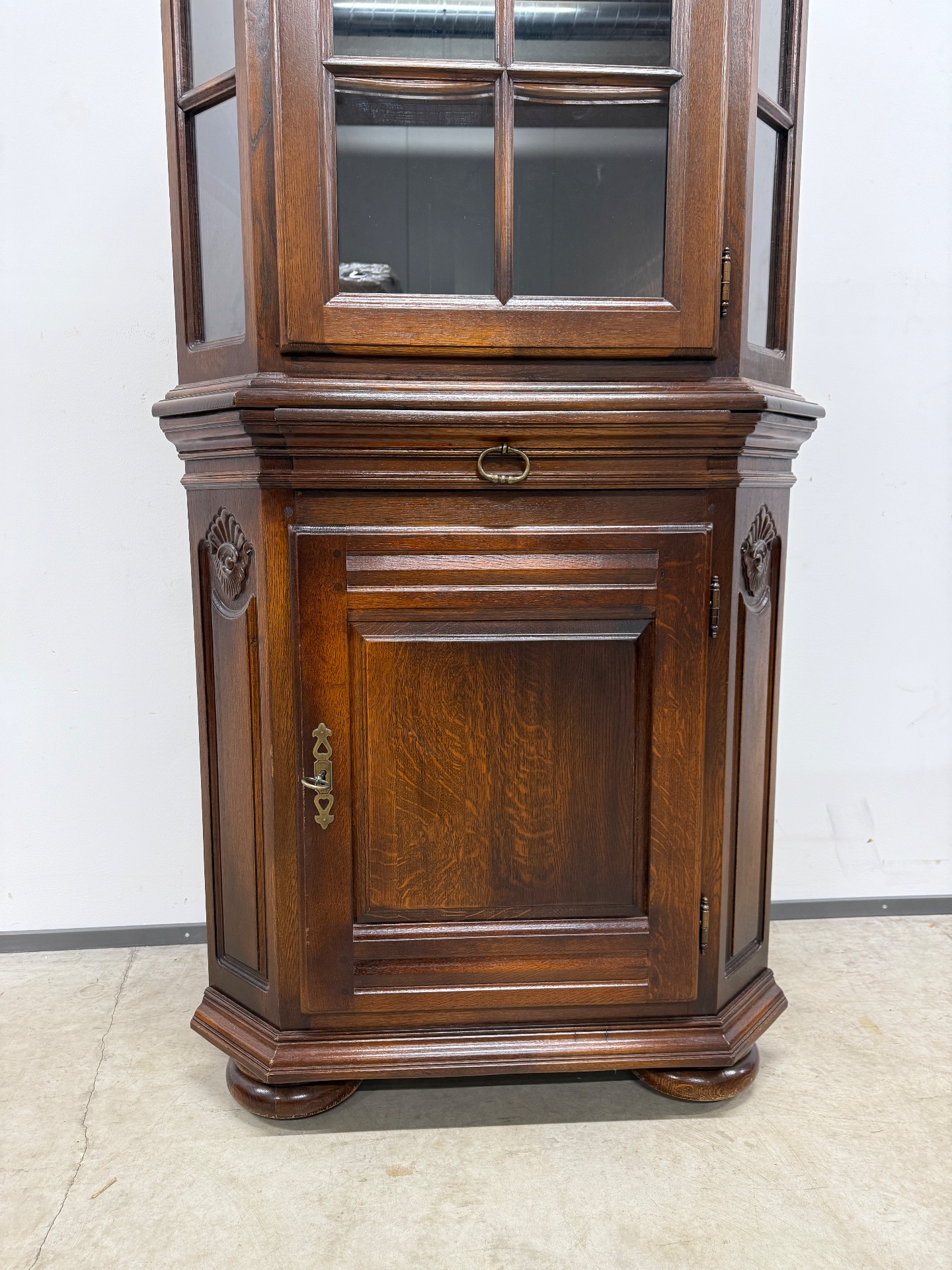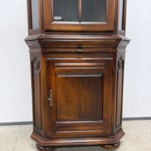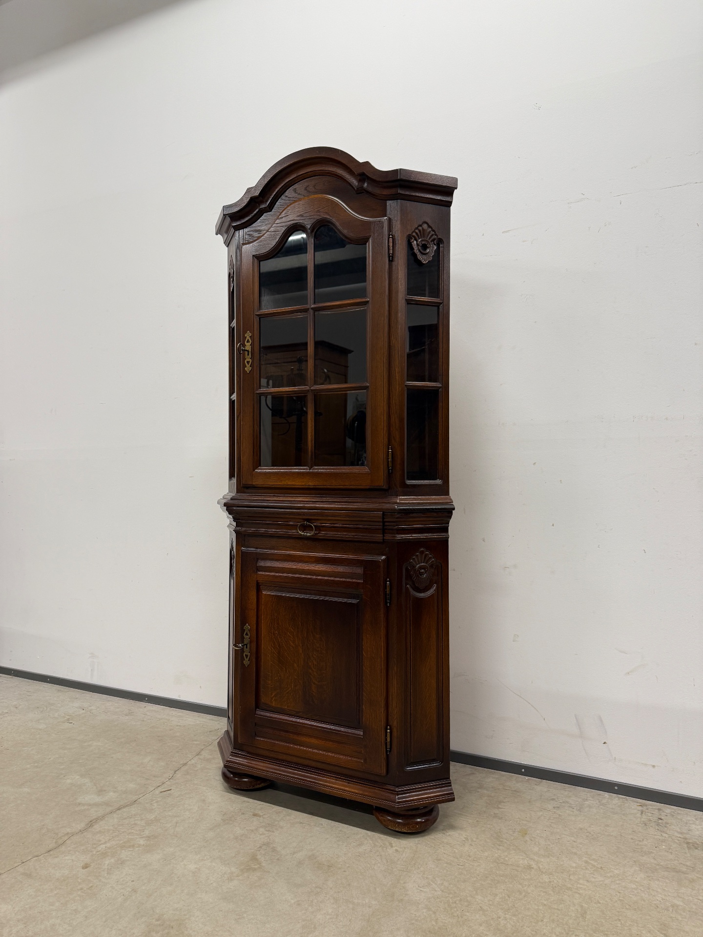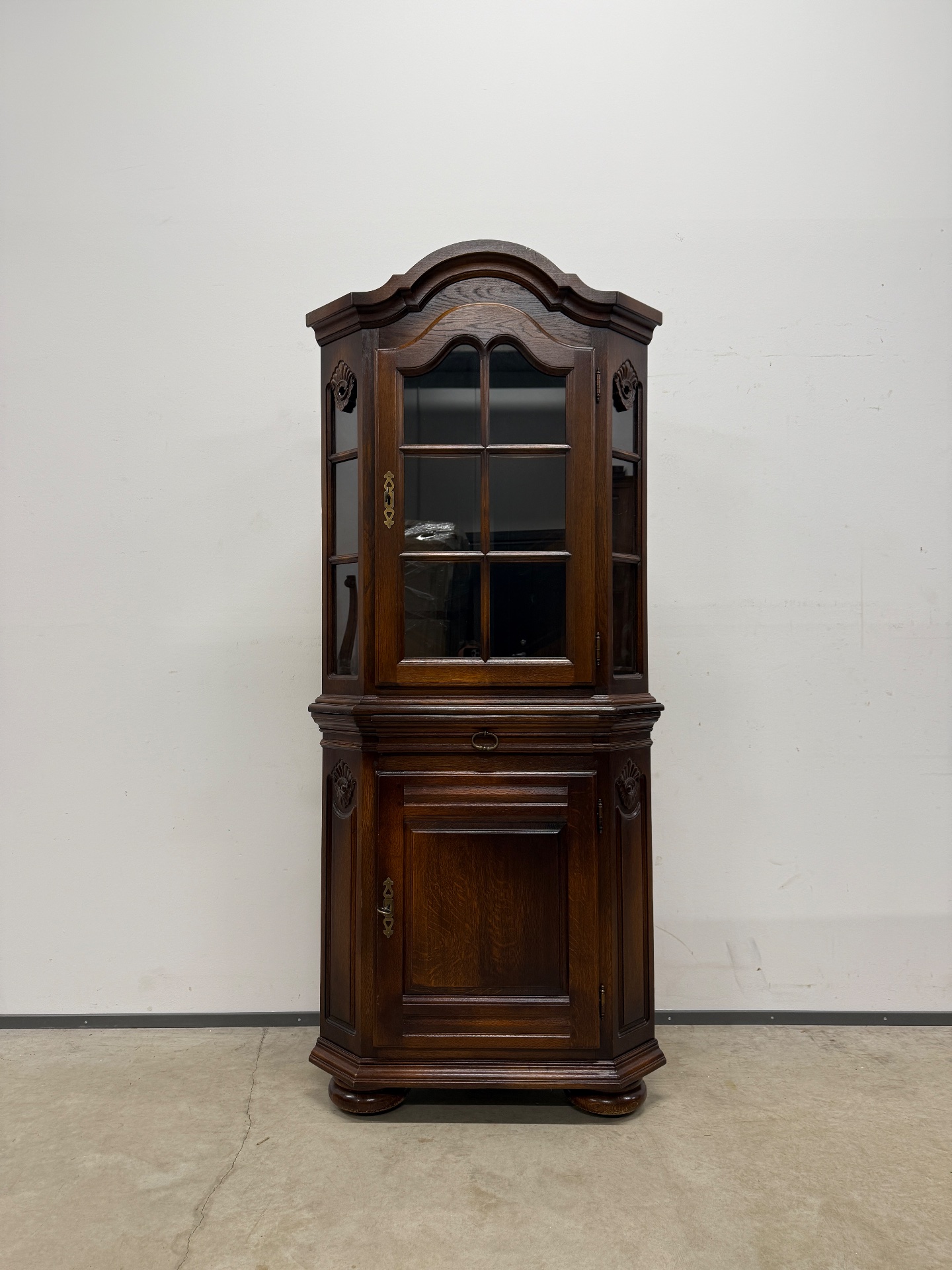 Suurepärases seisukorras mahukas tammest nurgavitriin. Lukud töökorras, võtmed olemas. Transport kahes osas.