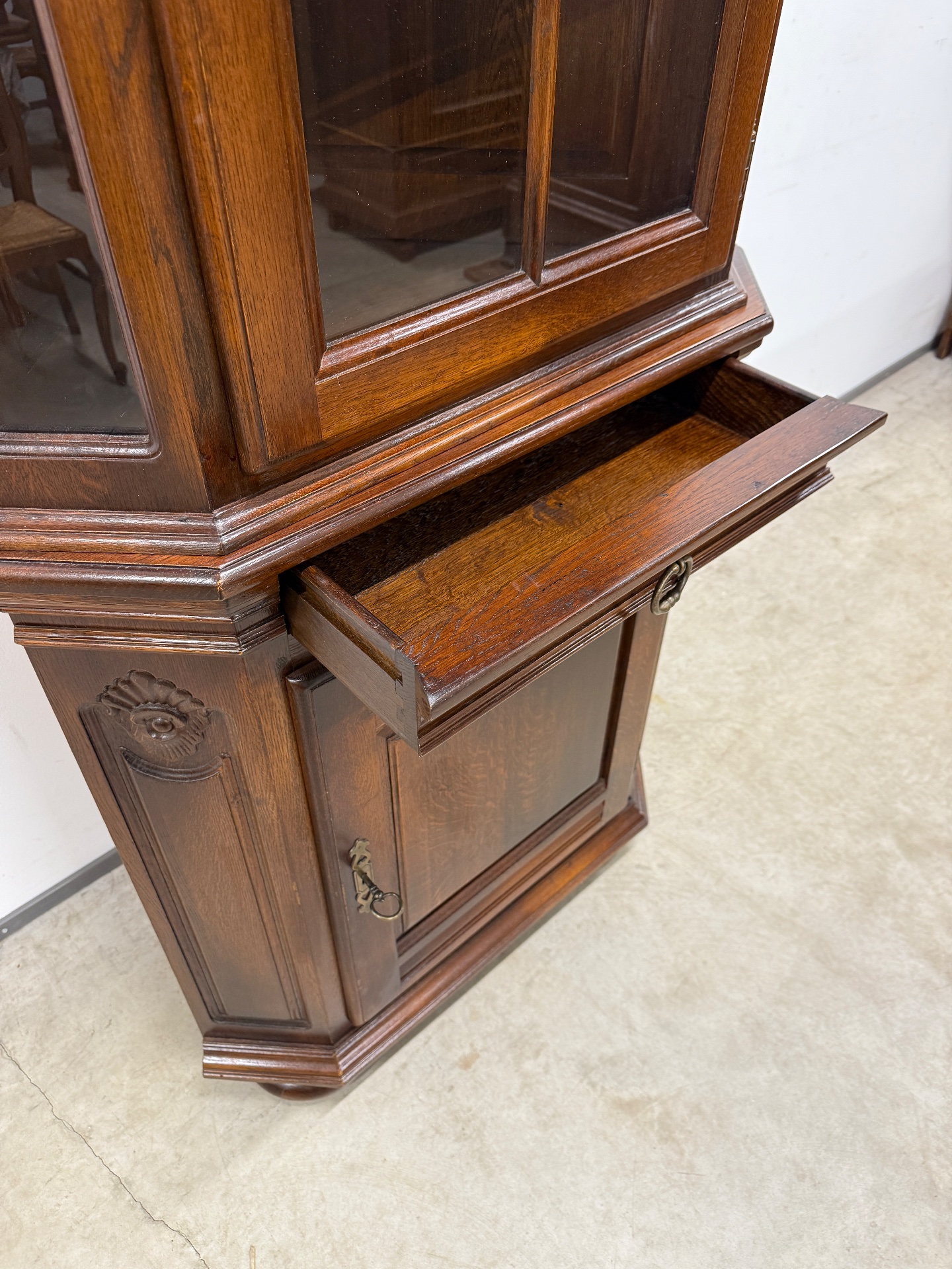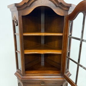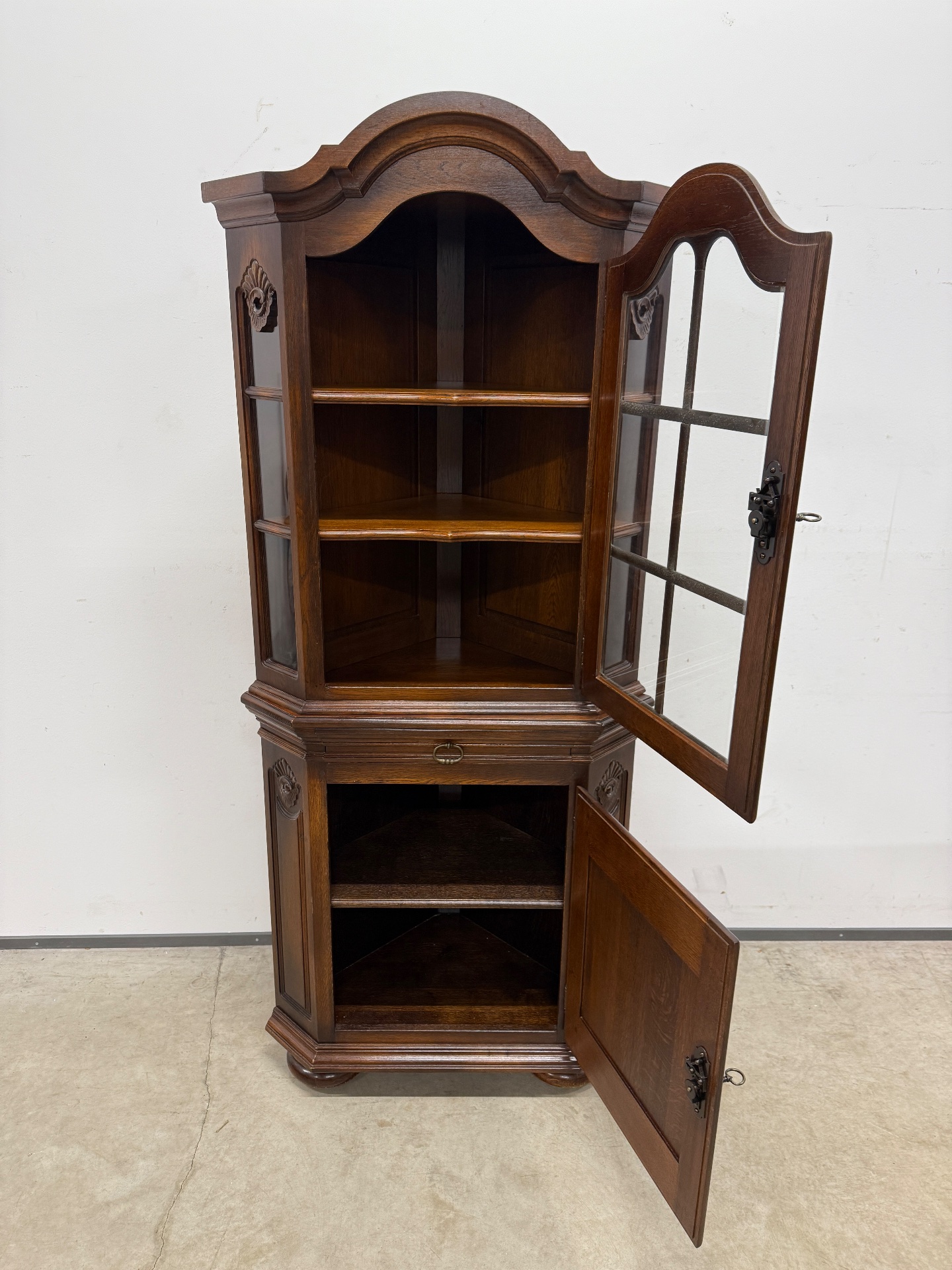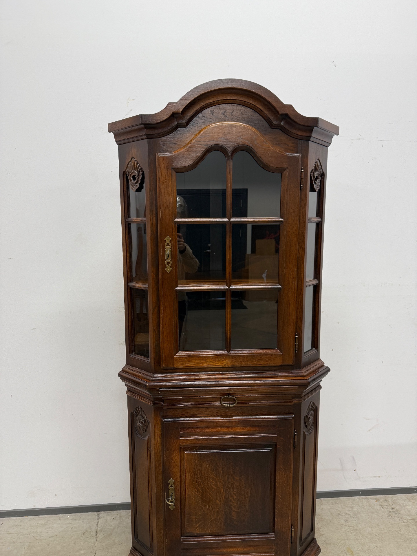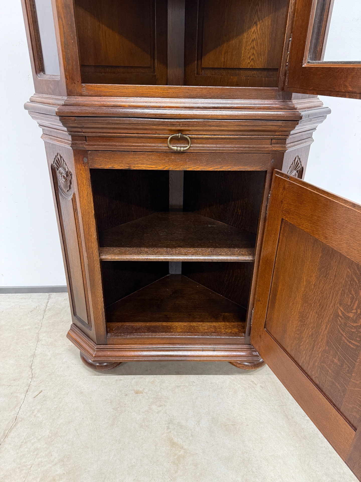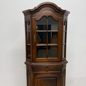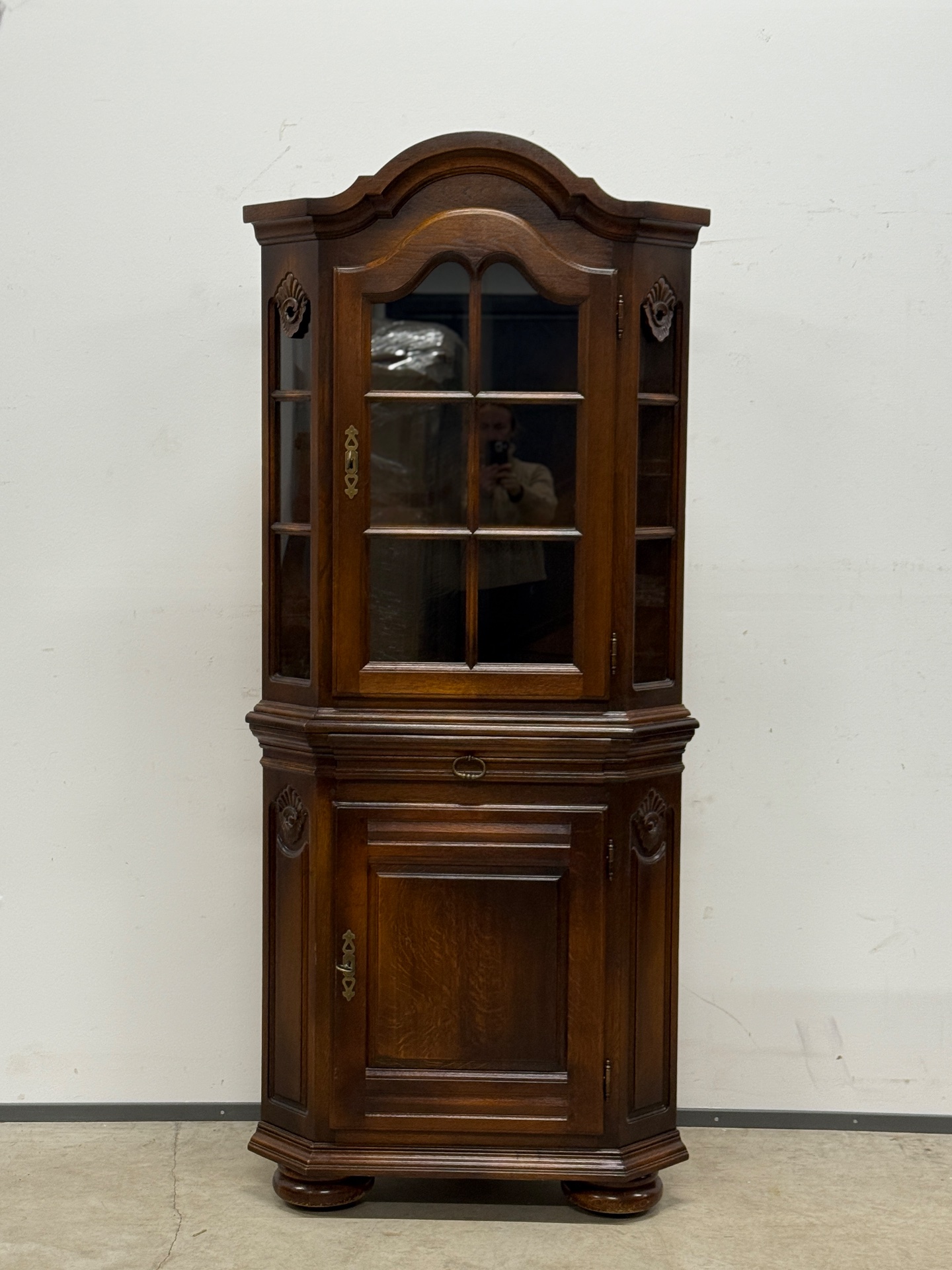 Suurepärases seisukorras mahukas tammest nurgavitriin. Lukud töökorras, võtmed olemas. Transport kahes osas.