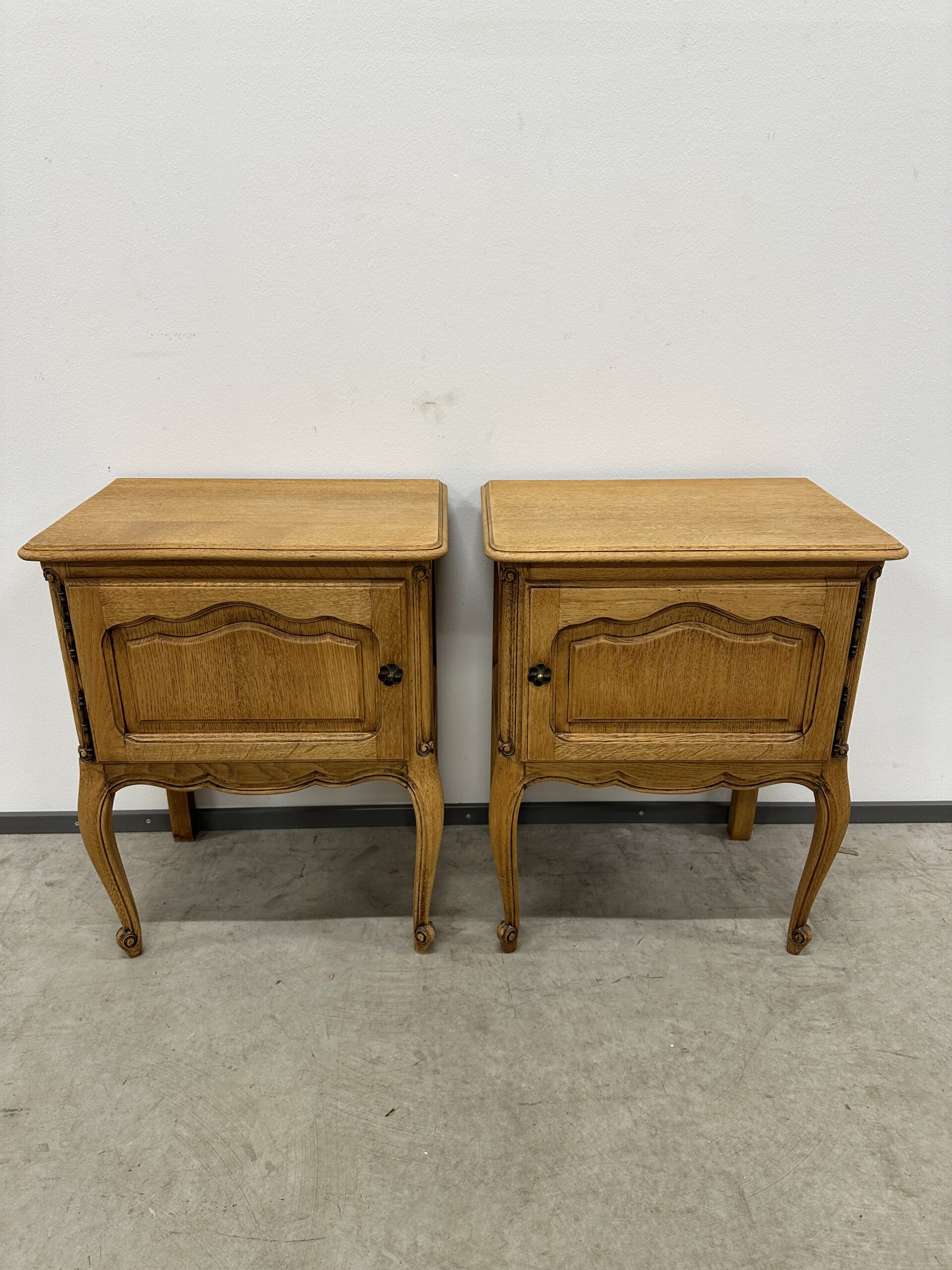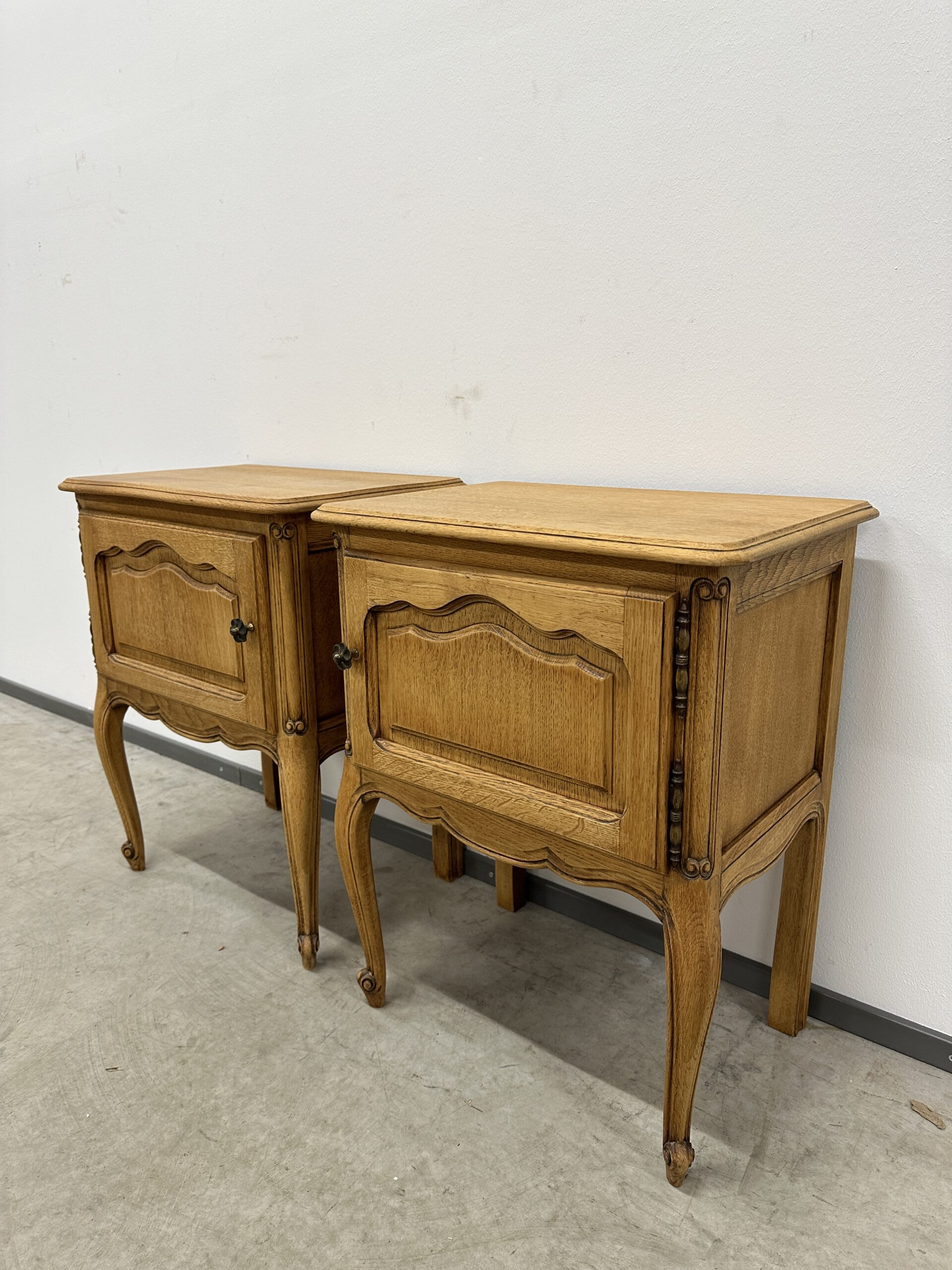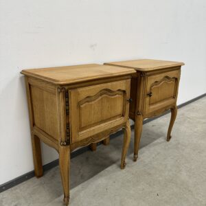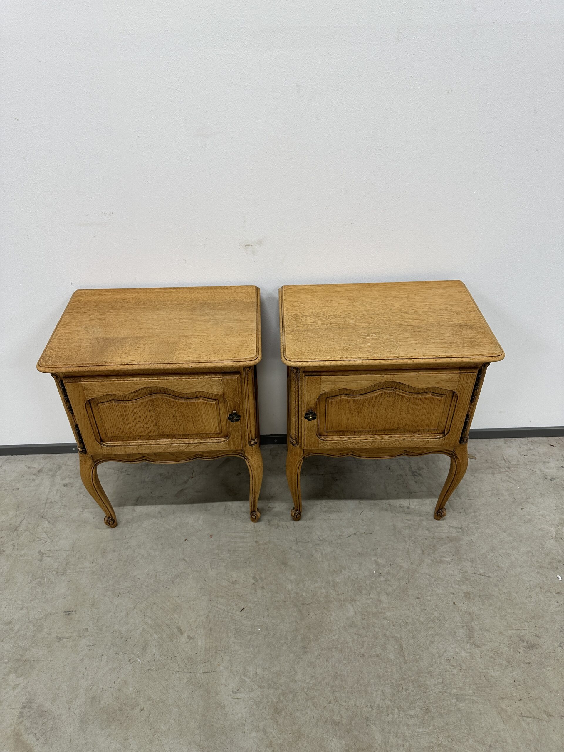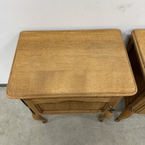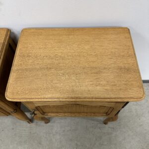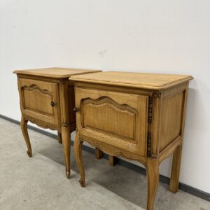 Heledast tammest öökappide paar. Ühe kapi pealmisel plaadil ümmargune väike rant, muus osas väga heas seisukorras. Müügil komplektina.