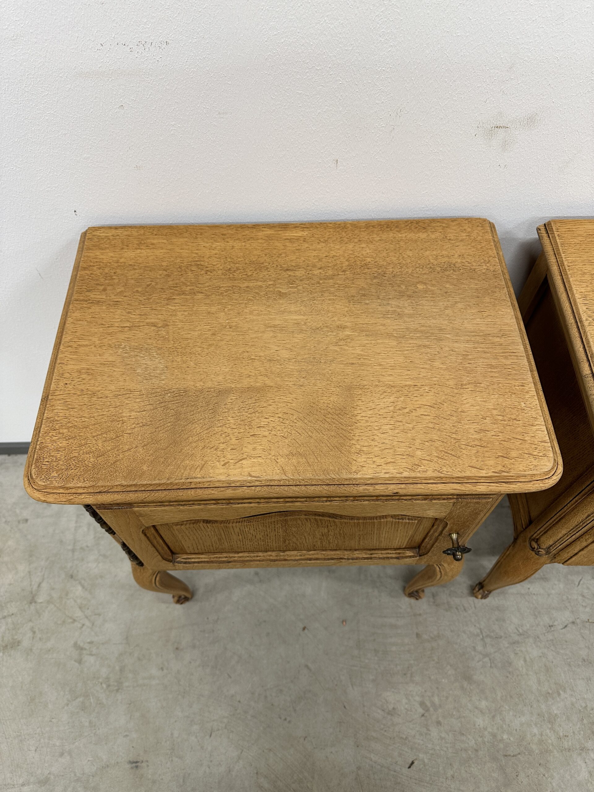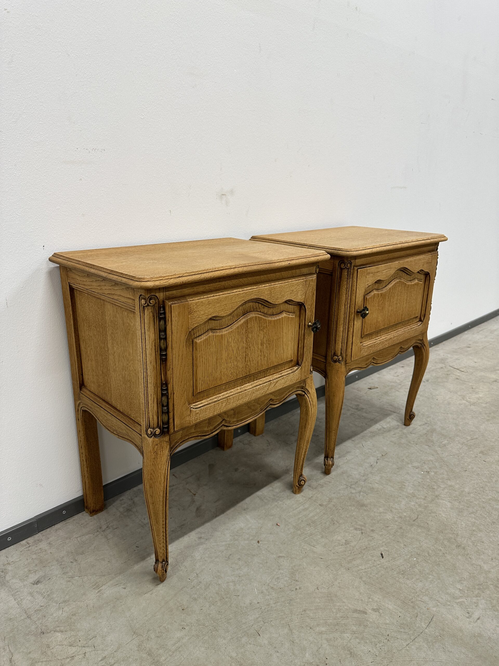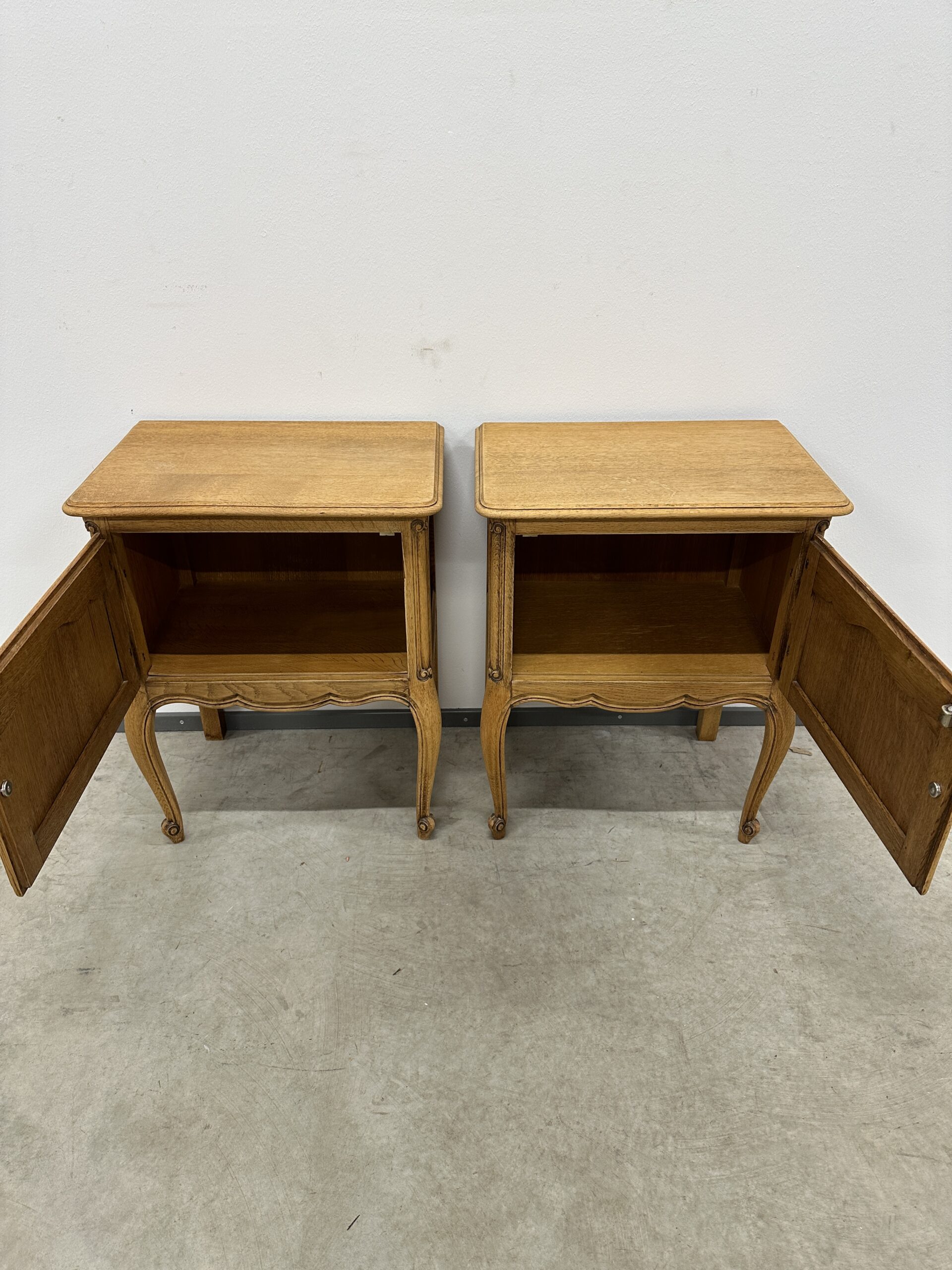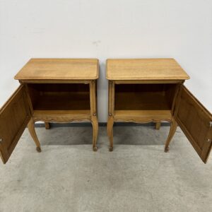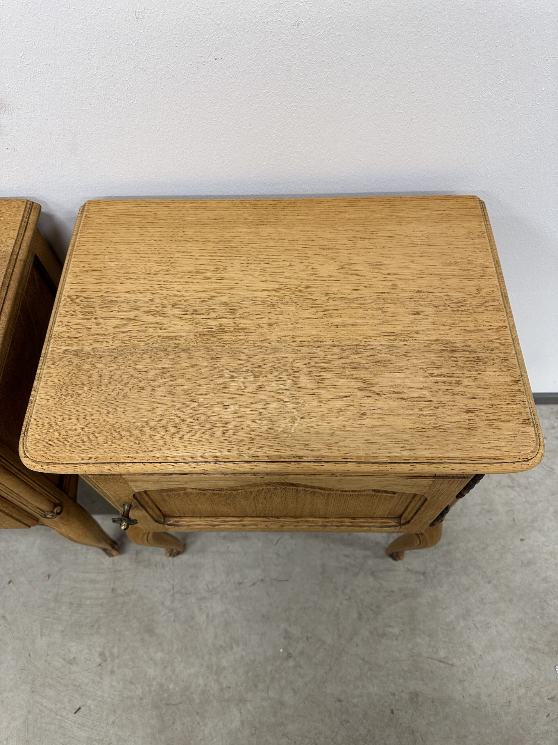 Heledast tammest öökappide paar. Ühe kapi pealmisel plaadil ümmargune väike rant, muus osas väga heas seisukorras. Müügil komplektina.