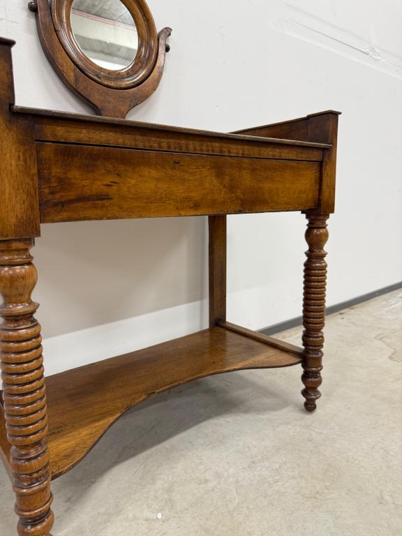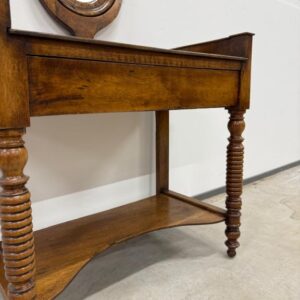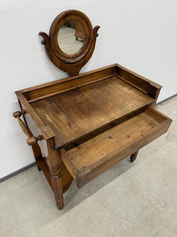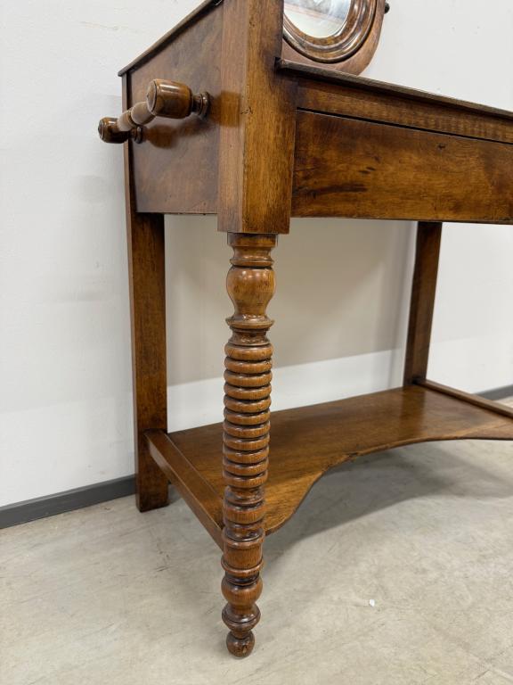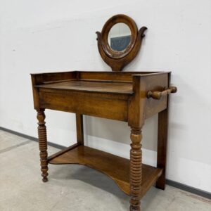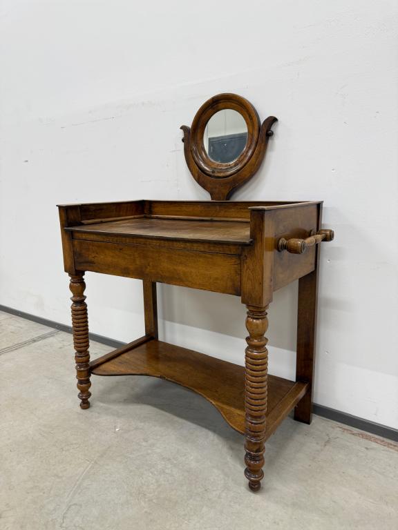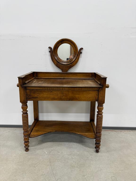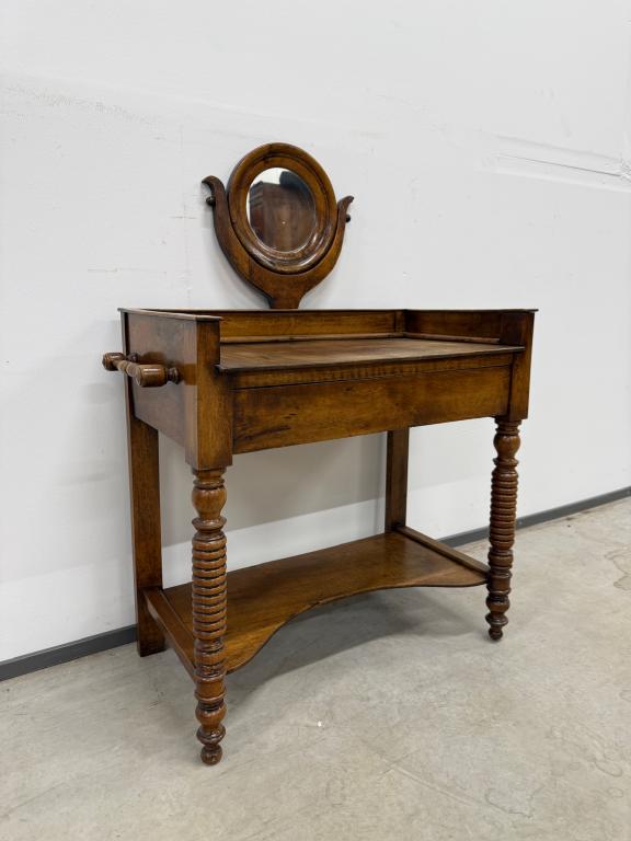 Sajandivanune pähklipuust pesulaud. Olemas sahtel, külgedel rätikuhoidjad. Tasapinna kõrgus maast 67 cm. Leidub kulumis- ja kasutusjälgi.