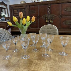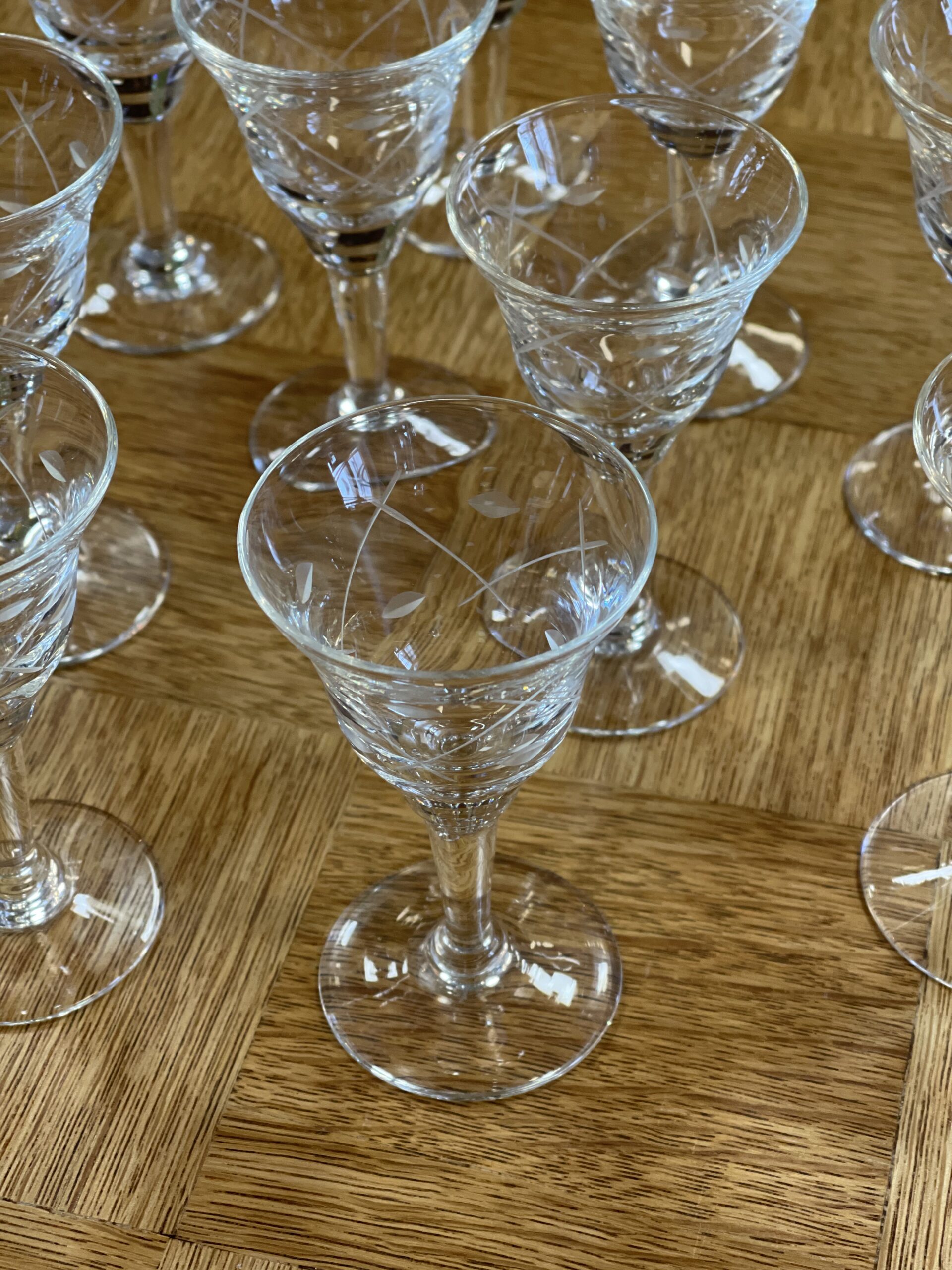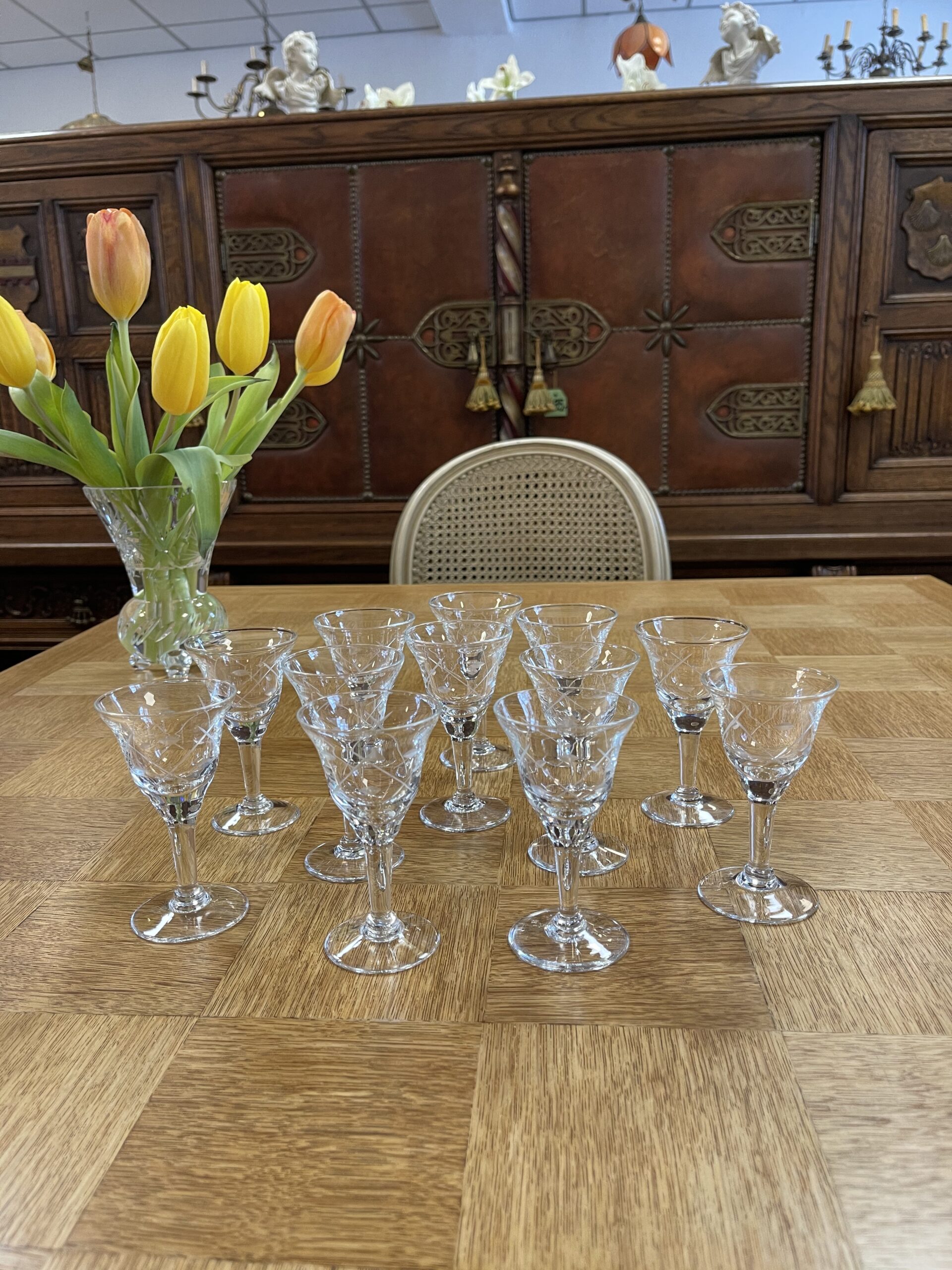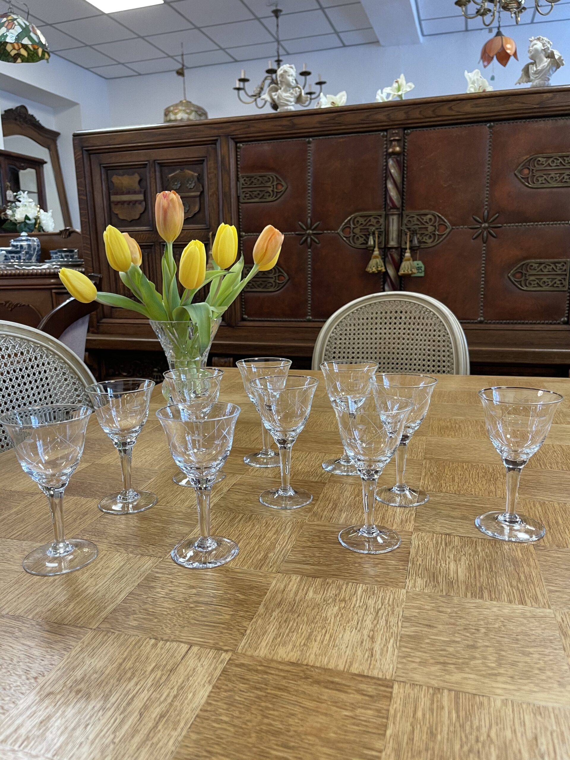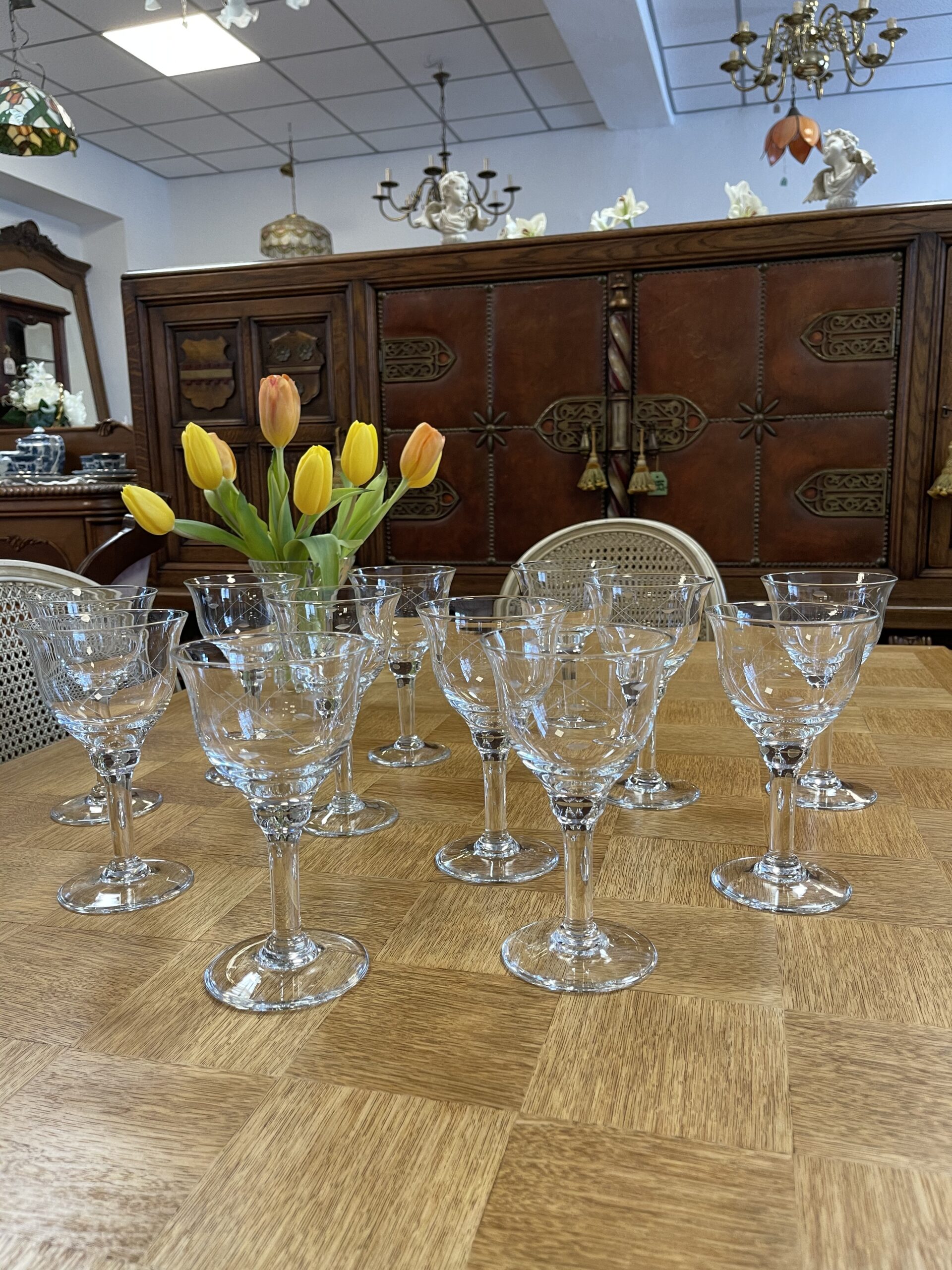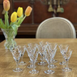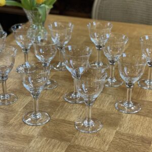 34-st esemest koosnev pokaalide komplekt. Komplekti kuulub: 12 veinipokaali, 10 portveini pokaali, 12 likööripitsi. Kõik komplekti osad suurepärases seisukorras. Kokku lüües kaunis kristalne kõla 😉