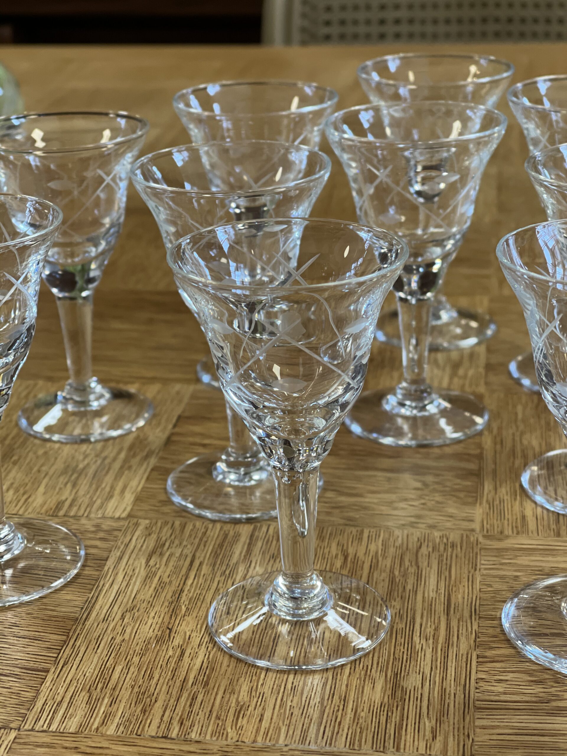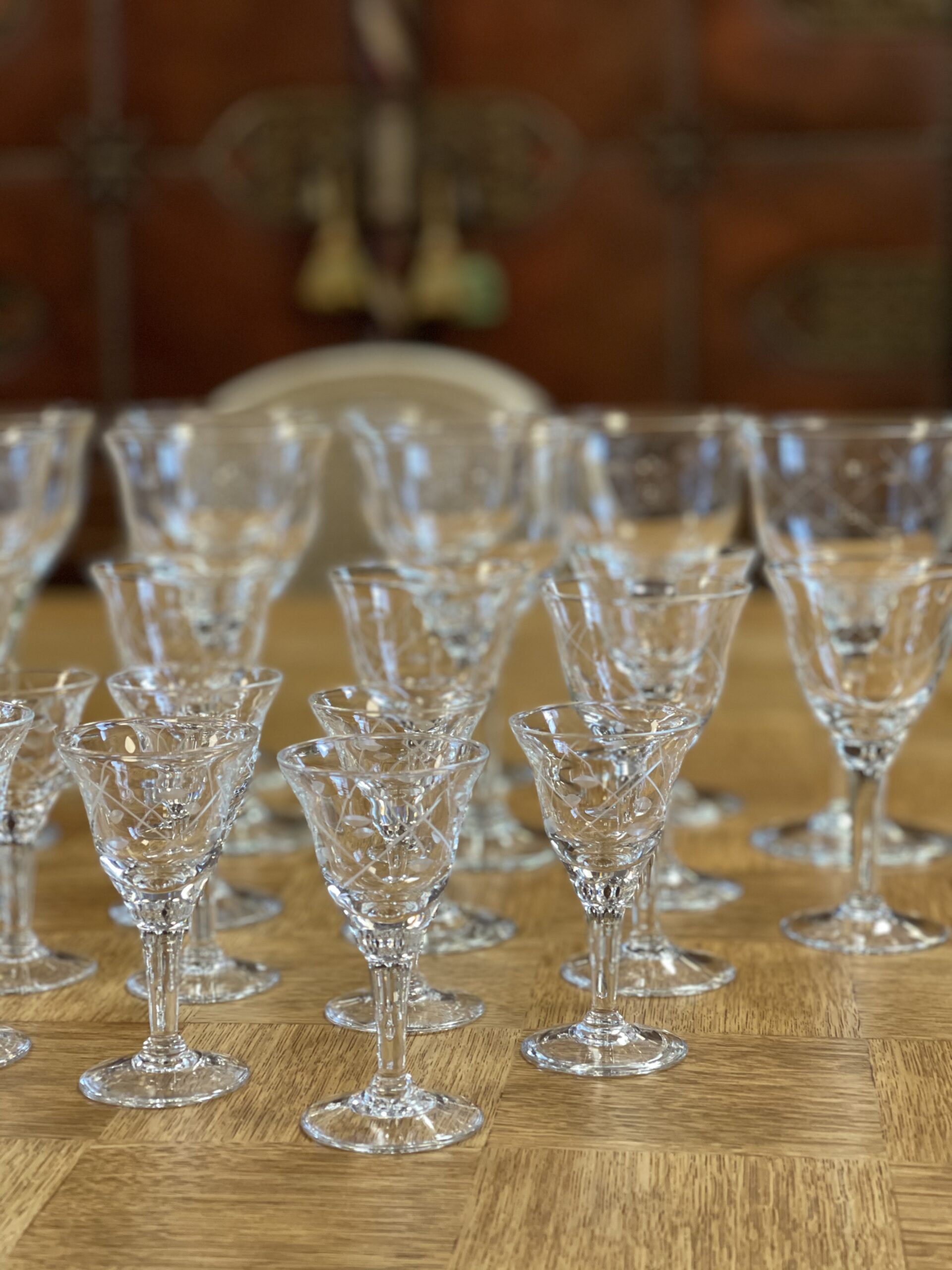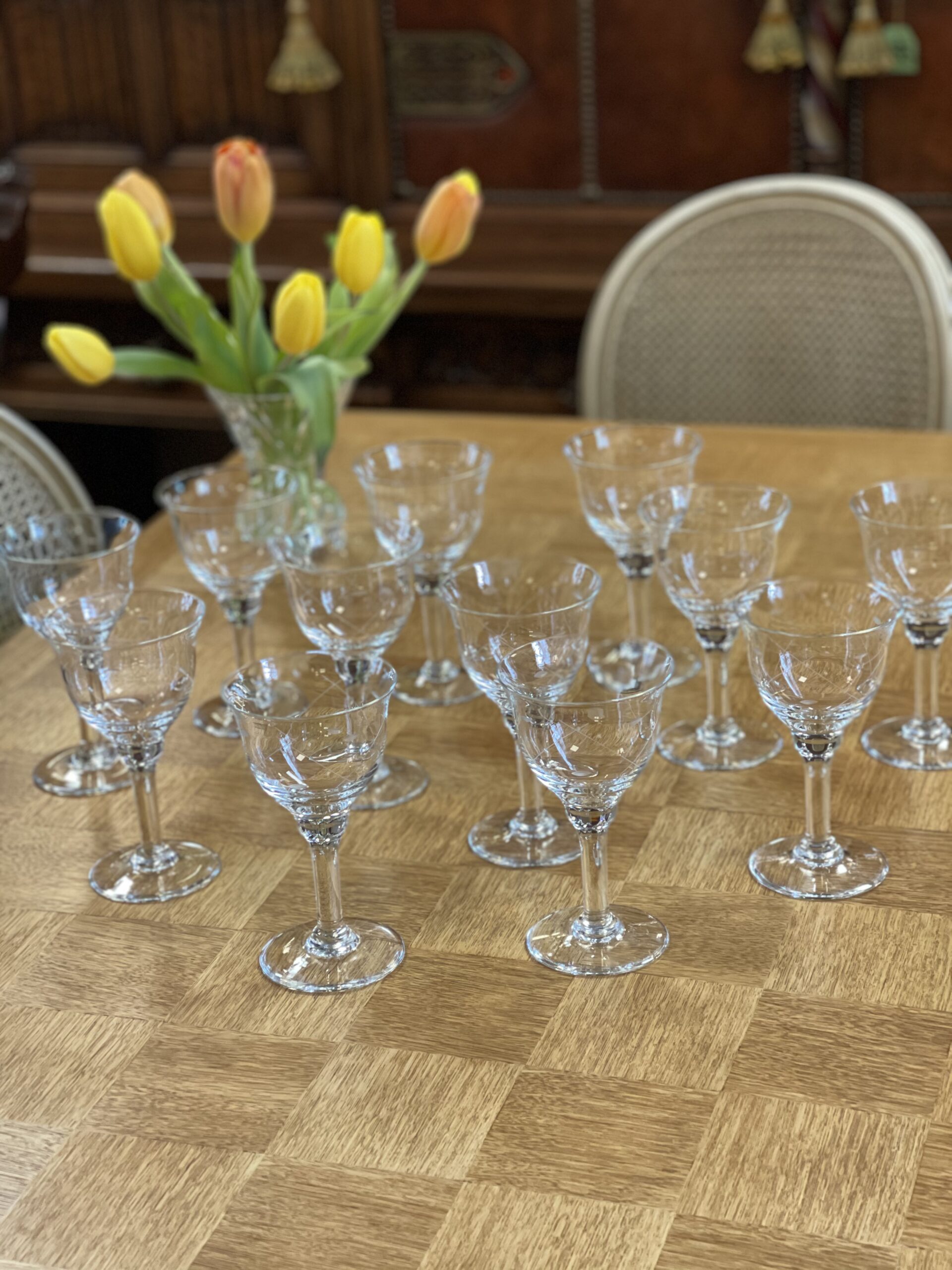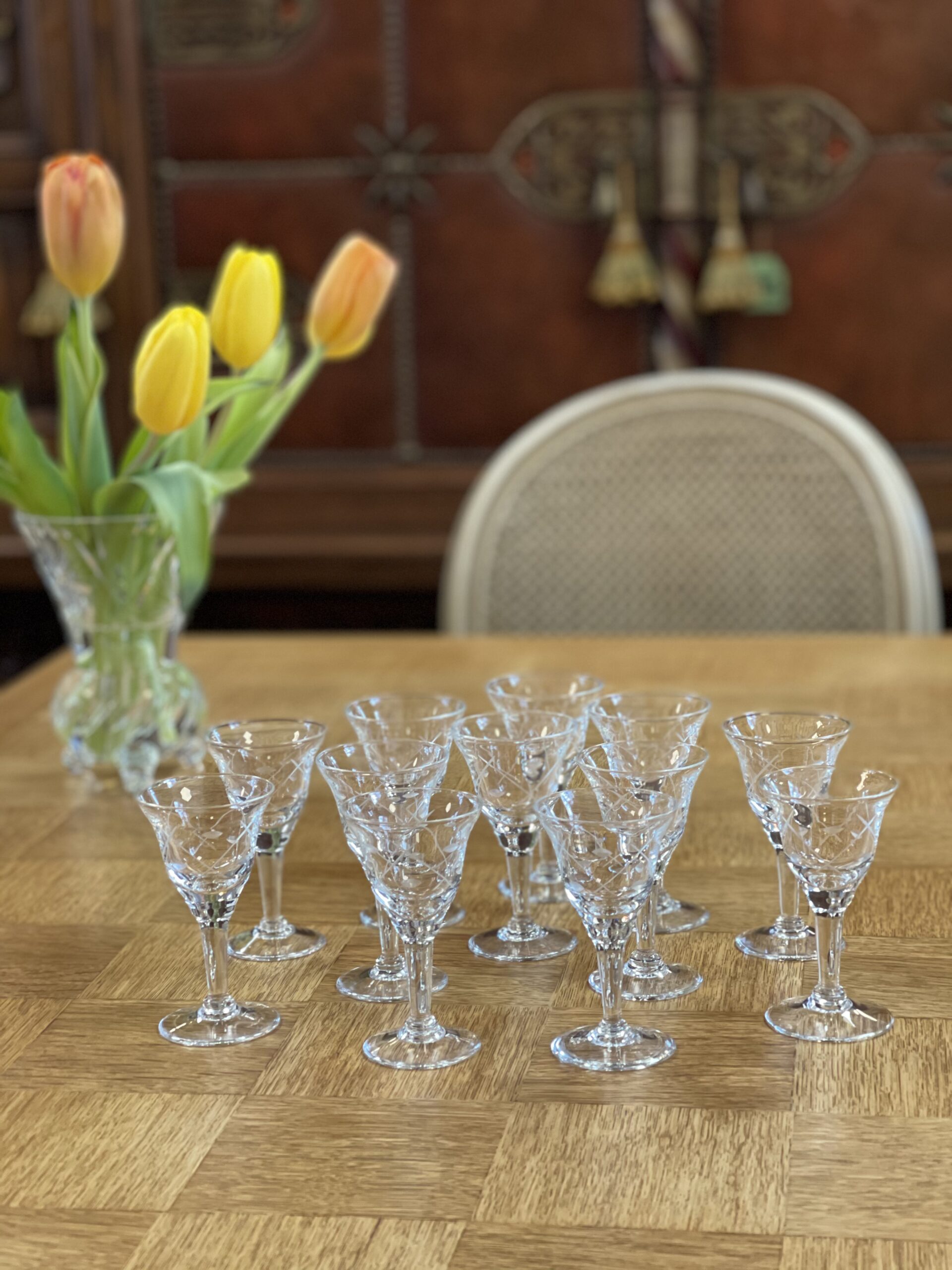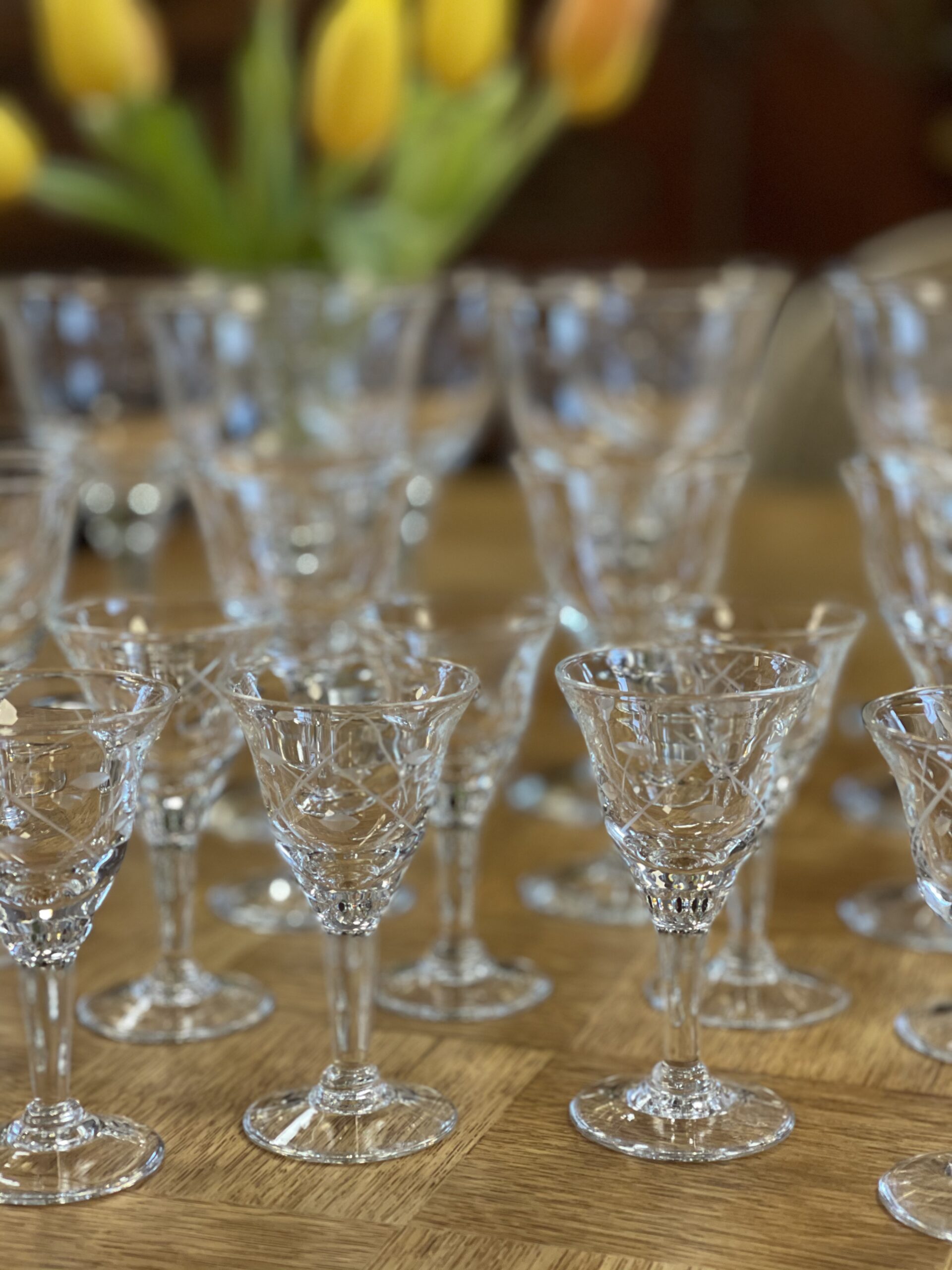 34-st esemest koosnev pokaalide komplekt. Komplekti kuulub: 12 veinipokaali, 10 portveini pokaali, 12 likööripitsi. Kõik komplekti osad suurepärases seisukorras. Kokku lüües kaunis kristalne kõla 😉