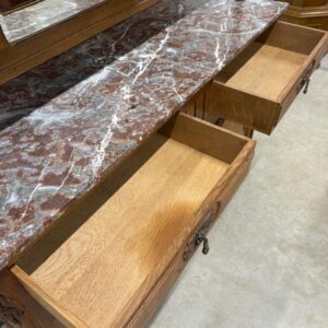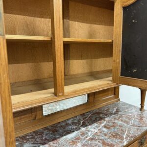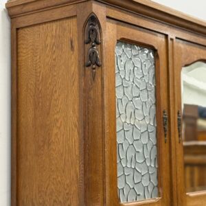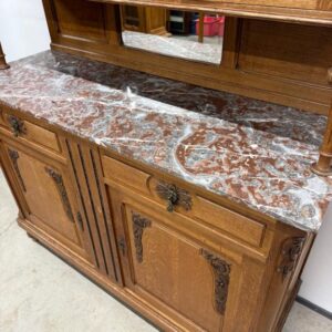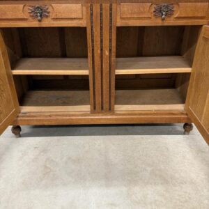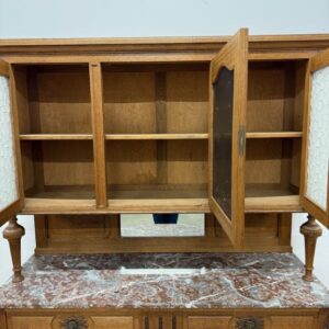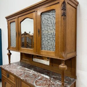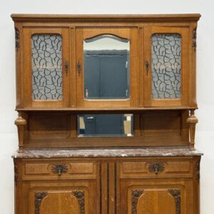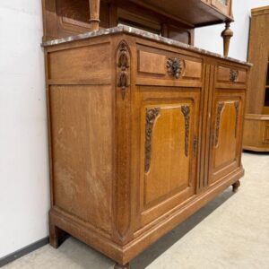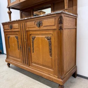 Sajandivanune tammest puhvetkapp. Kenad nikerdused ustel ja raamil. Kaunis ja mahukas. Nb! ühel esimesel tugipostil puidukillud puudu, ülemise kapi põhjavineer kaardu kuivanud, lukud ei ole töökorras. Leidub värvidefekte, eriti alumise kapi vasakul küljel. Transport kolmes osas.