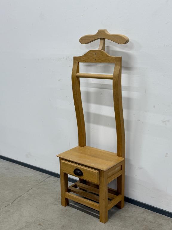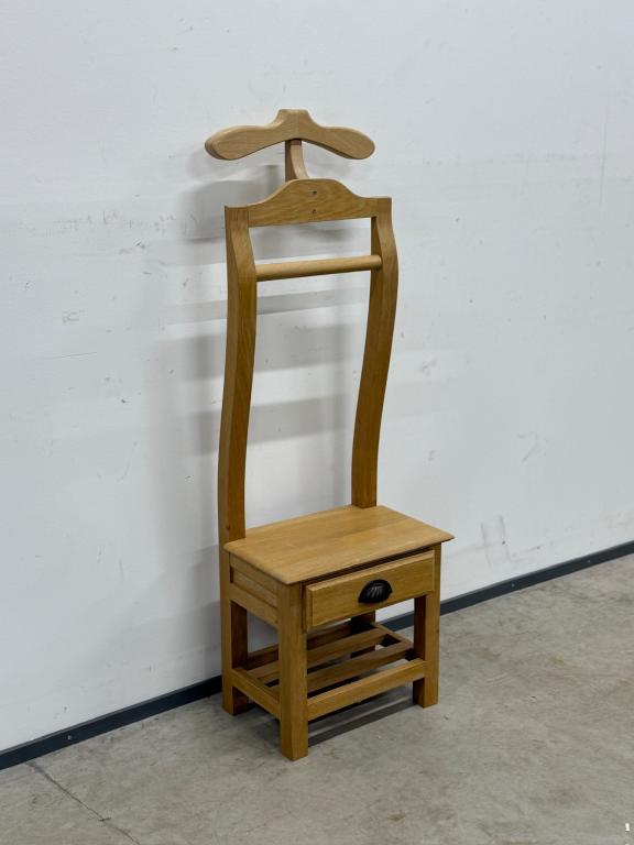 Heledast tammest funktsionaalse disainiga riidealus. Soliidne ja vajalik mööbliese. Väga heas seisukorras.