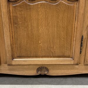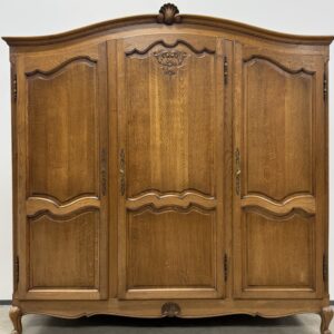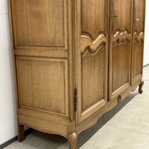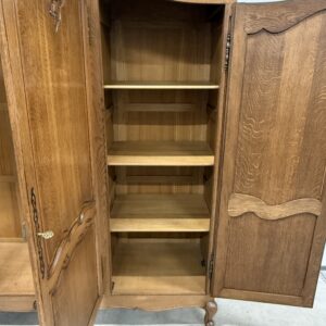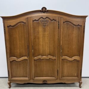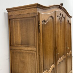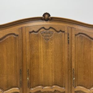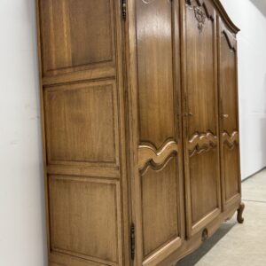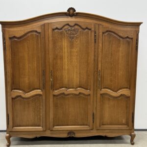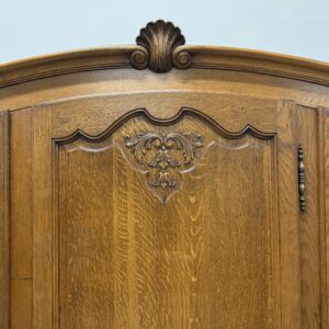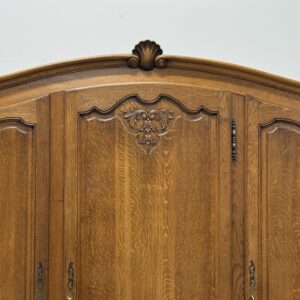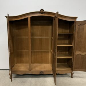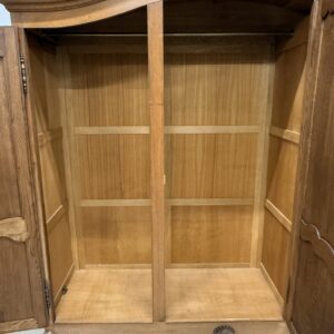 Tammest raamiga hea suurusega riidekapp. Parempoolse ukse taga tammest riiulid, teiste uste taga riputuspuu. Kaunid nikerdused ustel ja raamil. Lukud töökorras, võtmed olemas. Vasakul küljel alumises sektoris pisut pleekinud, kuid üldmuljet see oluliselt ei riku. Transport osadena.