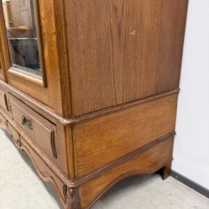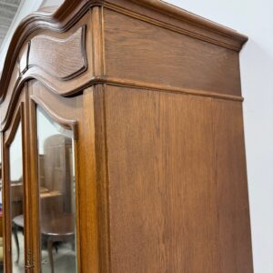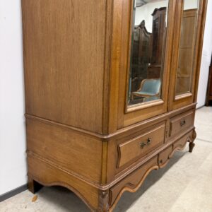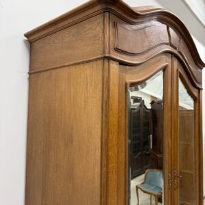 Kahe suure peegeluksega pilkupüüdev riidekapp. Sees kogu ulatuses riputuspuu, all kaks mahukat sahtlit. Kapp on tammest, peeglid kenade faasitud servadega. Lukk töökorras, võti olemas. Leidub väiksemaid kulumis- ja kasutusjälgi, mõned pisikesed kuivamispraod, kuid üldmulje väga hea. NB! Ukse liistu servad defektsed – vt pilt. Transport osadena.