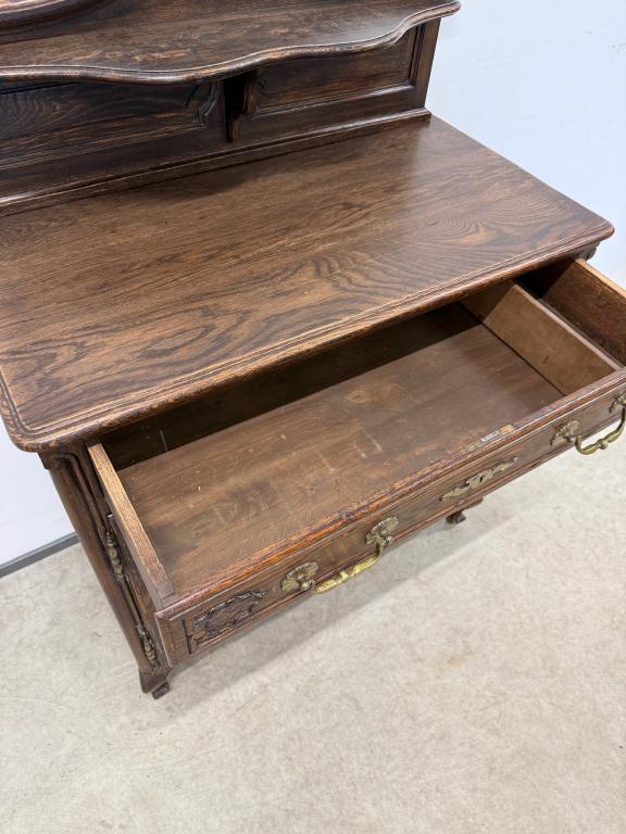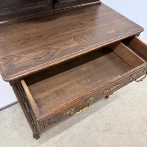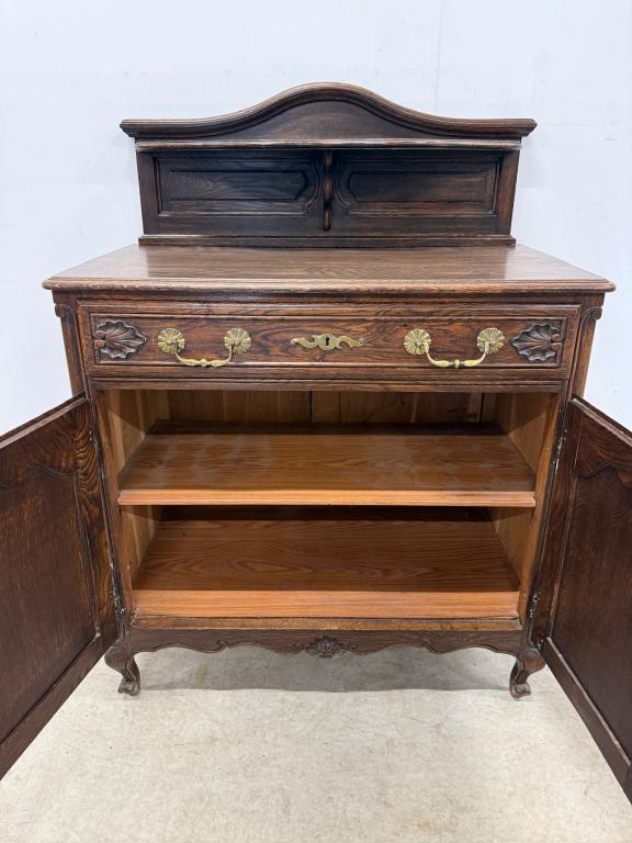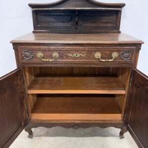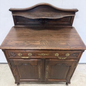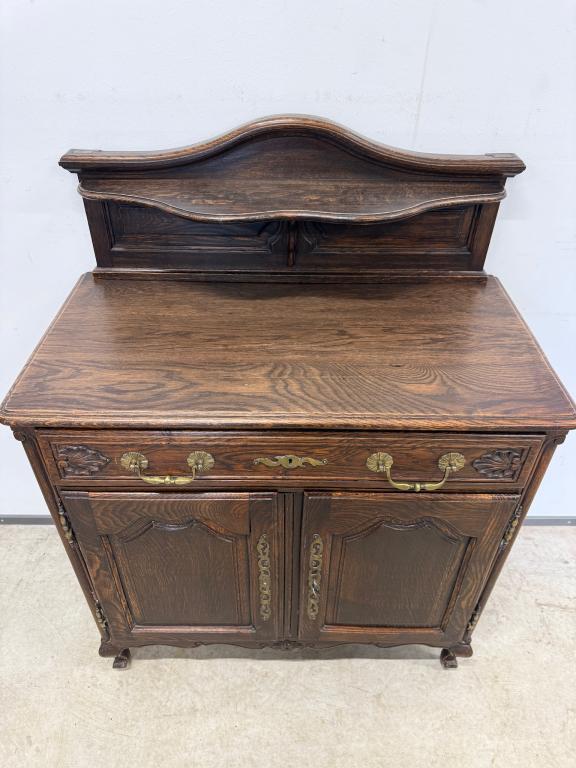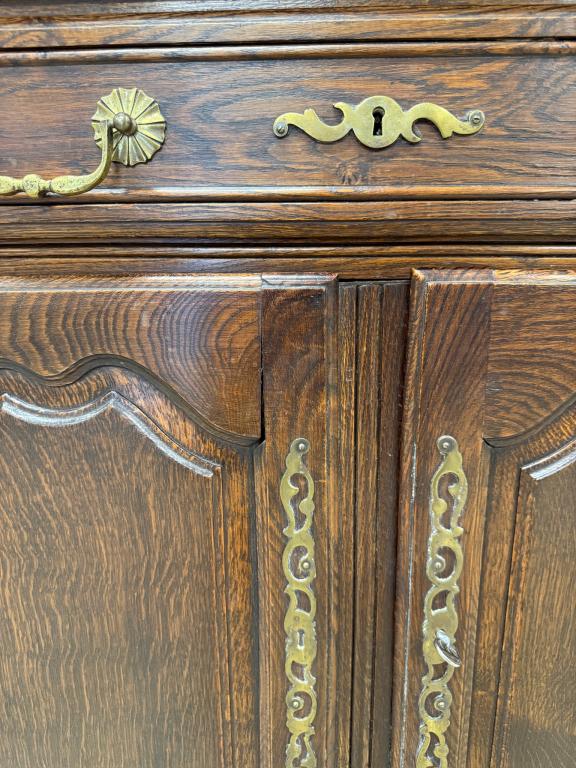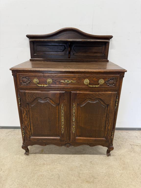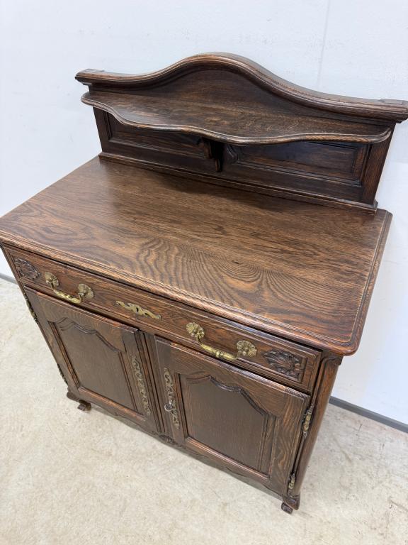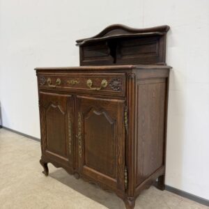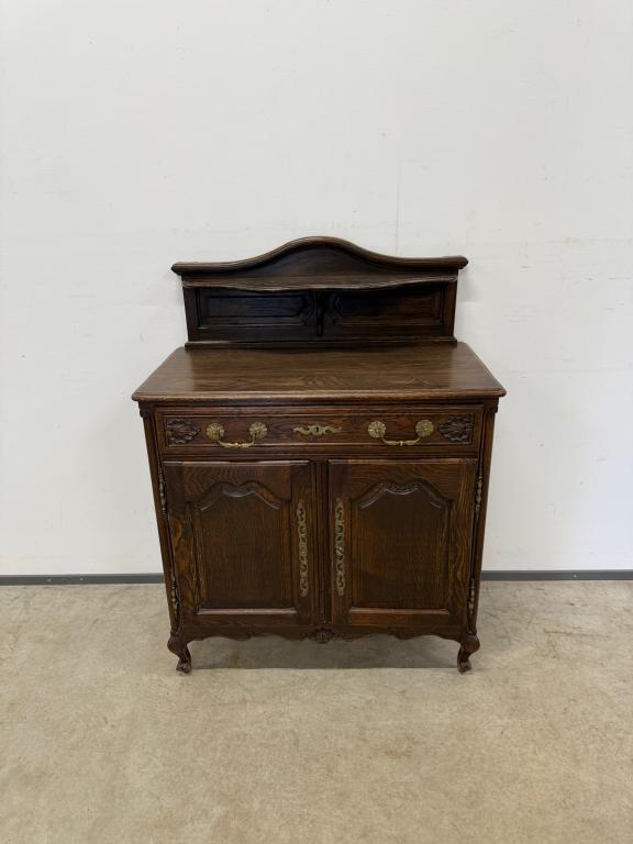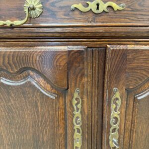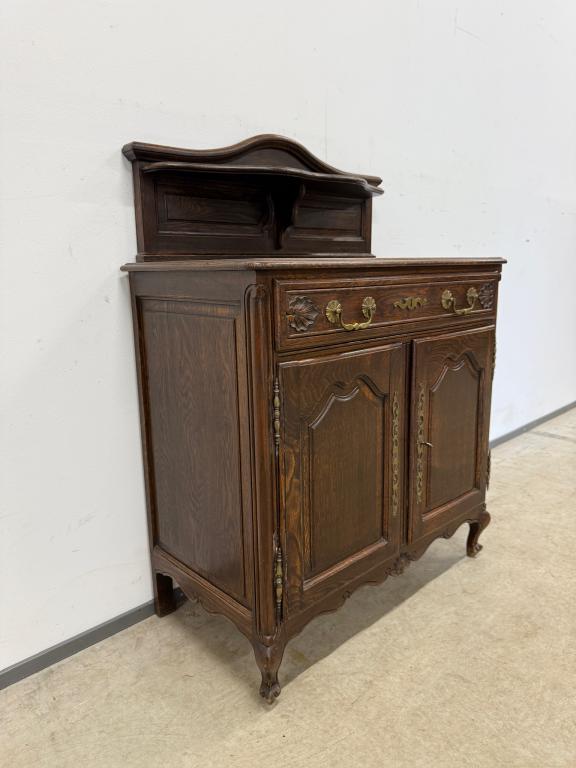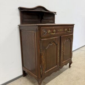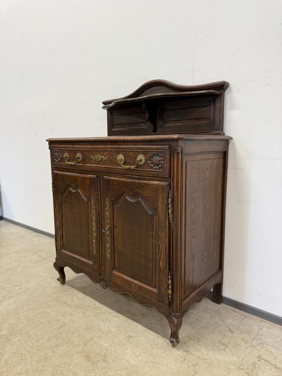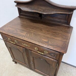 Tammest raamiga hea surusega kapp. Kapi kõrgus 88 cm, riiul 30 cm. NB! Kapi uksel kuivamispragu – vt pilt. Leidub kulumis- ja kasutusjälgi. Transport kahes osas.